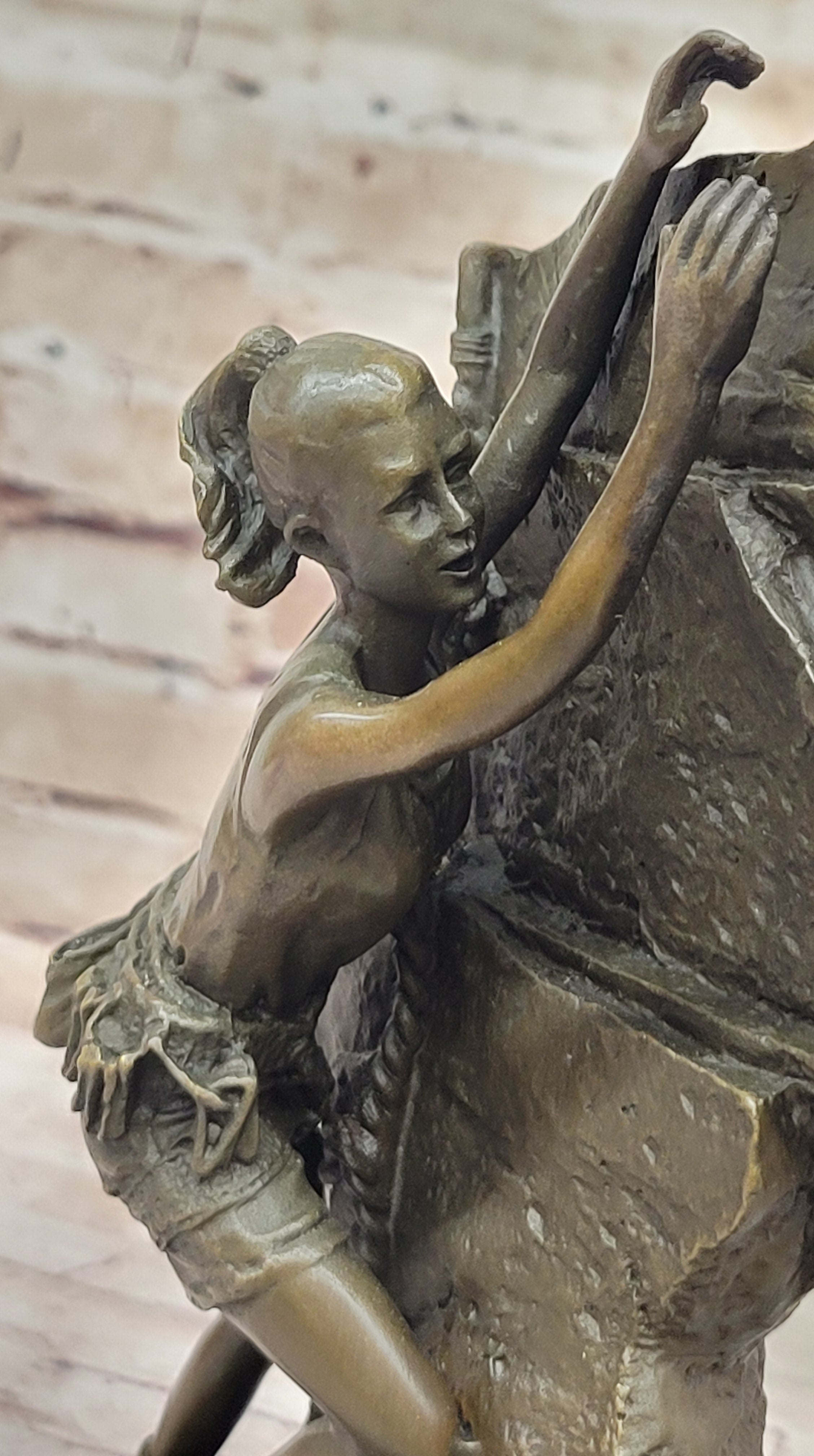 With its elegant design and expert craftsmanship, this genuine bronze sculpture is sure to impress art enthusiasts and collectors alike. Whether displayed in a home, office, or gallery, it serves as a captivating symbol of resilience, passion, and the thrill of conquering challenges.Bronze Dimensions with Marble Base: Height 10.5" X Width 6"