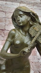 Mounted on a solid black marble base, this artwork is both elegant and enduring. Signed by Jean Patoue, it stands as a testament to skilled craftsmanship and artistic sensitivity, making it an ideal piece for collectors, musicians, or anyone who appreciates classical art with emotional depth.Bronze Dimensions with Marble Base: Height 14" X Width 8"