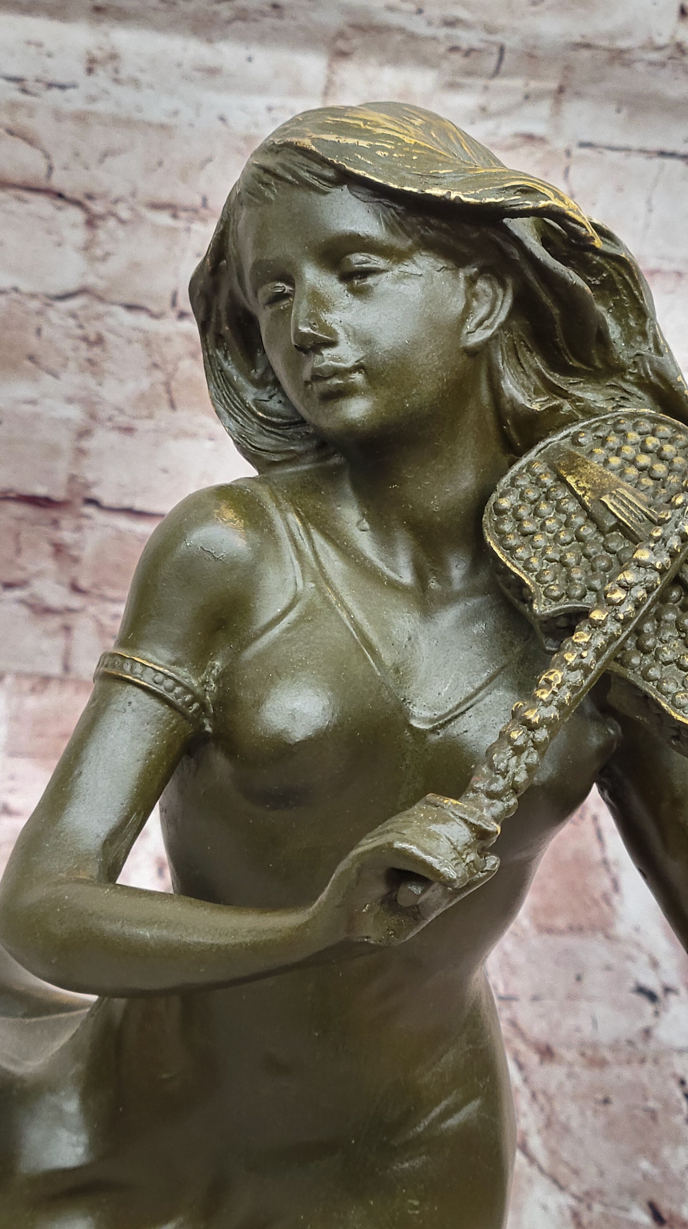 Crafted using the traditional lost wax method, this sculpture features a rich brown patina that highlights the fine textures in the girl’s flowing dress, her soft facial features, and the elegant curves of the violin. The gentle motion implied in her stance gives life to the composition, creating a visual harmony between subject and medium.