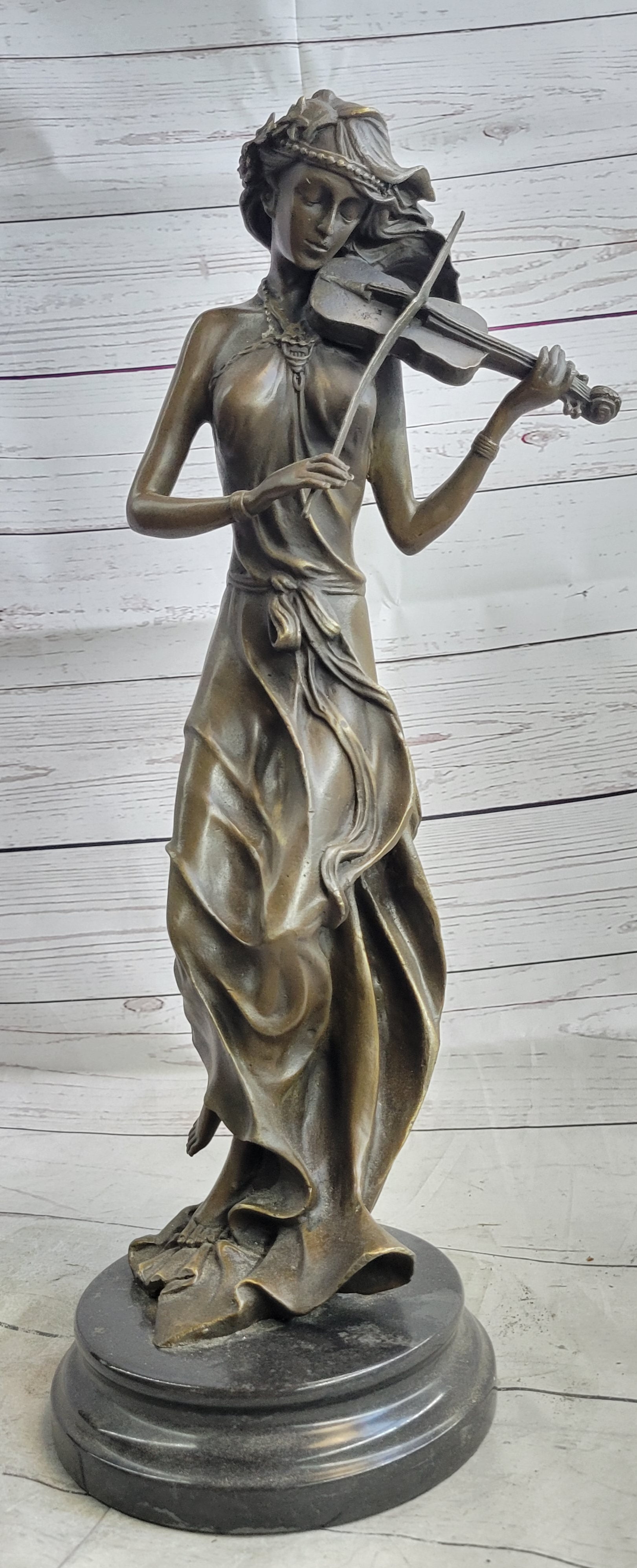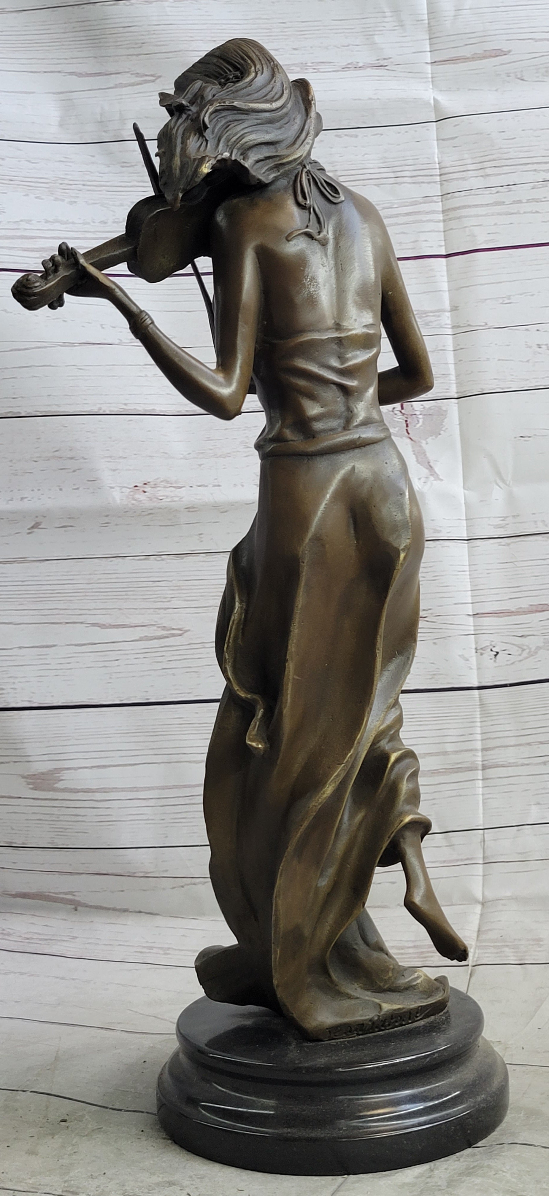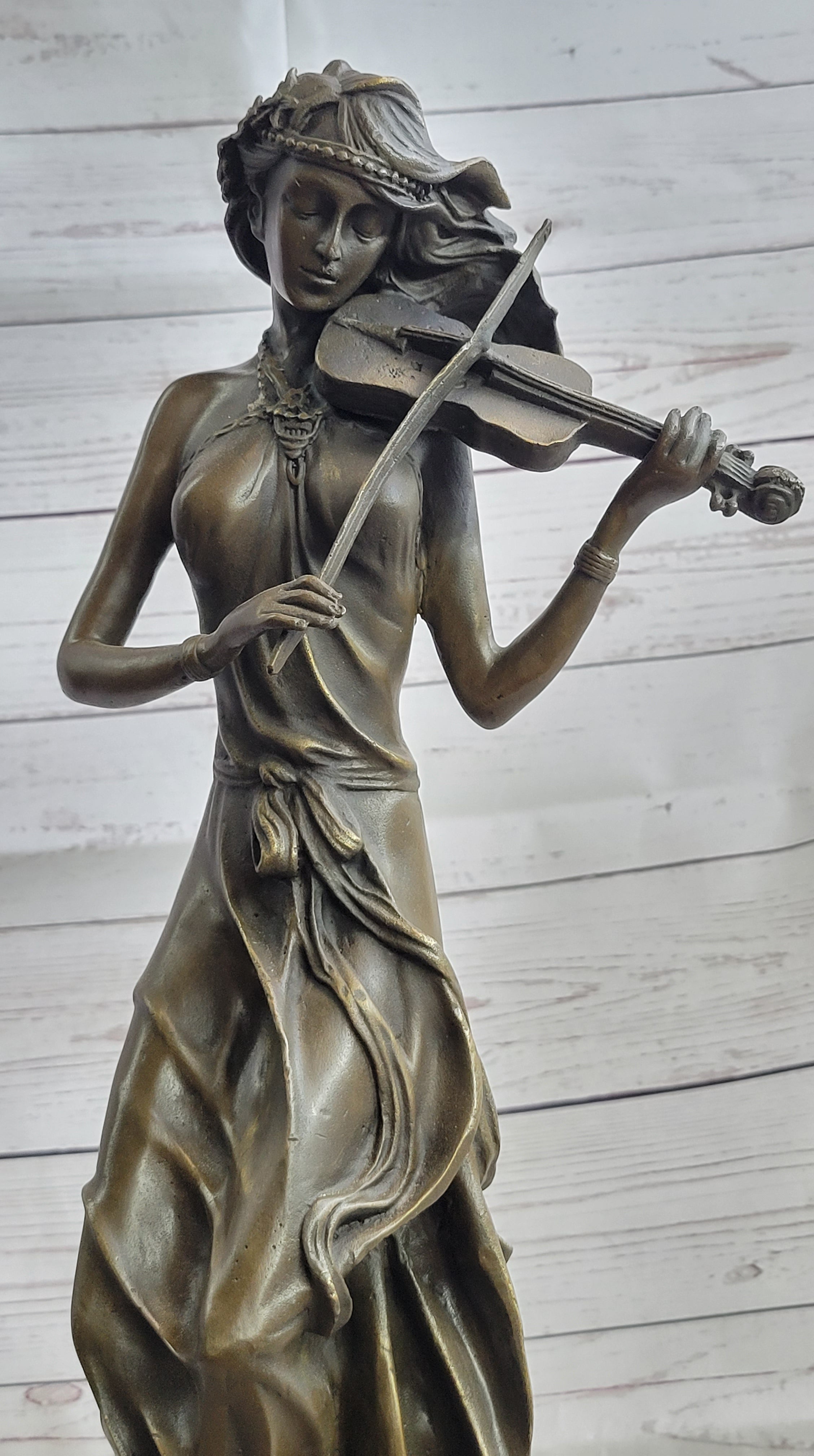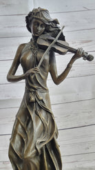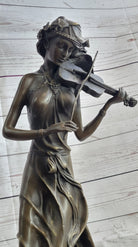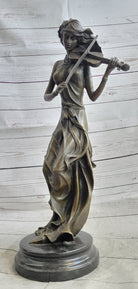 Female Violinist Violin Player Musician Bronze Sculpture Statue Figure on Marble Base