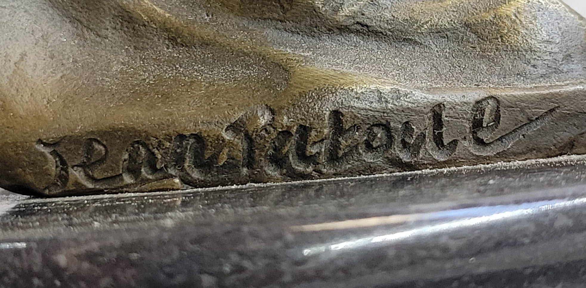 This exceptional piece bears the signature of the esteemed artist Jean Patoue, a testament to its authenticity and artistic merit. Patoue's name is synonymous with exquisite craftsmanship and attention to detail, further elevating the value and desirability of this sculpture.