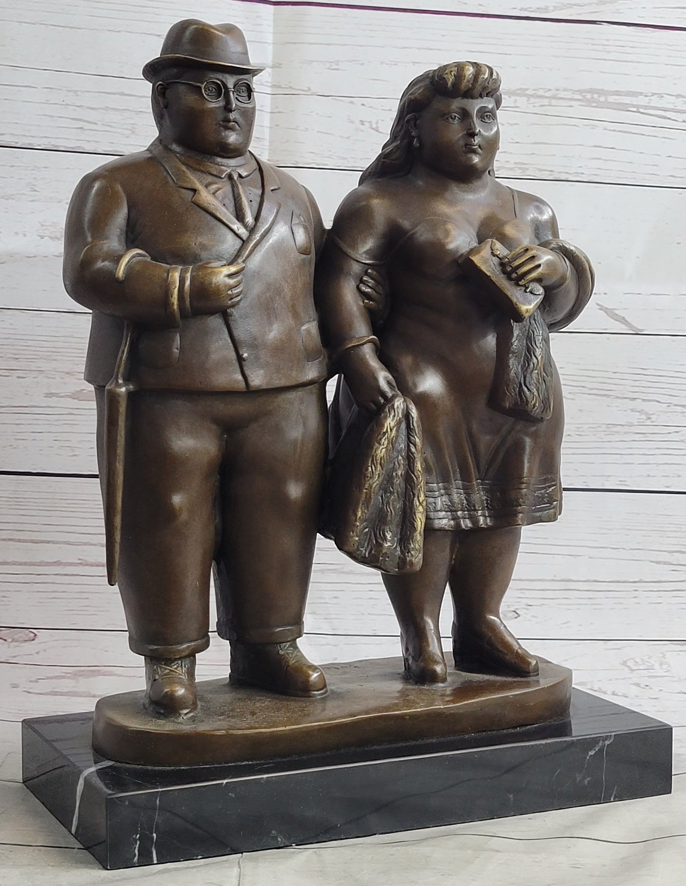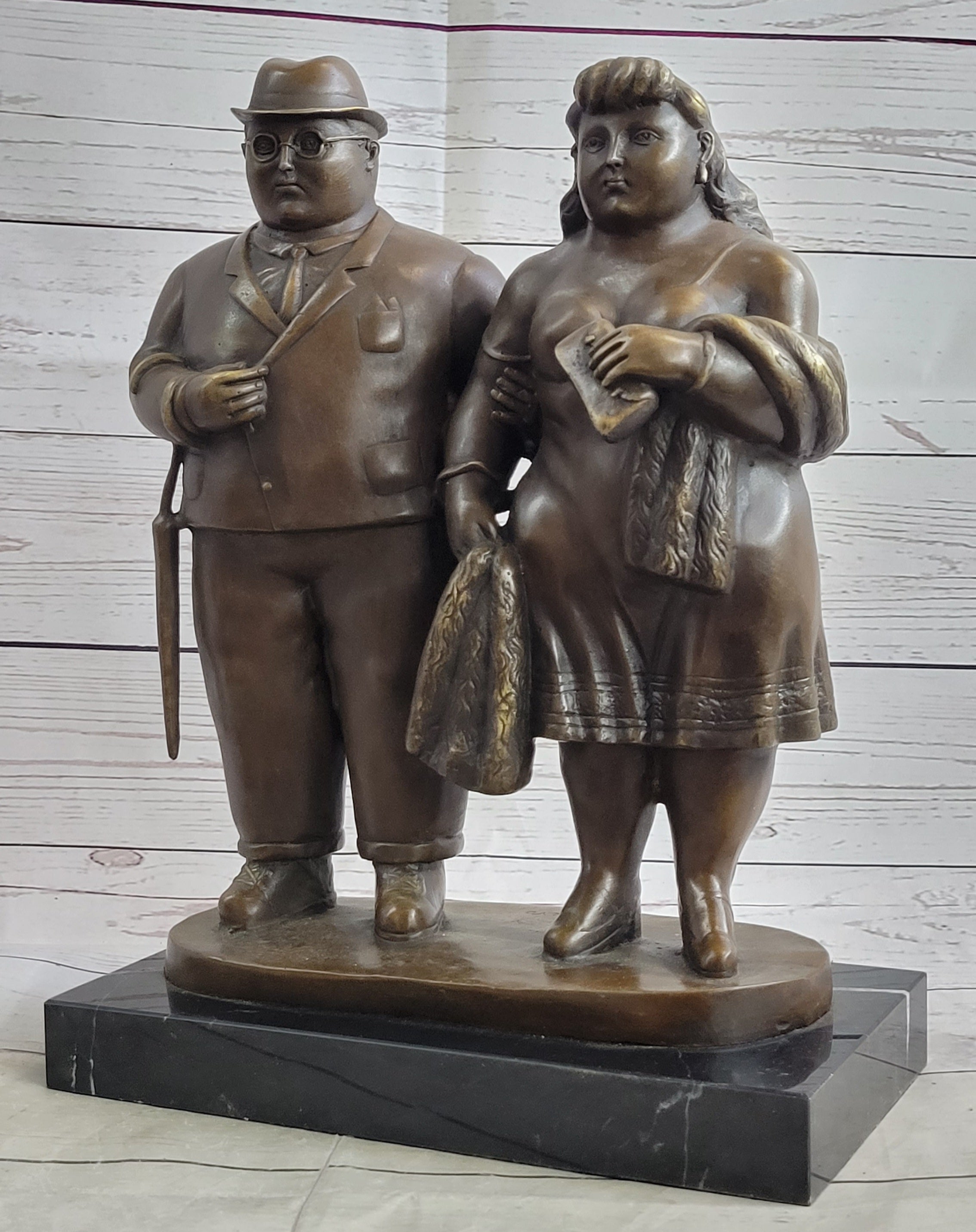 Fernando Botero Married Couple Man & Woman Bronze Metal Statue Sculpture Decor