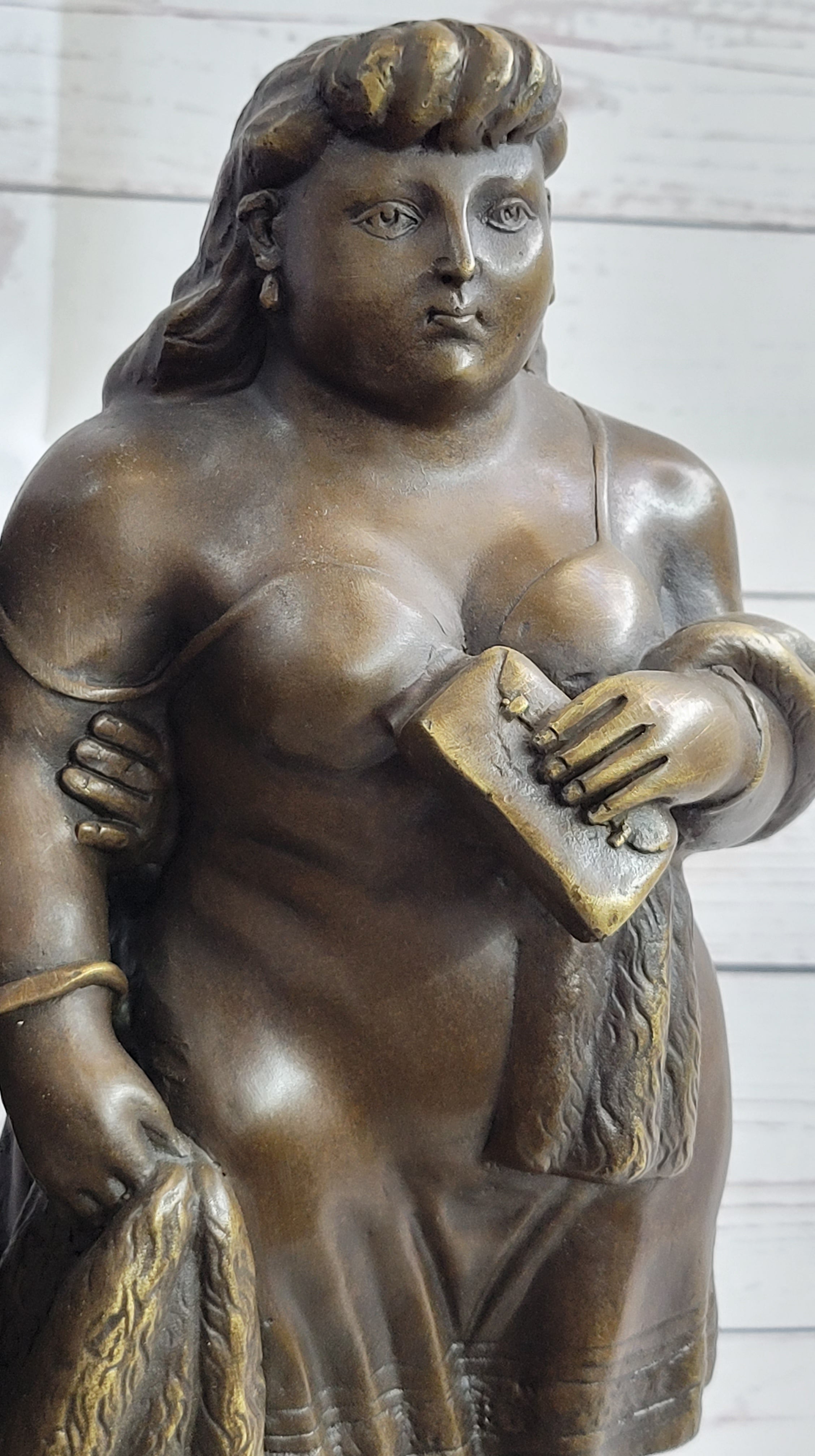 Crafted using the time-honored lost wax casting method, this sculpture stands as a testament to the artist's mastery and commitment to excellence. The brown patina finish adds depth and character to the piece, enhancing its overall visual appeal. Resting upon a black marble base, the sculpture's presentation is both elegant and sophisticated. The signature of the renowned artist Botero further enhances its quality and artistic merit. Experience the allure of this bronze masterpiece, an embodiment of Fernando Botero's artistic legacy and a celebration of love and style.Bronze Dimensions with Marble Base: Height 14" X Width 11"