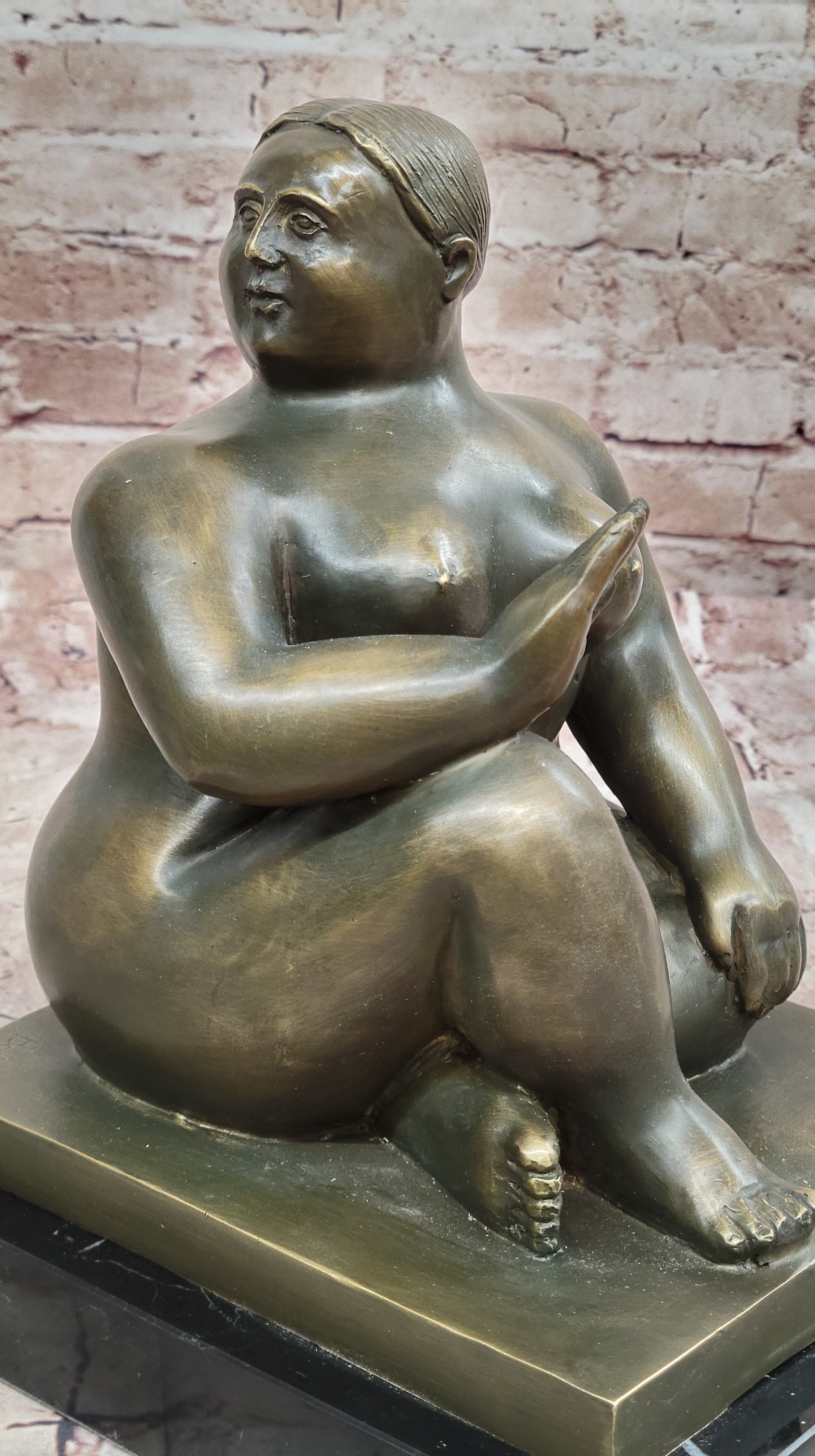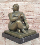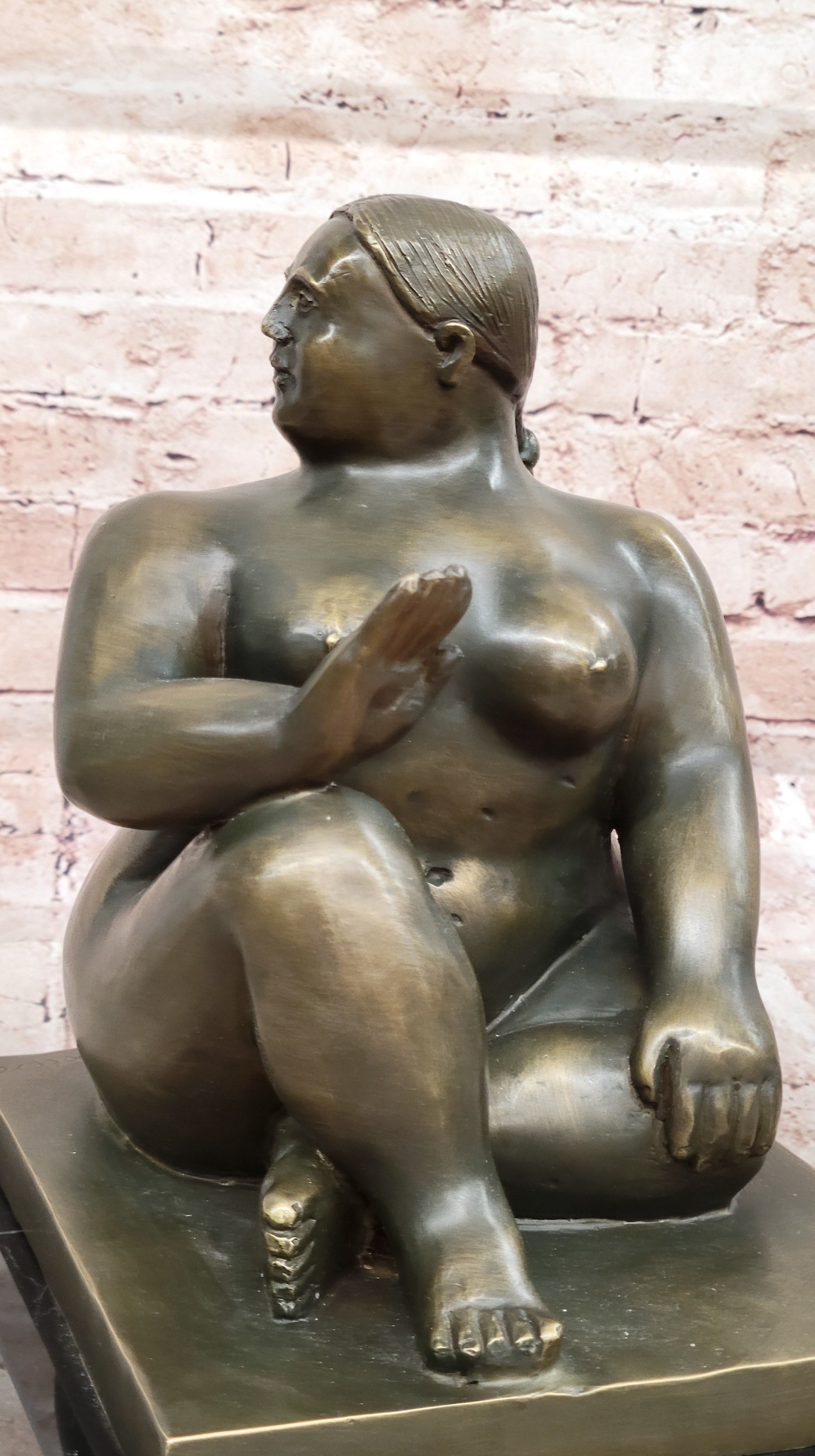 Fernando Botero Seated Woman Bronze Sculpture on Marble Base