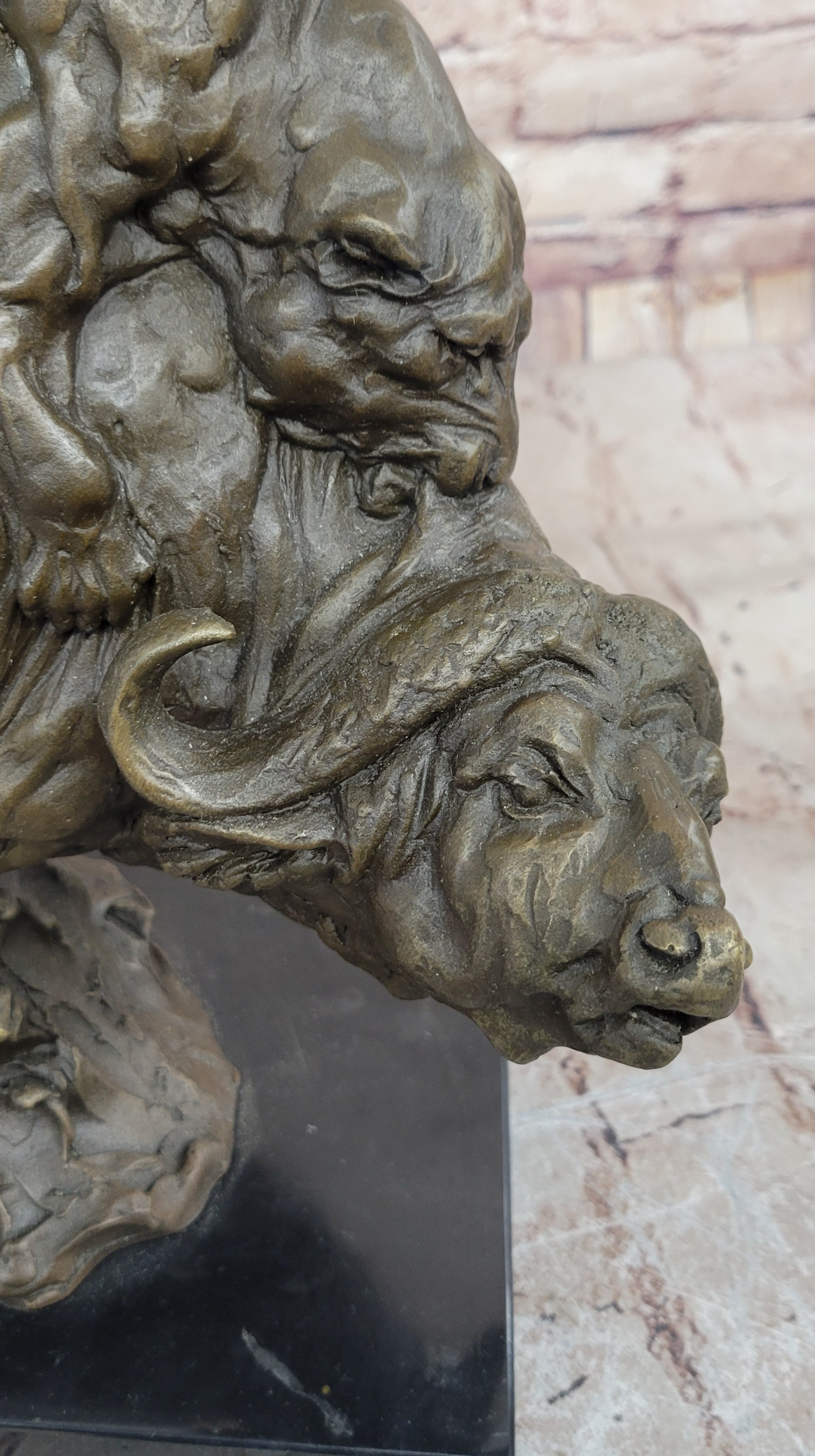 Fierce Lion vs. Buffalo – Hot Cast Bronze Wildlife Sculpture by Milo