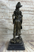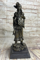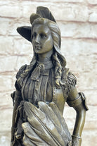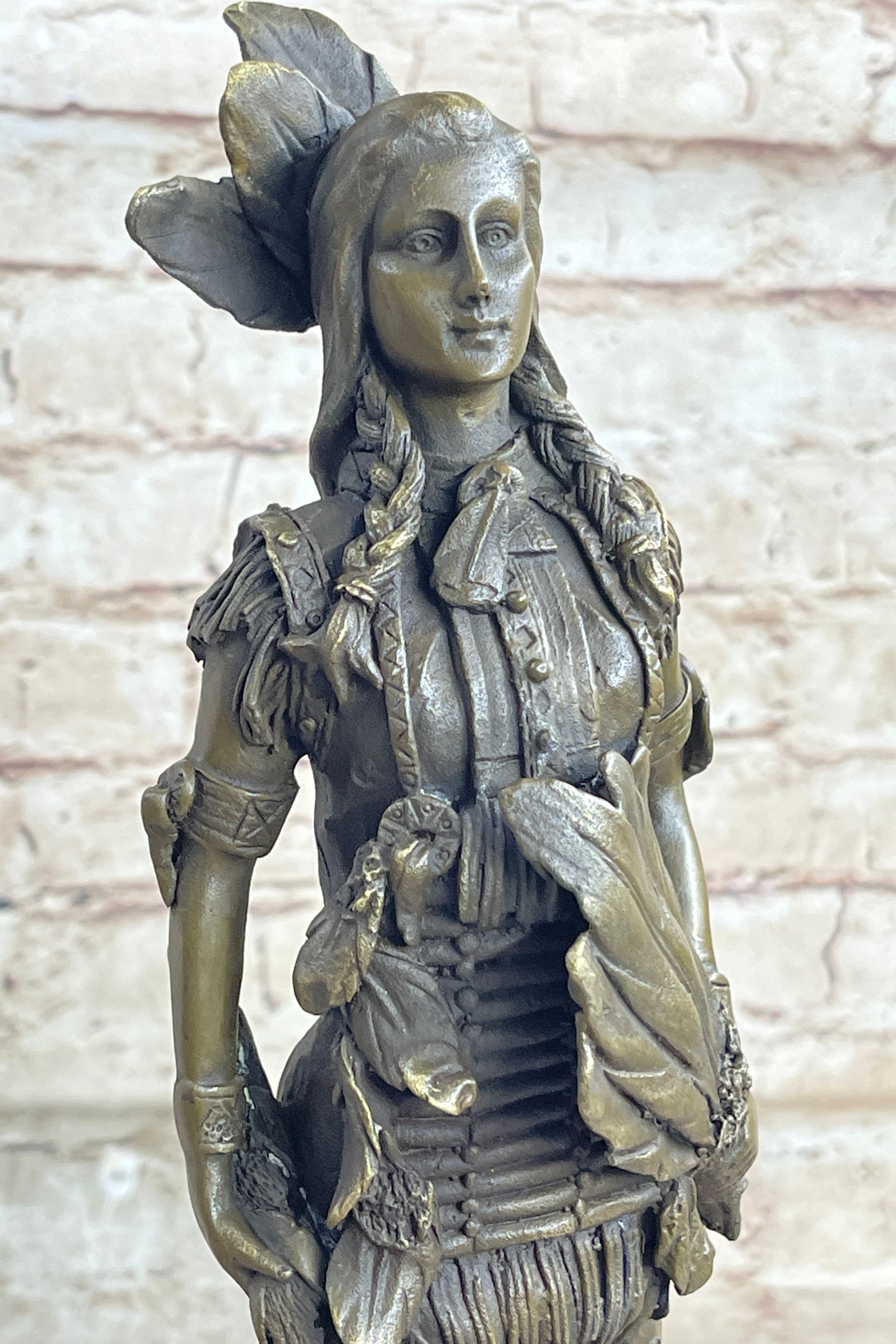 Highlighted by a stunning green patina, her accessories complement the rich brown patina of her skin and boots. Crafted with utmost care, this sculpture is made of 100% bronze and painstakingly created using the revered "Lost Wax Method." This ensures impeccable detail and craftsmanship throughout.
