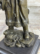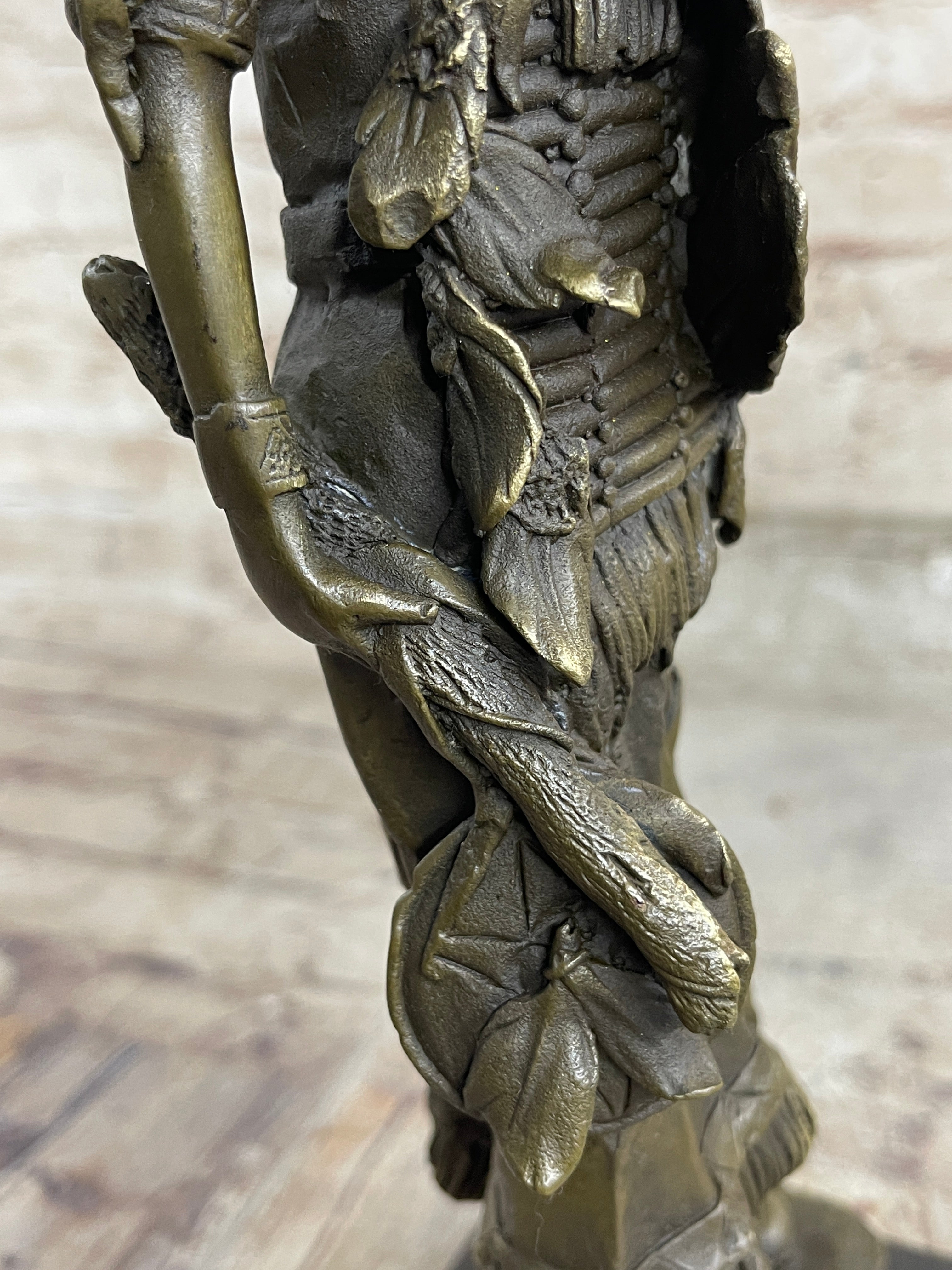 Own a truly remarkable piece of art that celebrates the bravery and beauty of Native American women. The "Brave Native Huntress" serves as a timeless symbol of strength, independence, and cultural heritage. Allow this extraordinary sculpture to grace your collection, infusing your space with the spirit of courage and resilience.Bronze Dimensions with Marble Base: Height 14.5" X Width 5"