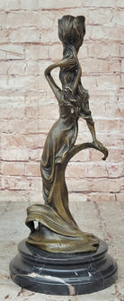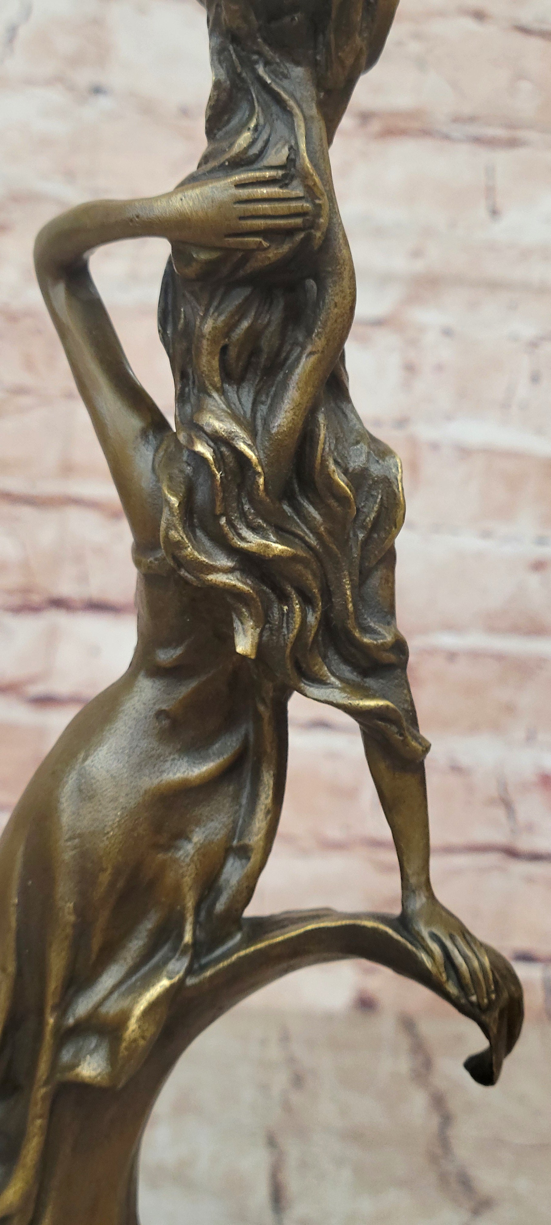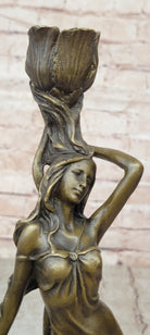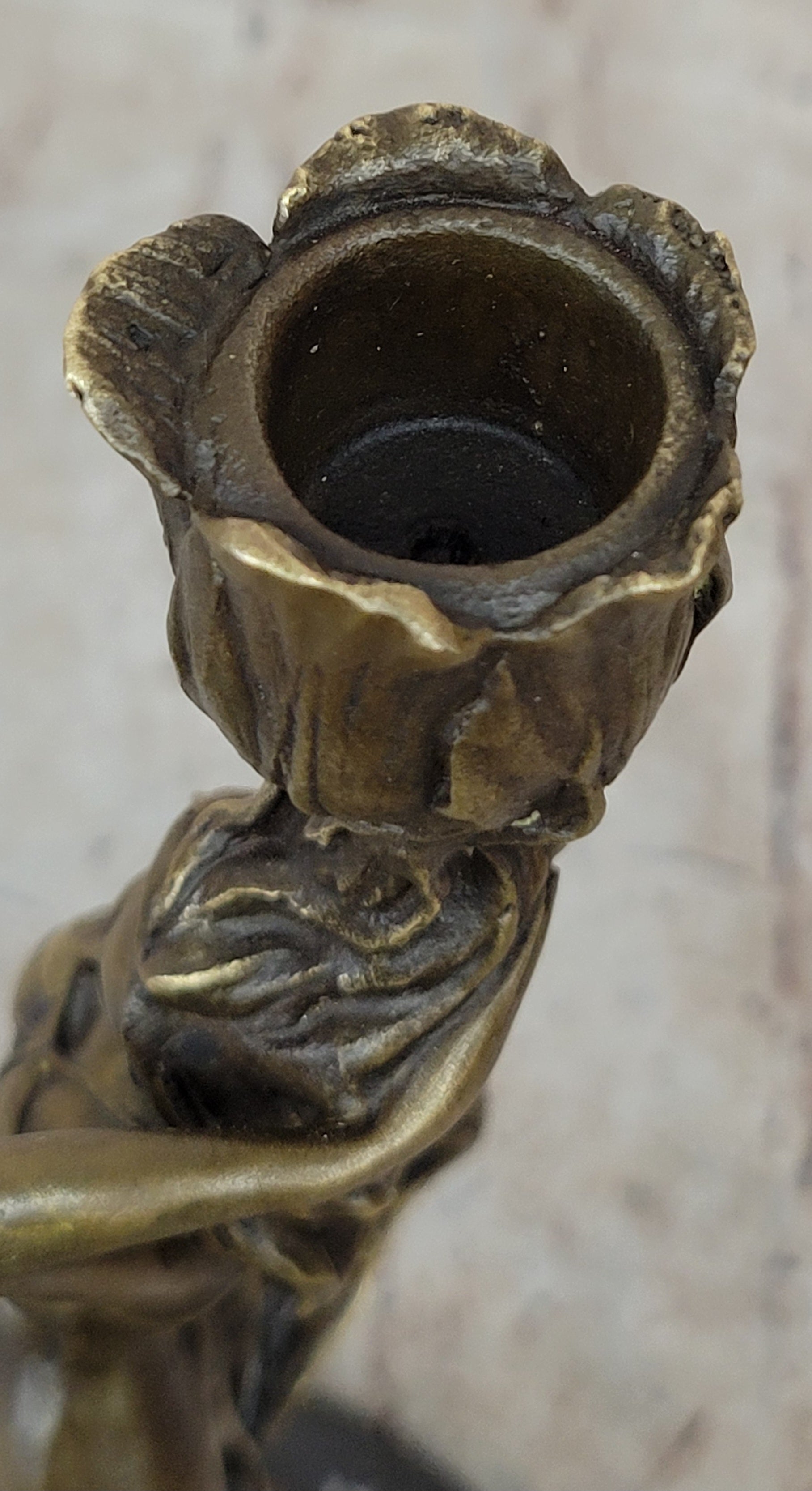Figural Bronze Candlestick Water Nymph Candle Holder Sculpture by Milo