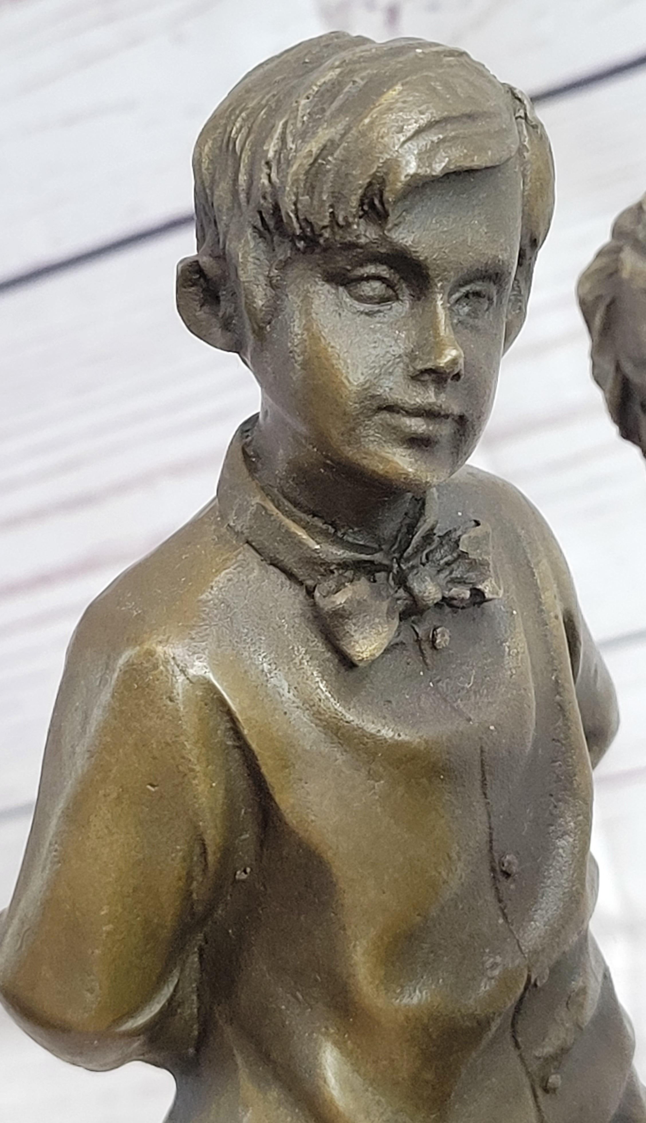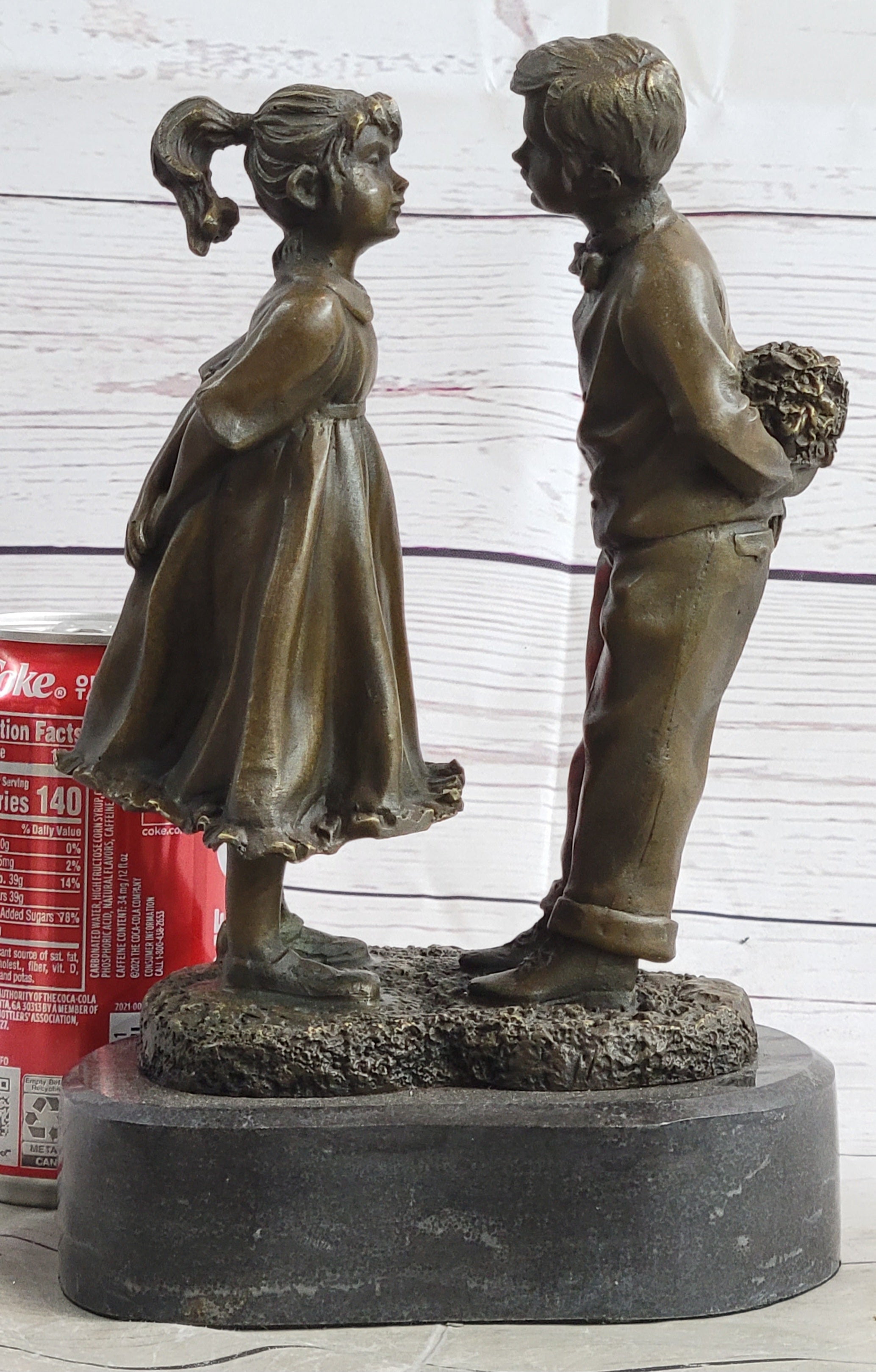 Whether you're a romantic at heart or looking for a sentimental gift, this bronze sculpture is a touching symbol of love and youthful innocence. Its universal appeal transcends generations, evoking fond memories and a sense of nostalgia. Let it adorn your living space, office, or any area that yearns for a touch of heartfelt sentiment. With the artist Milo's signature, this sculpture is not only a work of art but also a testament to enduring love and the beauty of fleeting moments.Bronze Dimensions with Marble Base: Height 10" X Width 6"