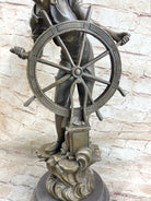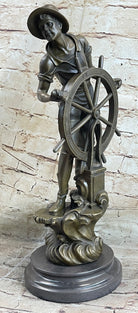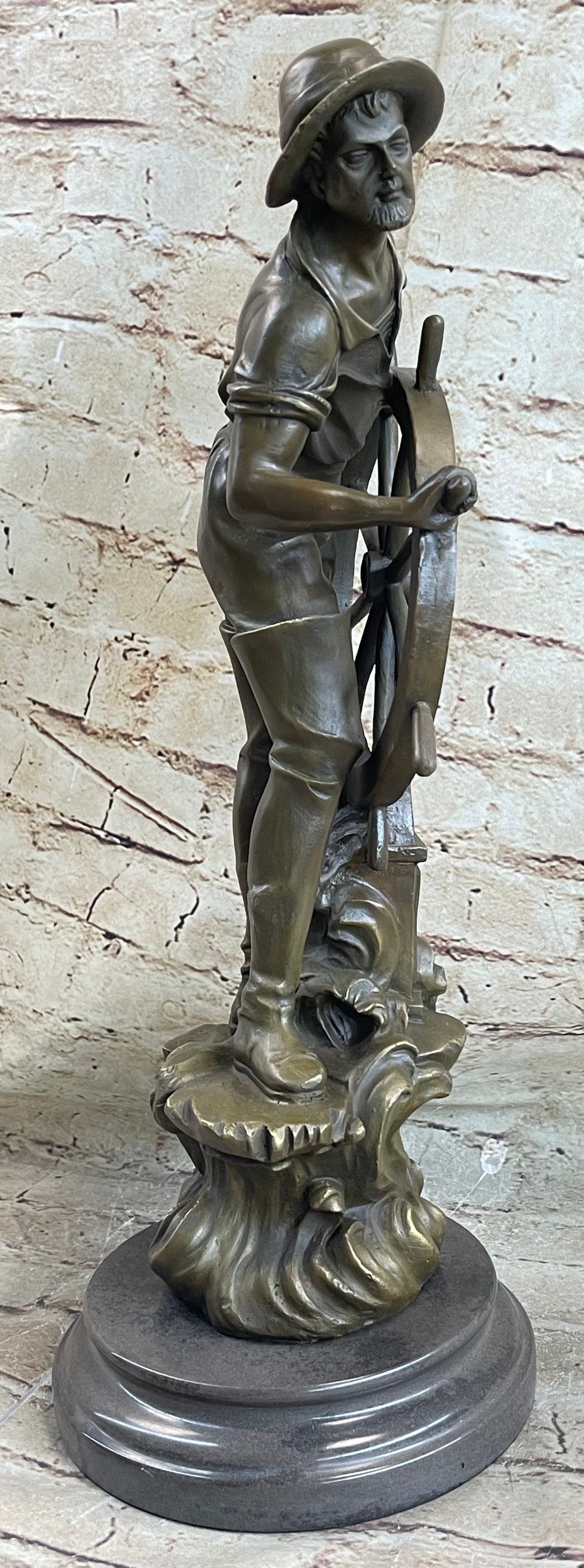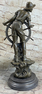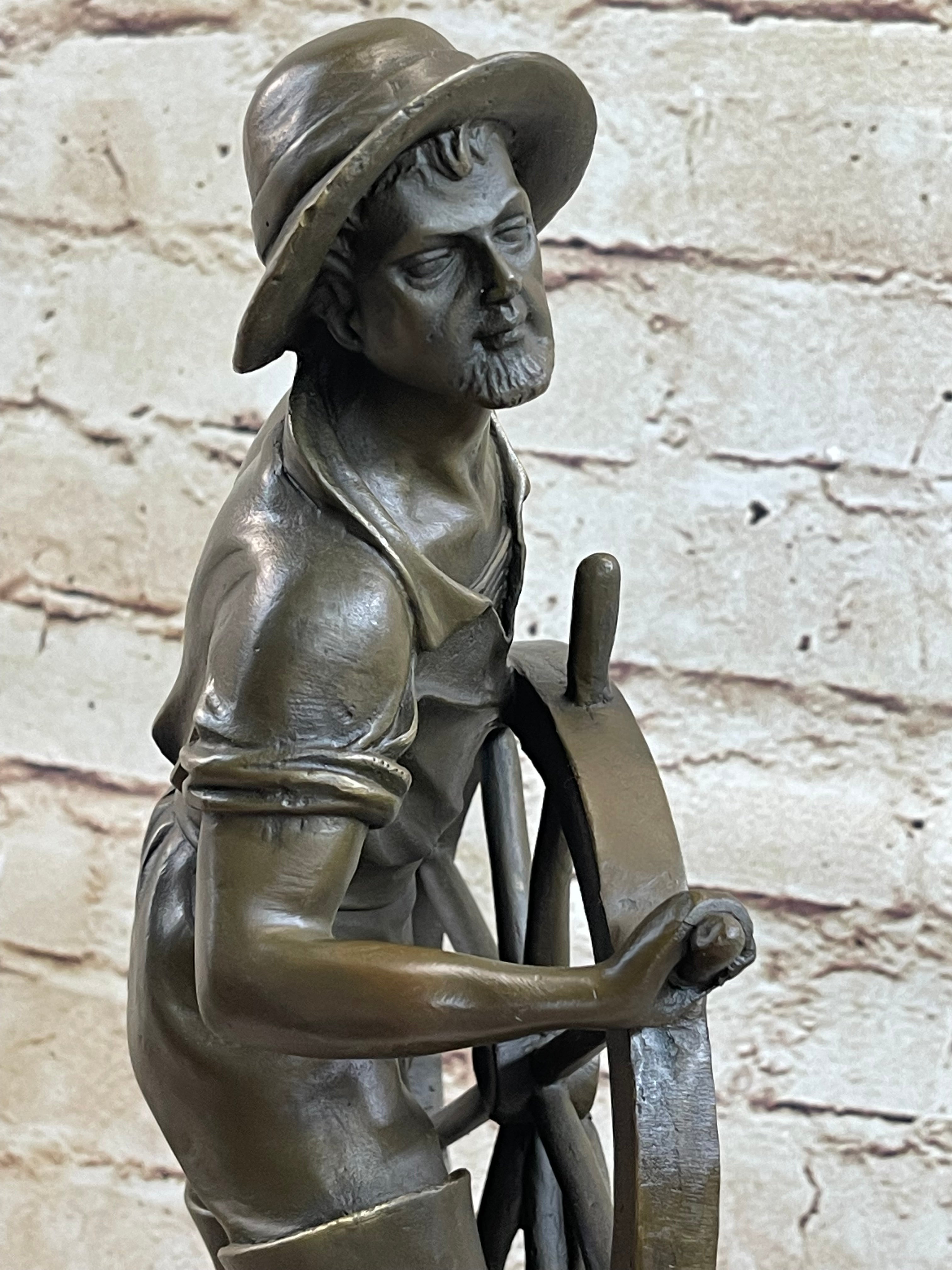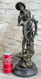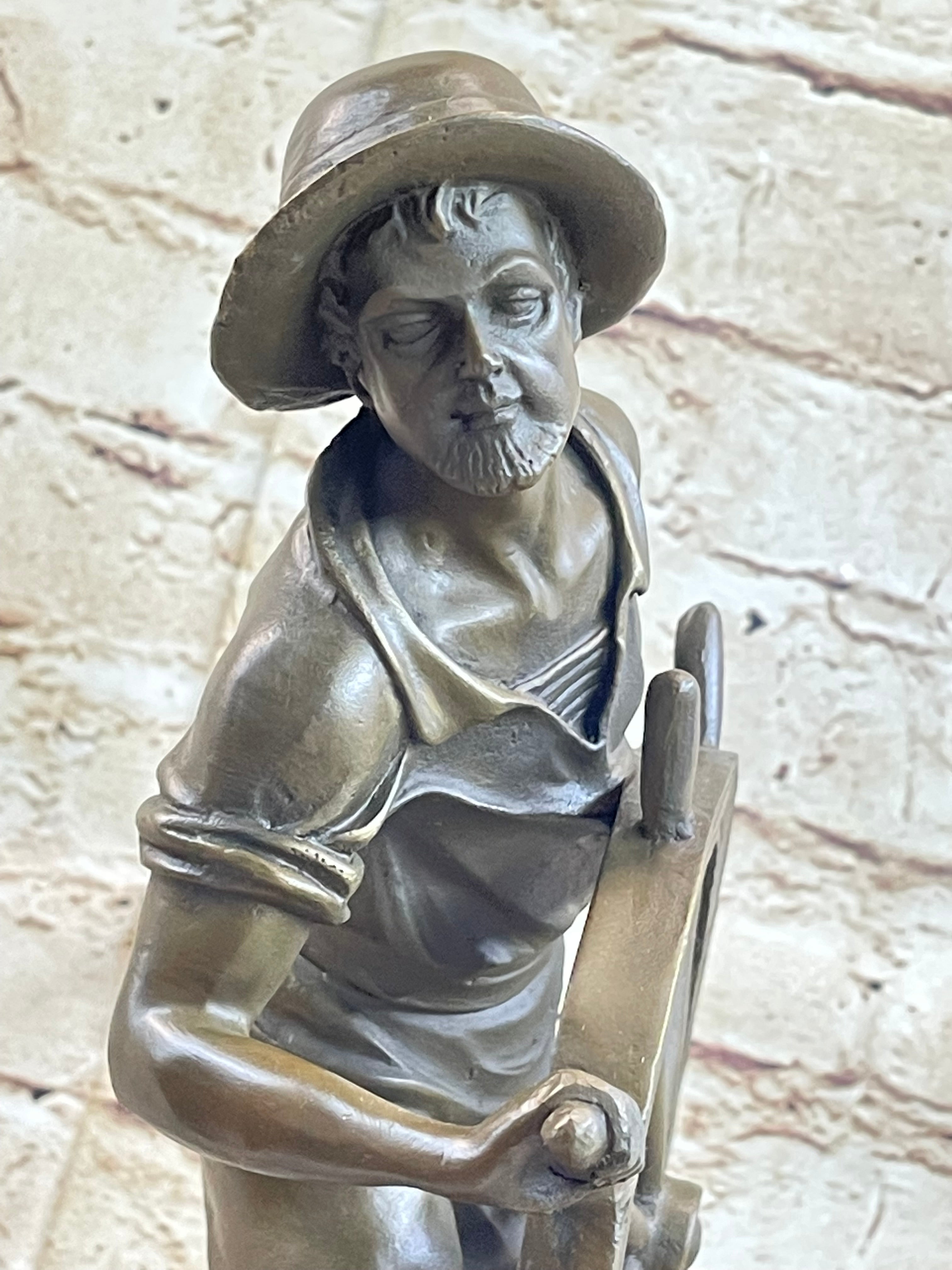 Ship Captain Fisherman Nautical Ocean Sailor Boating Decor Bronze Statue Sculpture 17.5" x 7"