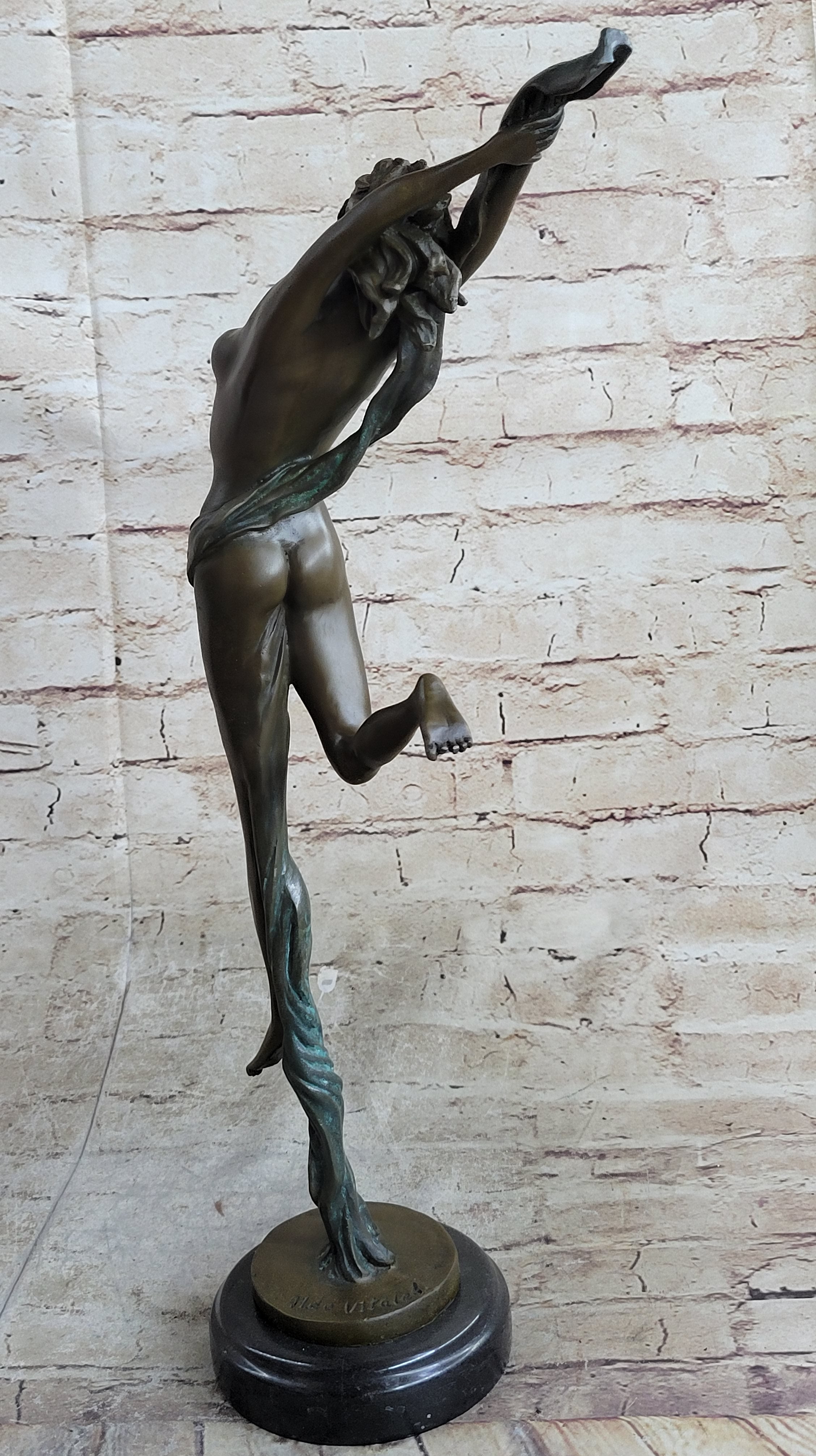 Floating Leaping Nude Girl Bronze Sculpture Original Art Female Figure by Aldo Vitaleh
