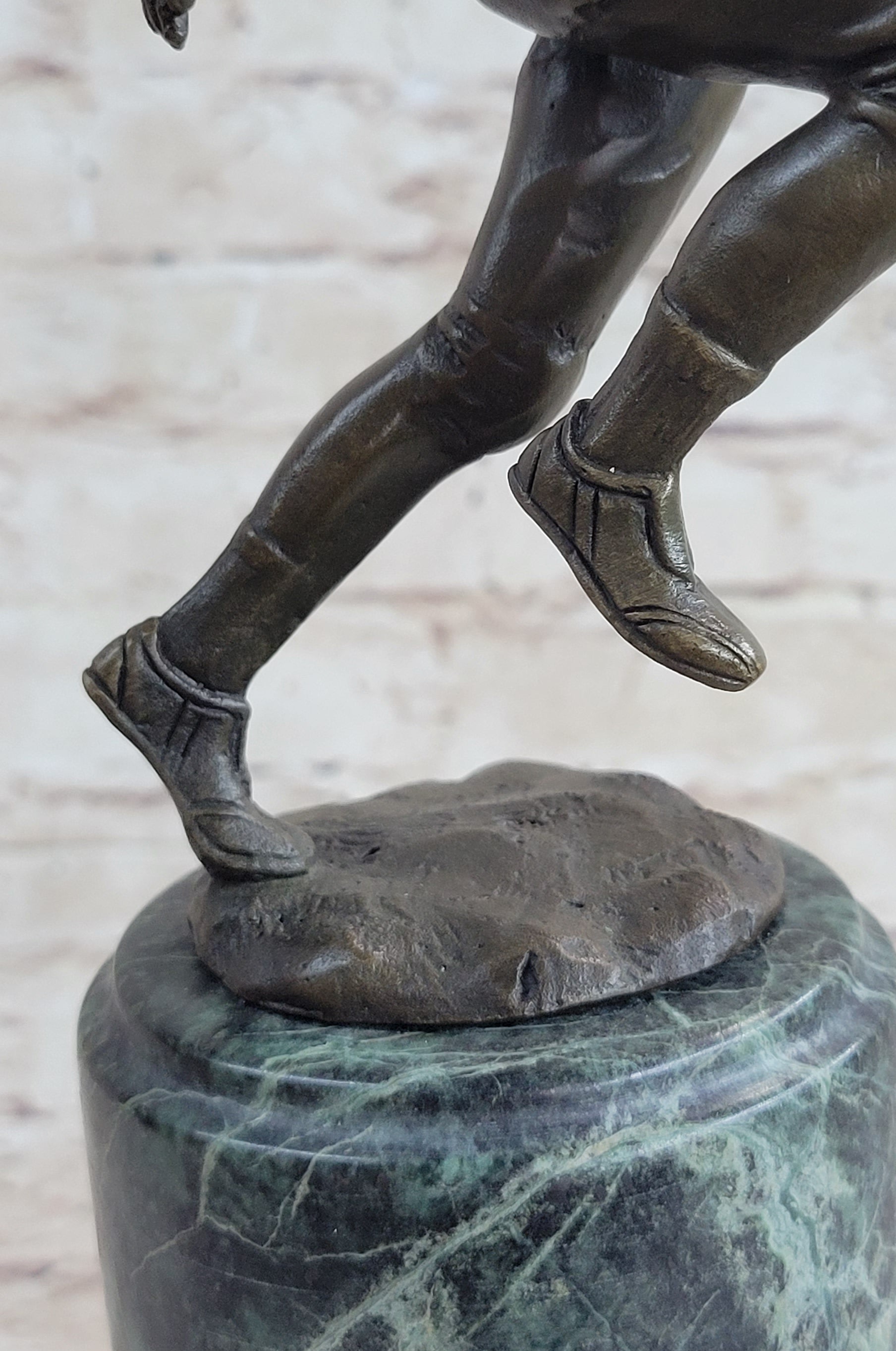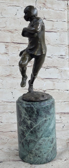 Through the art of lost wax casting, this sculpture not only celebrates the athleticism and spirit of competition but also pays homage to the enduring tradition of bronze sculpture. As viewers are drawn into the action and excitement of the game, they are reminded of the skill and craftsmanship required to capture such moments of intensity and motion in bronze, elevating the football player's journey from the field to a timeless work of art.Bronze Dimensions with Marble Base: Height 12" X Width 4"