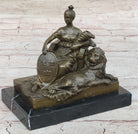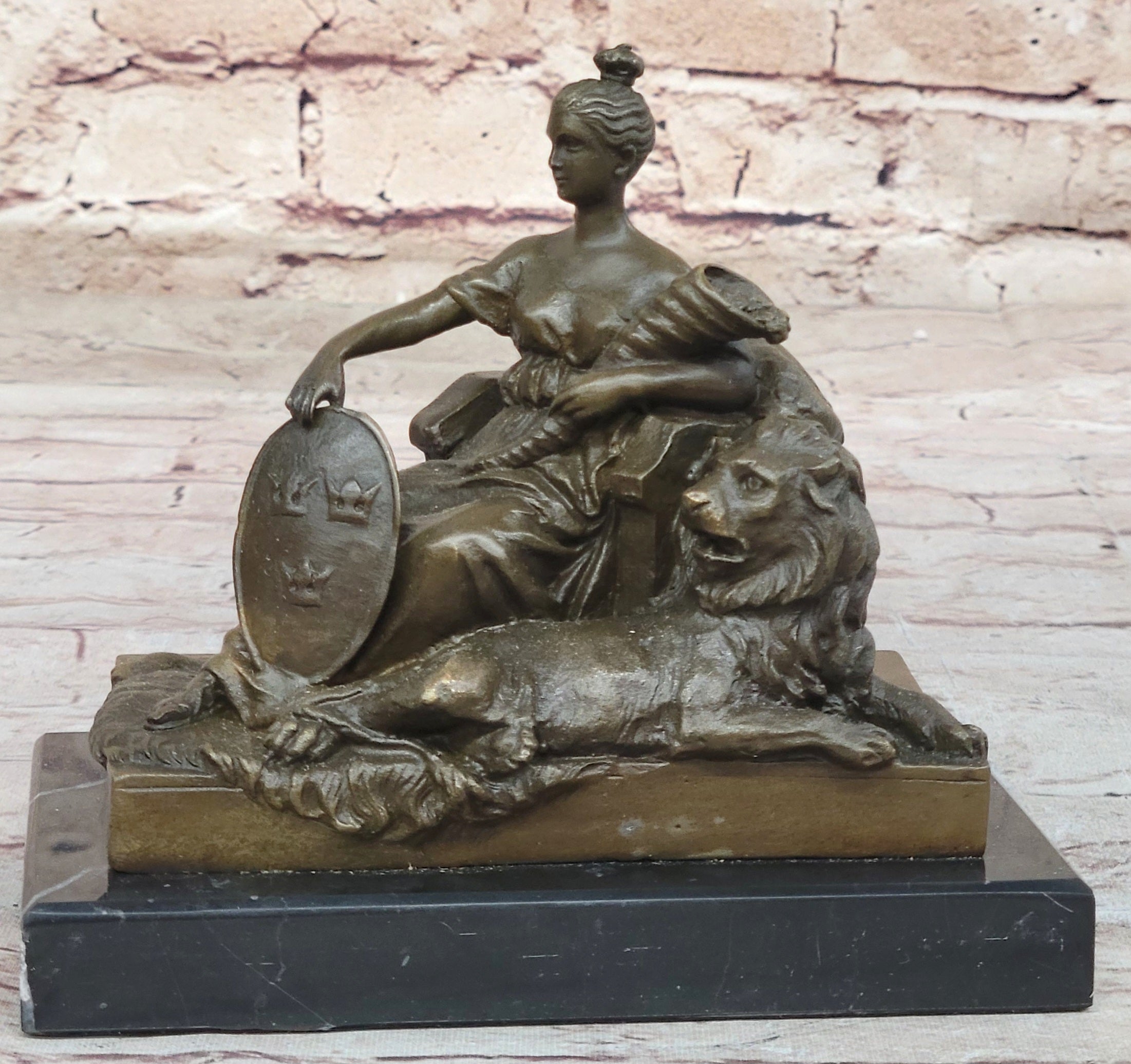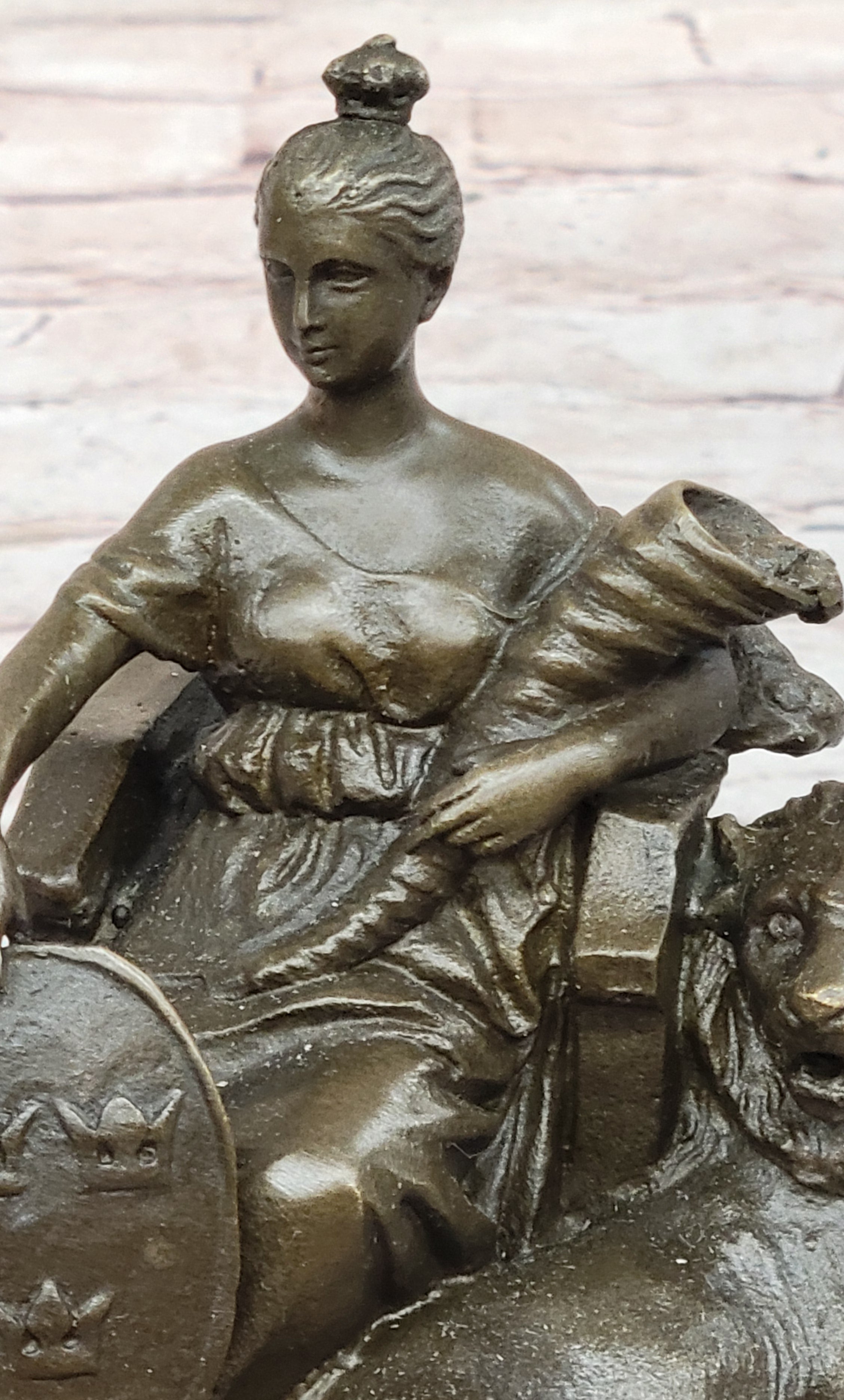 Fortuna Roman Goddess of Prosperity w/ Cornucopia & Lion - Bronze Sculpture by Milo