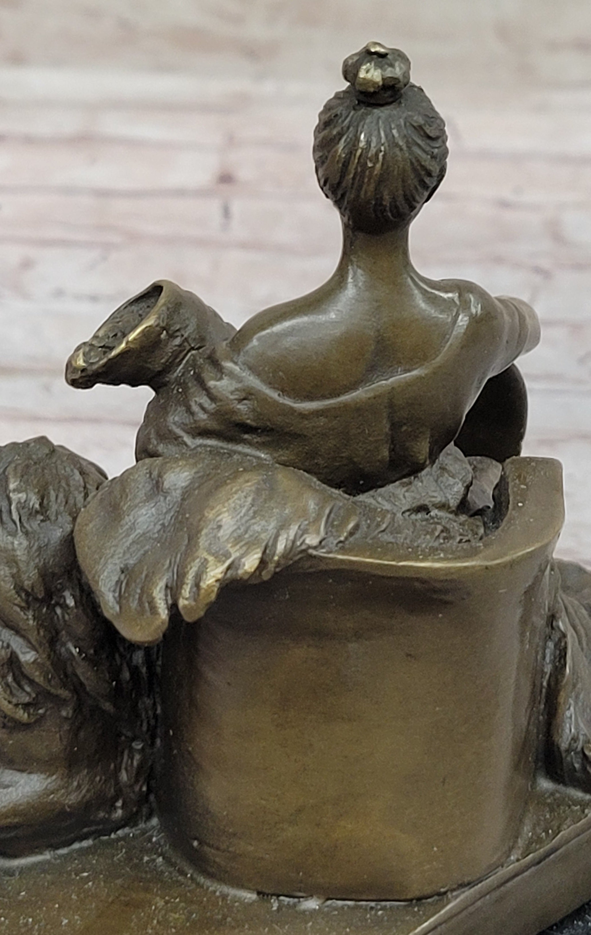 Crafted using the ancient lost-wax casting method, this handmade bronze sculpture stands as a testament to the enduring artistry of Milo. The brown patina finish enhances the details and serves as a protective layer, ensuring the preservation of the sculpture's beauty over time. Mounted on a black marble base adorned with the European Bronze Finery stamp of quality and Milo's signature, this piece is a fine example of European craftsmanship.