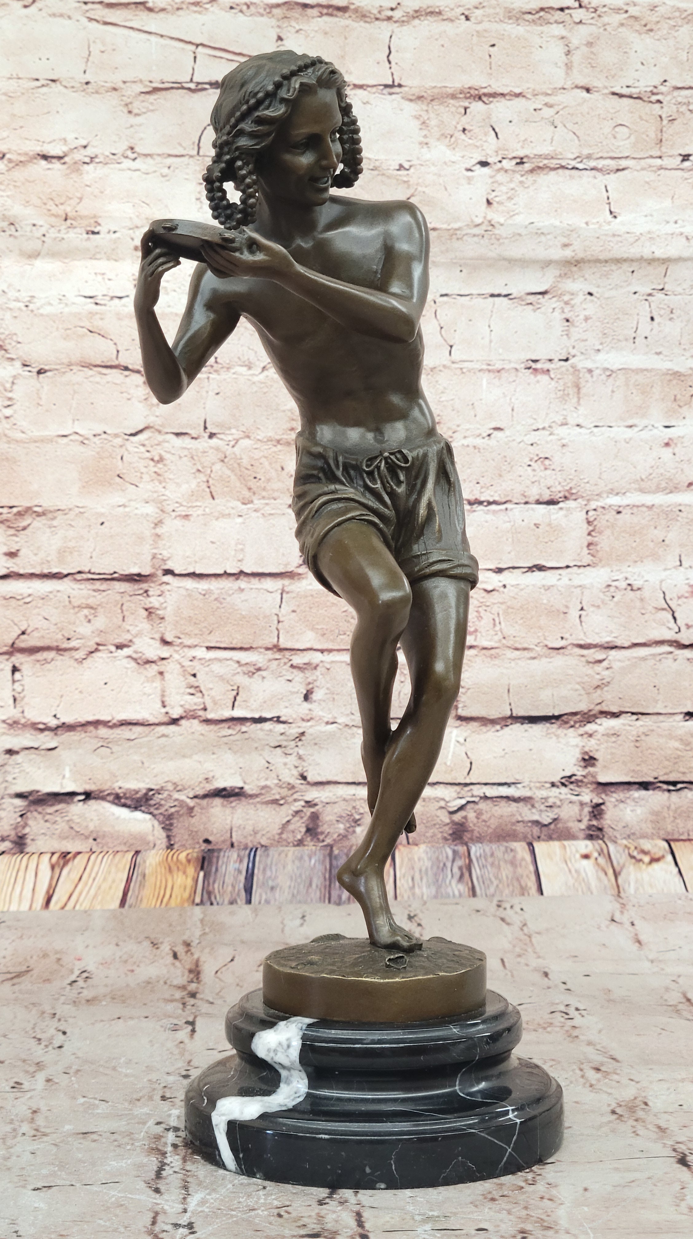 Francois Duret Bronze Sculpture – Playful Tambourine Dancer Figurine on Marble Base