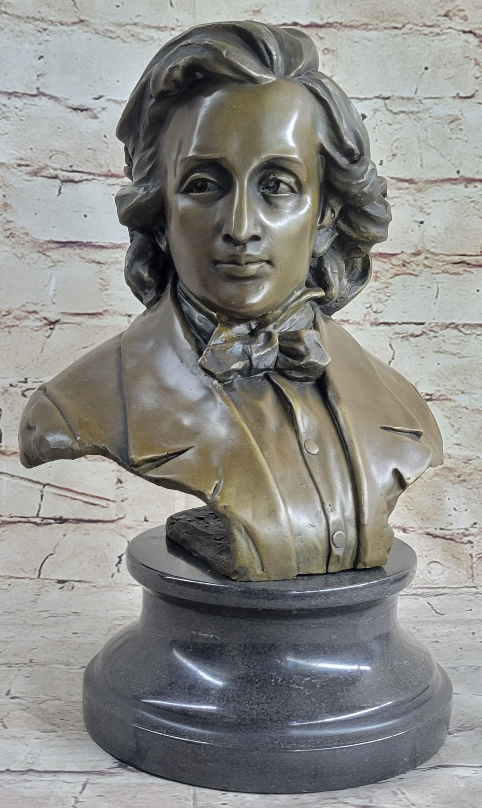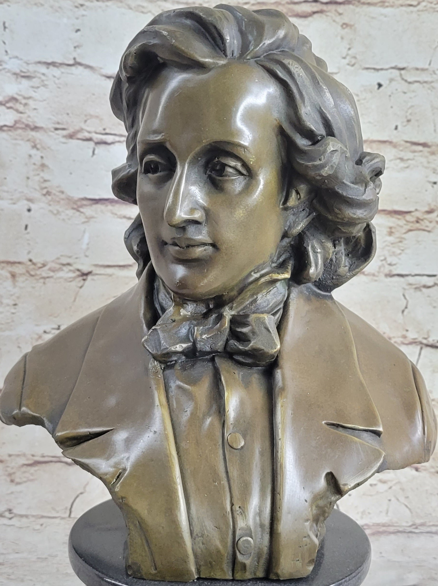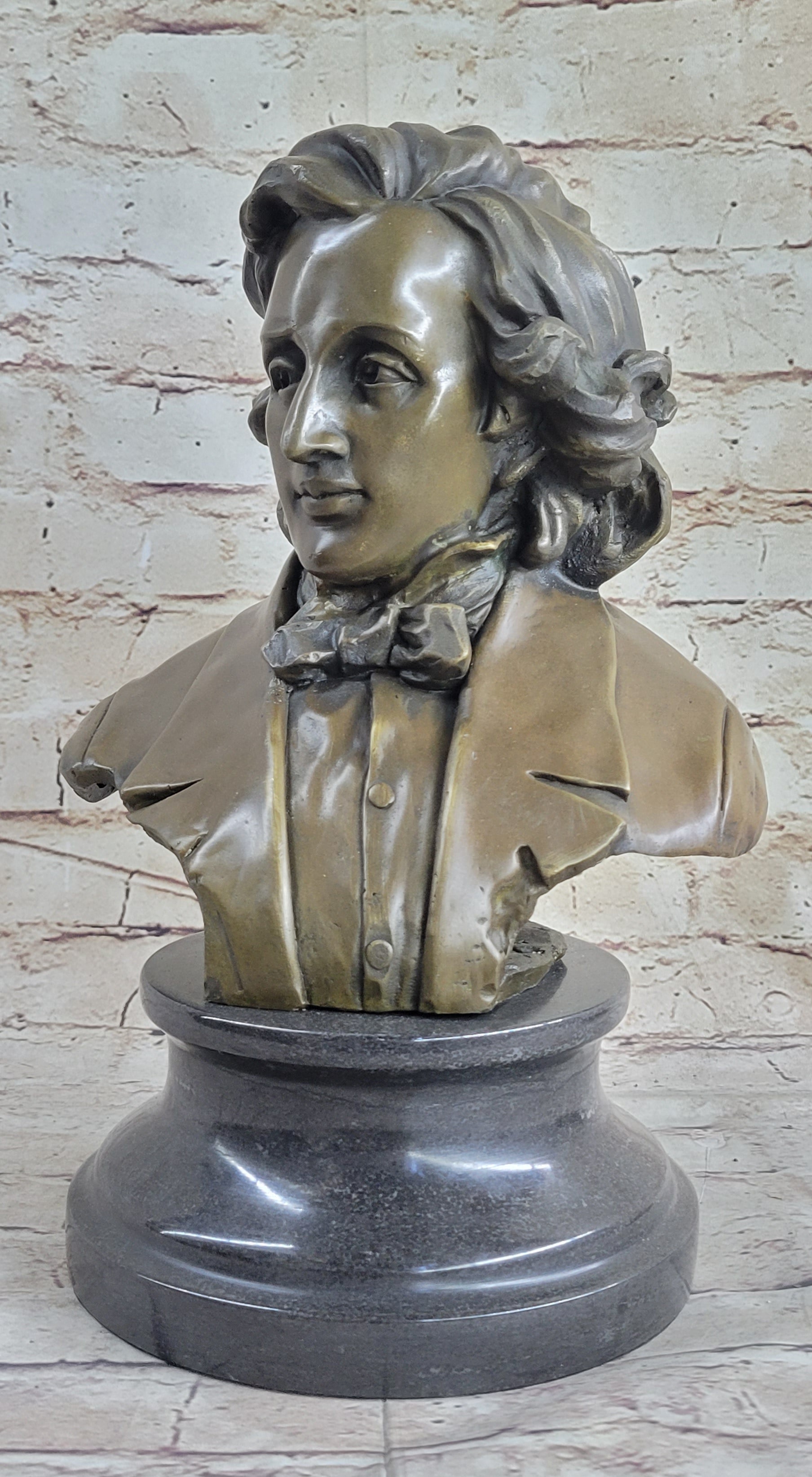 Frederic Chopin Bronze Bust Sculpture Statue Classical Composer Decor Original Art on Marble Base
