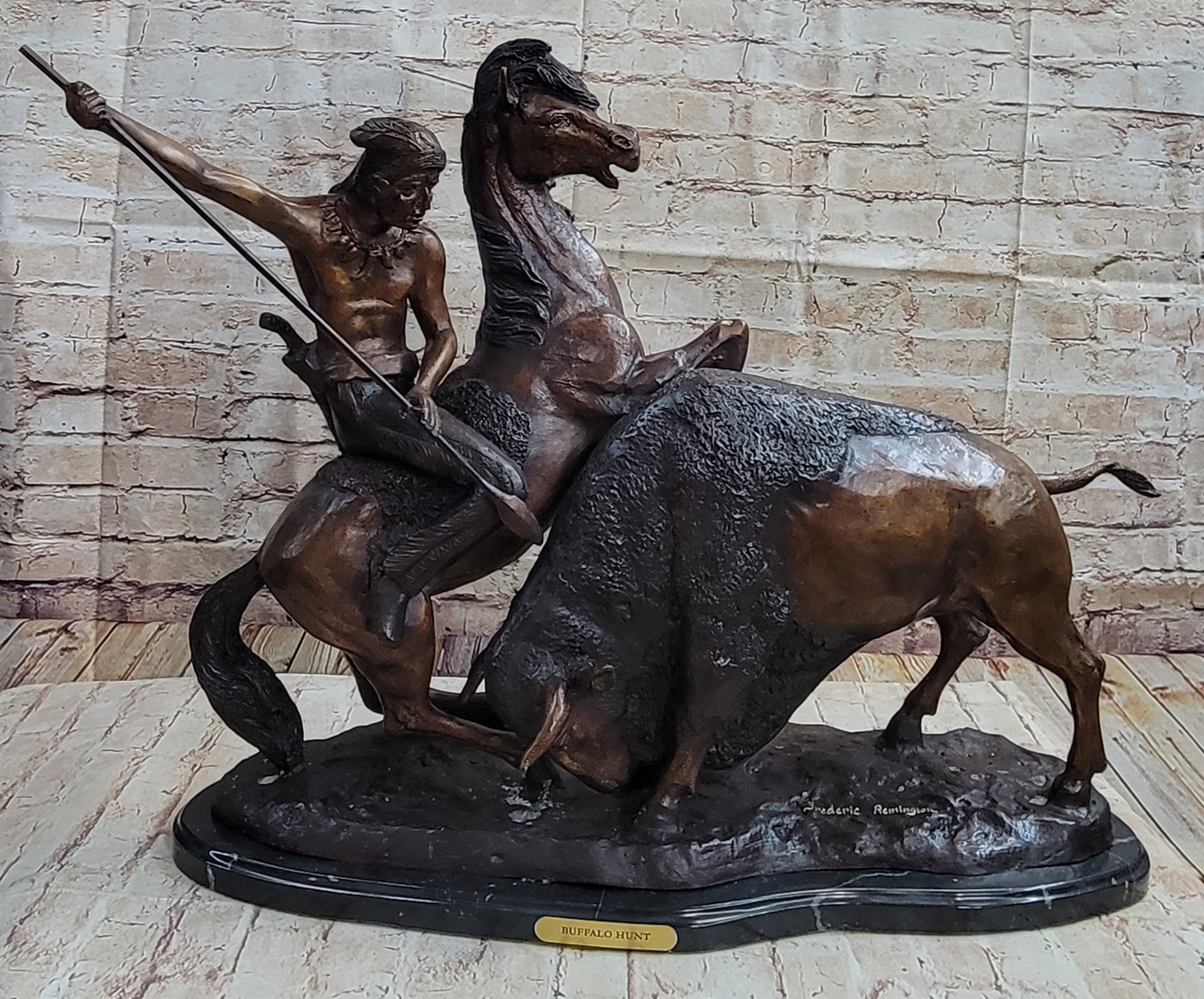 Frederic Remington Buffalo Hunt Bronze Sculpture Statue Native American Western Art Decor