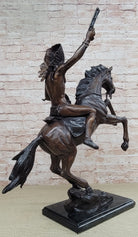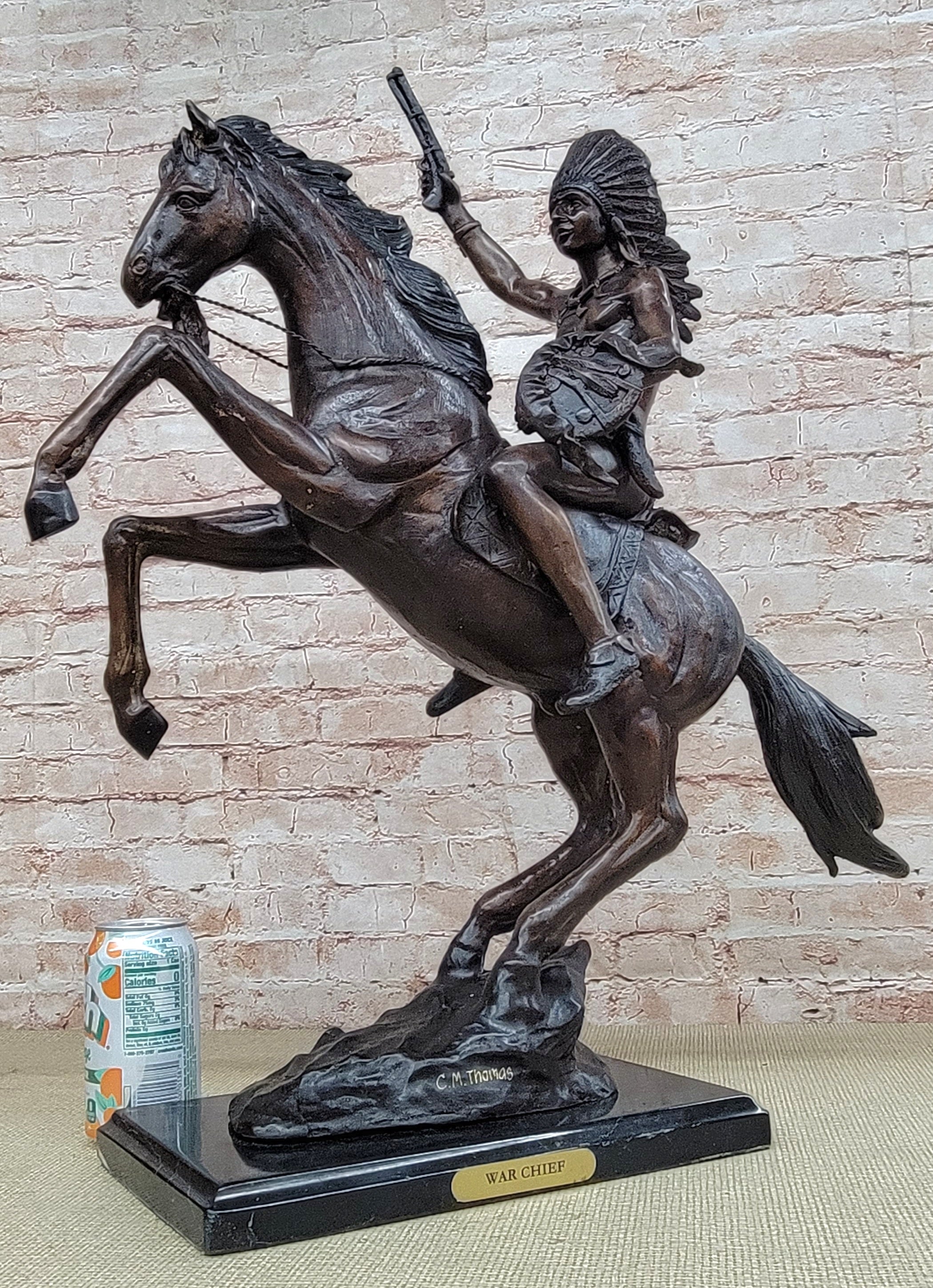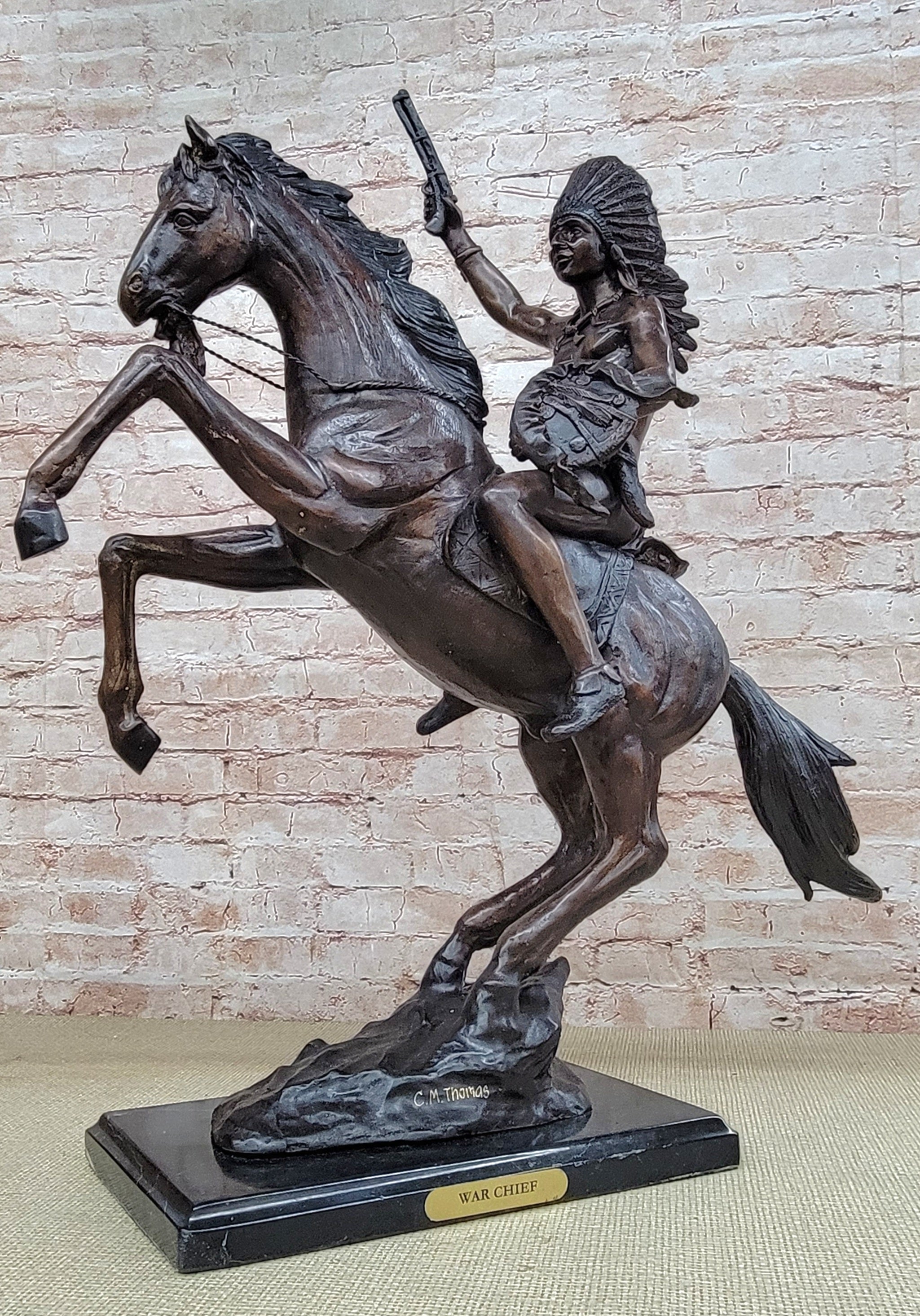 WAR CHIEF Native American Bronze Statue Sculpture Western Art Marble Base 24" x 23"
