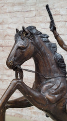 Crafted with expertise, the sculpture is handmade of 100% bronze, utilizing the ancient and revered "Lost Wax Method" for casting. The choice of a two-tone brown patina enhances the depth and authenticity of the piece, adding a nuanced texture to the surfaces. Resting atop a black marble base, the sculpture not only gains stability but also presents itself as a museum-worthy display. The artist Thomas's signature adds a final touch, signifying the authenticity of the work and the skilled craftsmanship that brings this historical narrative to contemporary viewers. This timeless and evocative sculpture promises to be a source of enjoyment and contemplation for many years to come.Bronze Dimensions with Marble Base: Height 27" X Width 23"