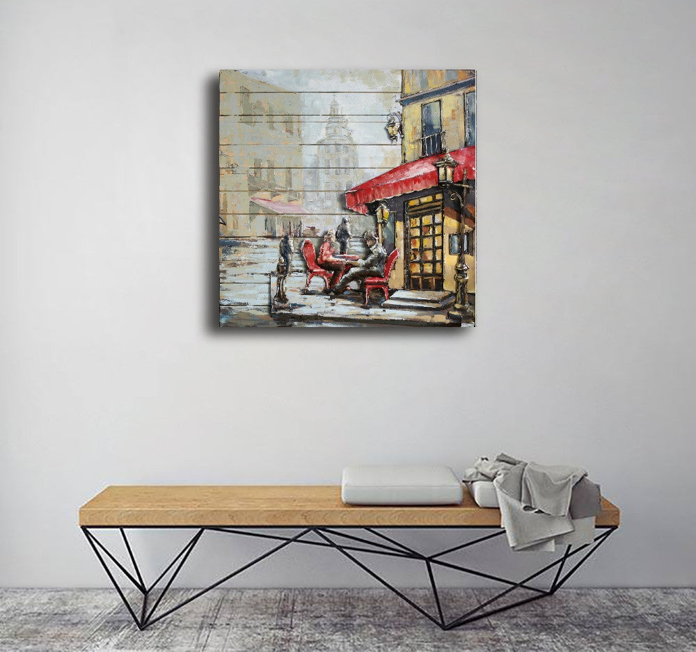 French Cafe 3-D Hand Made Wall Mount Oil Painting Artwork Home Decor Hand Made