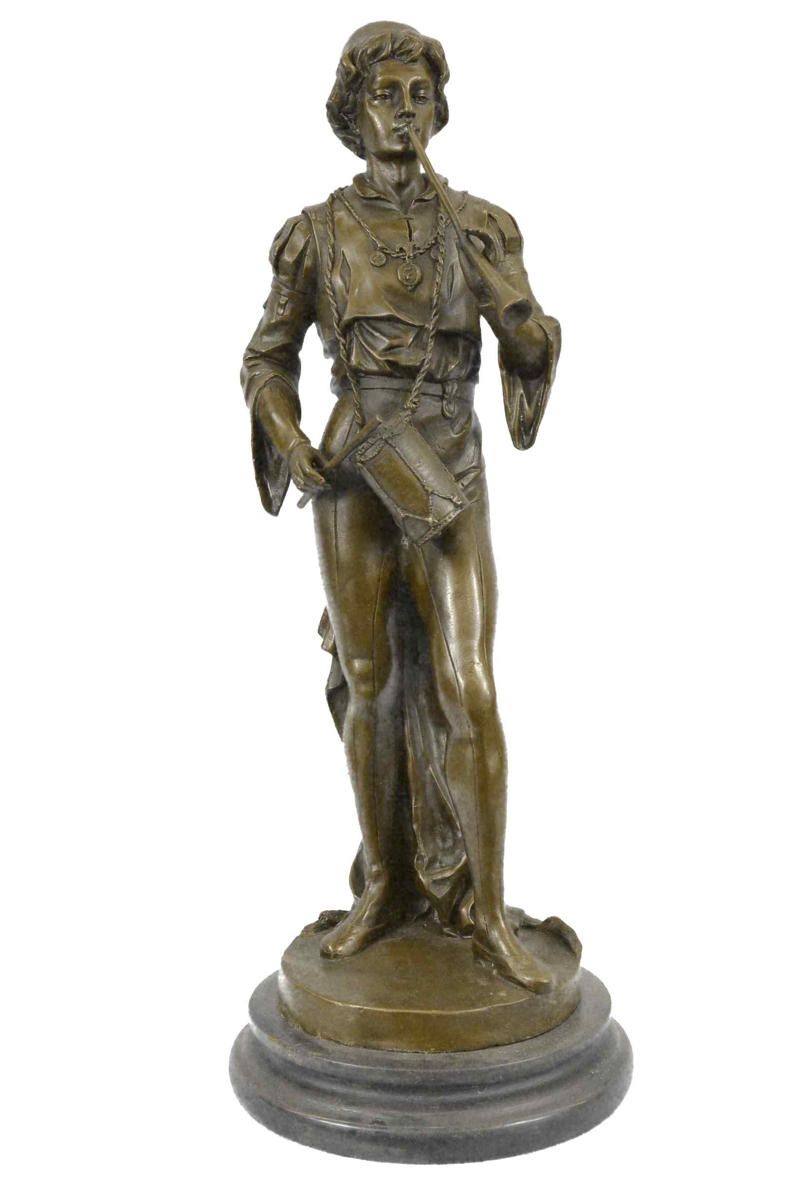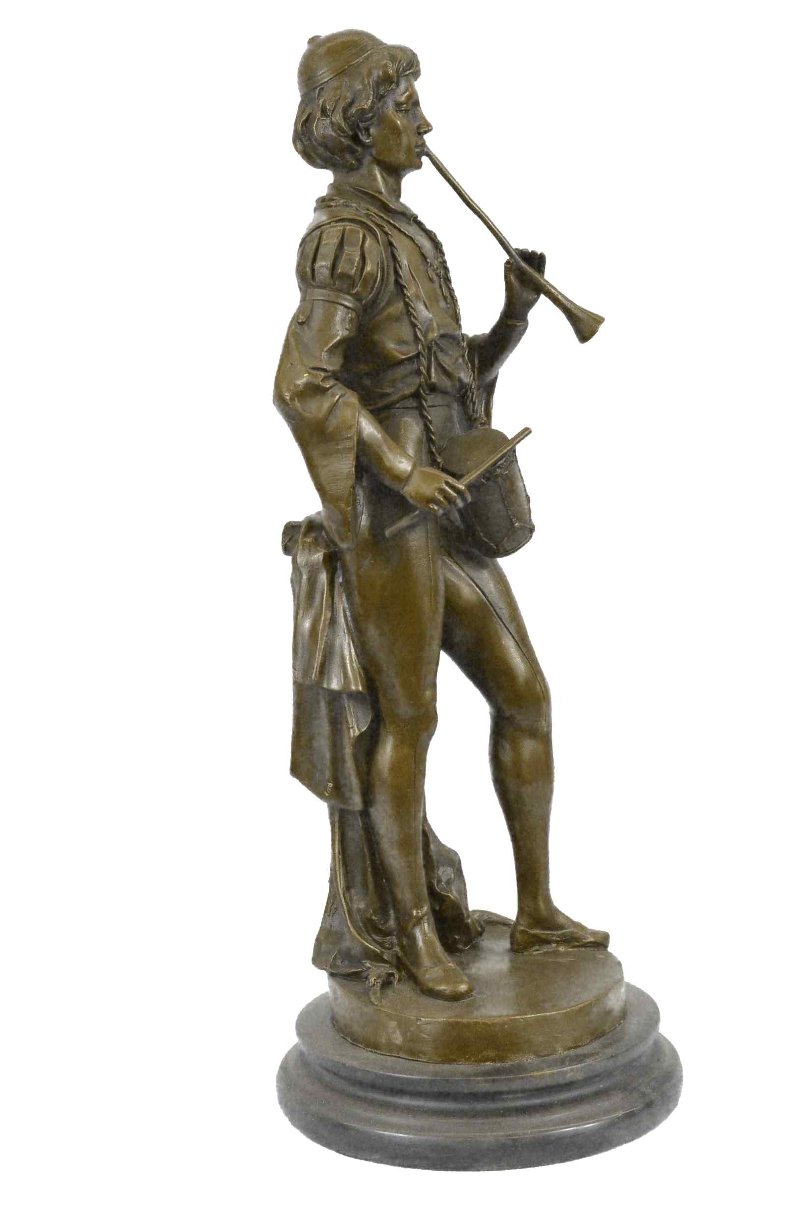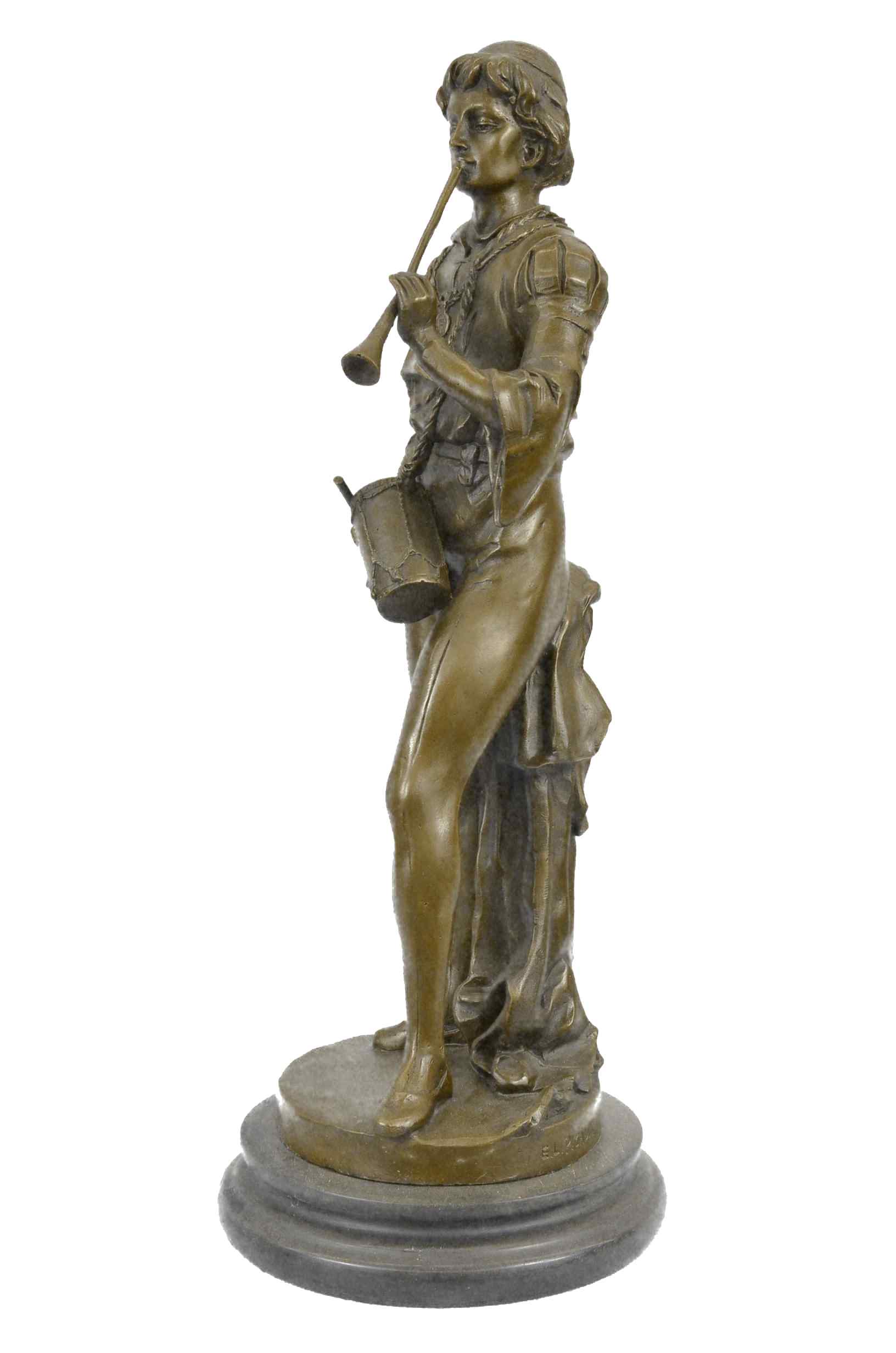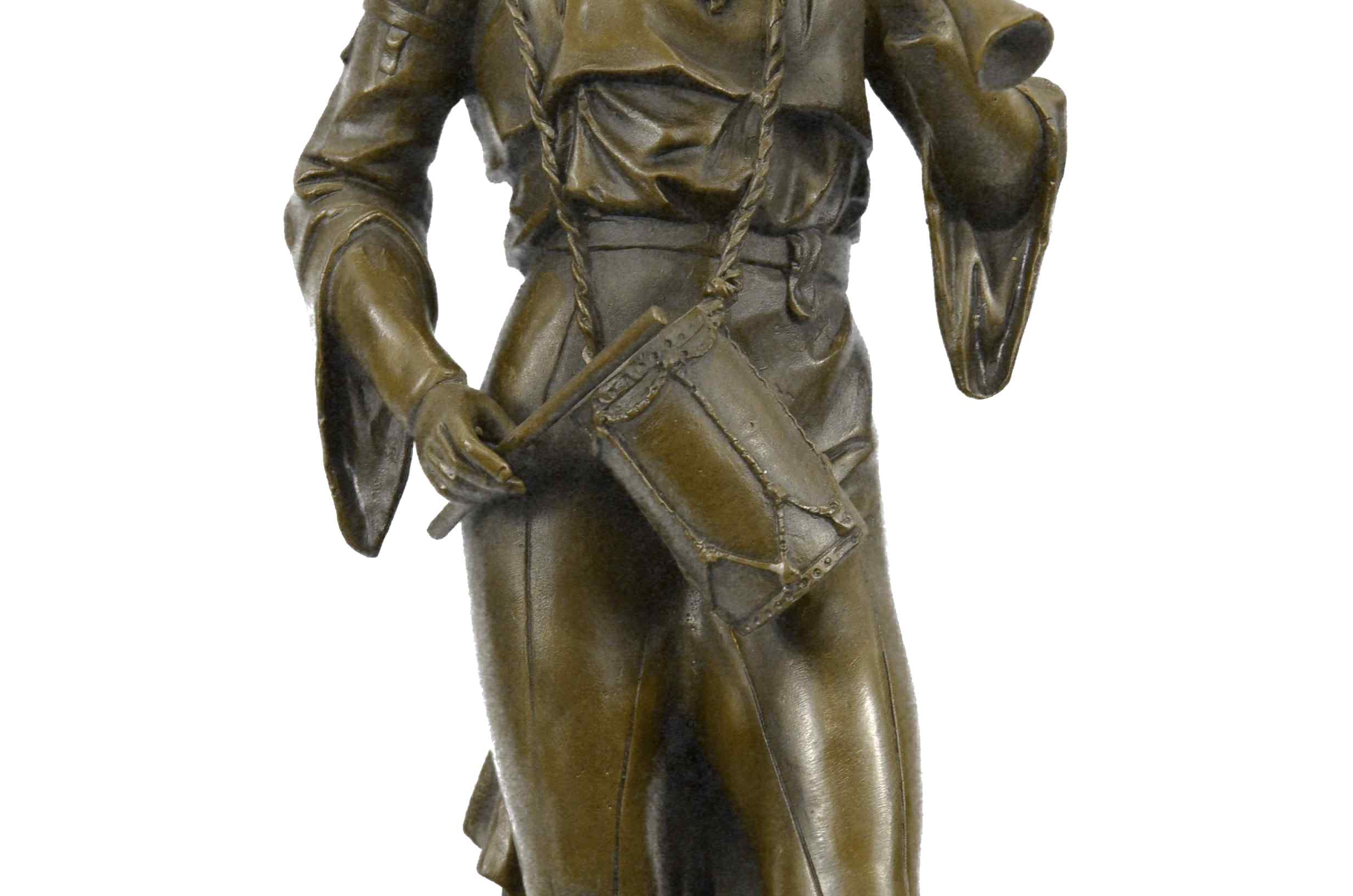 French Civil War Drummer Bronze Sculpture Marble Base Figurine Statue Figure Art