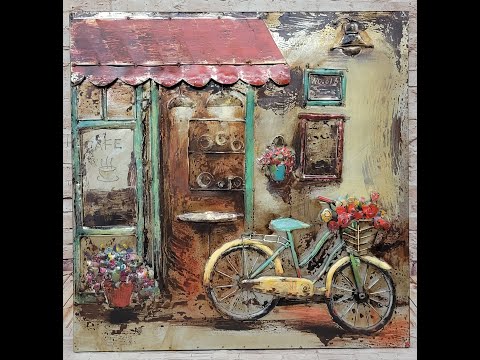 French European Café Scene 3D Painting on Metal Canvas