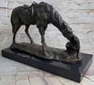 The artist's exceptional craftsmanship shines through in the intricate details of the sculpture. Each meticulously sculpted muscle of the horse and the flowing mane showcases the artist's dedication to capturing the essence of these remarkable creatures. Crafted using the ancient lost-wax casting techniques, the sculpture exudes a timeless quality that will be cherished for generations to come. The rich brown patina finish adds depth and character to the piece, highlighting the intricate details and enhancing its overall beauty.