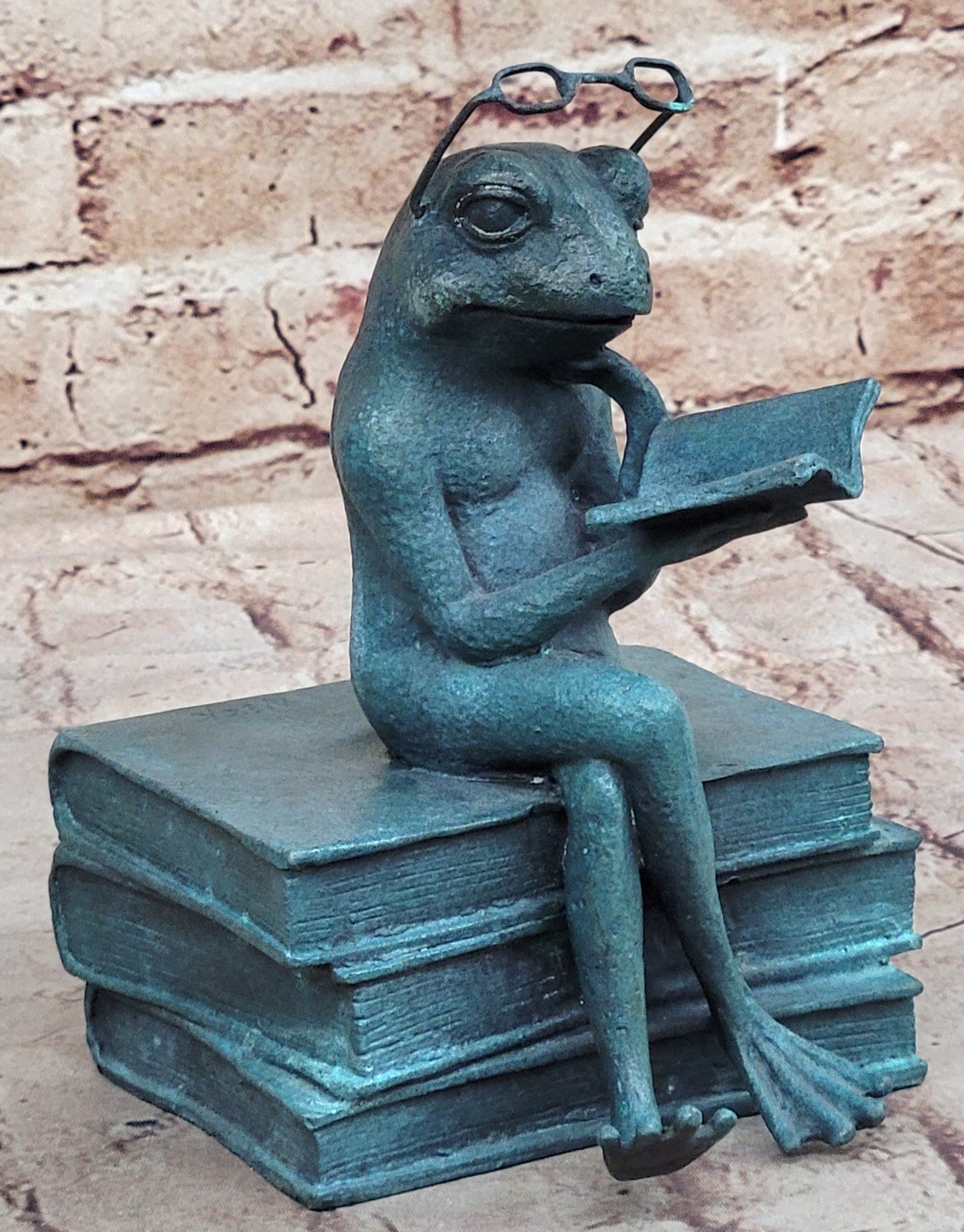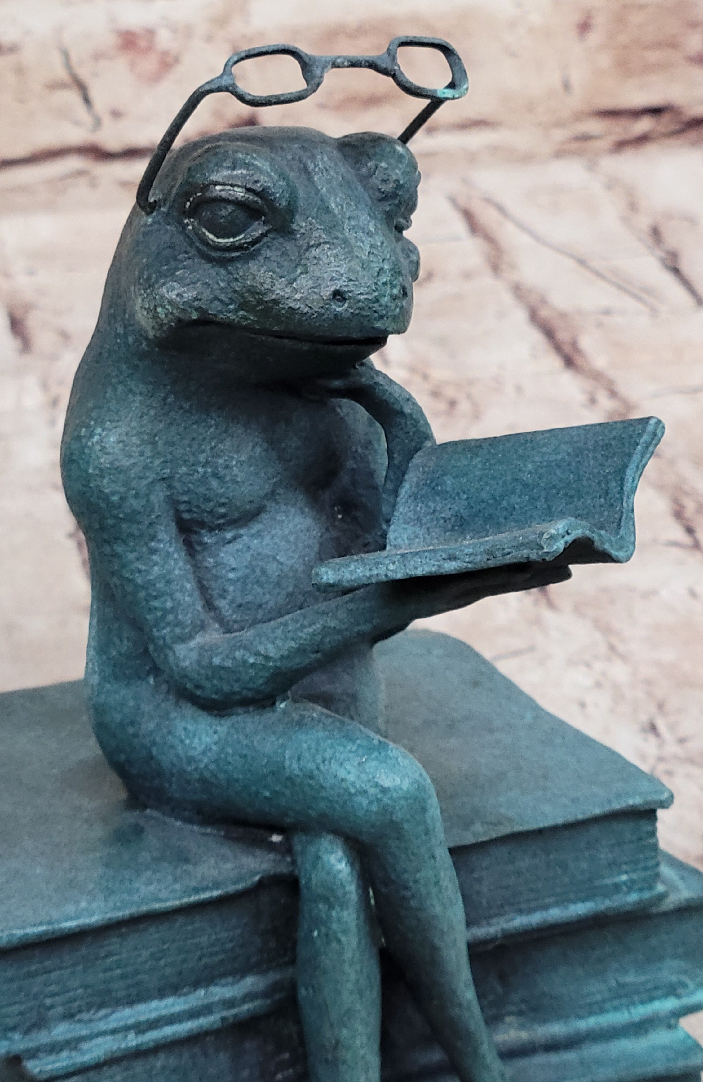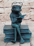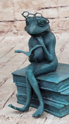 Frog Reading a Book Bronze Metal Sculpture Statue Decor Signed Art