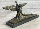 The intricate details and impeccable craftsmanship of this handmade bronze sculpture are truly remarkable. It was created using the early technique of lost-wax casting, a method that has been employed for centuries to capture the fine details and nuances of the human form. The sculpture is adorned with a rich brown patina finish, adding depth and character to the piece. Mounted upon a black marble base, it exudes a sense of elegance and solidity, further enhancing its visual appeal.