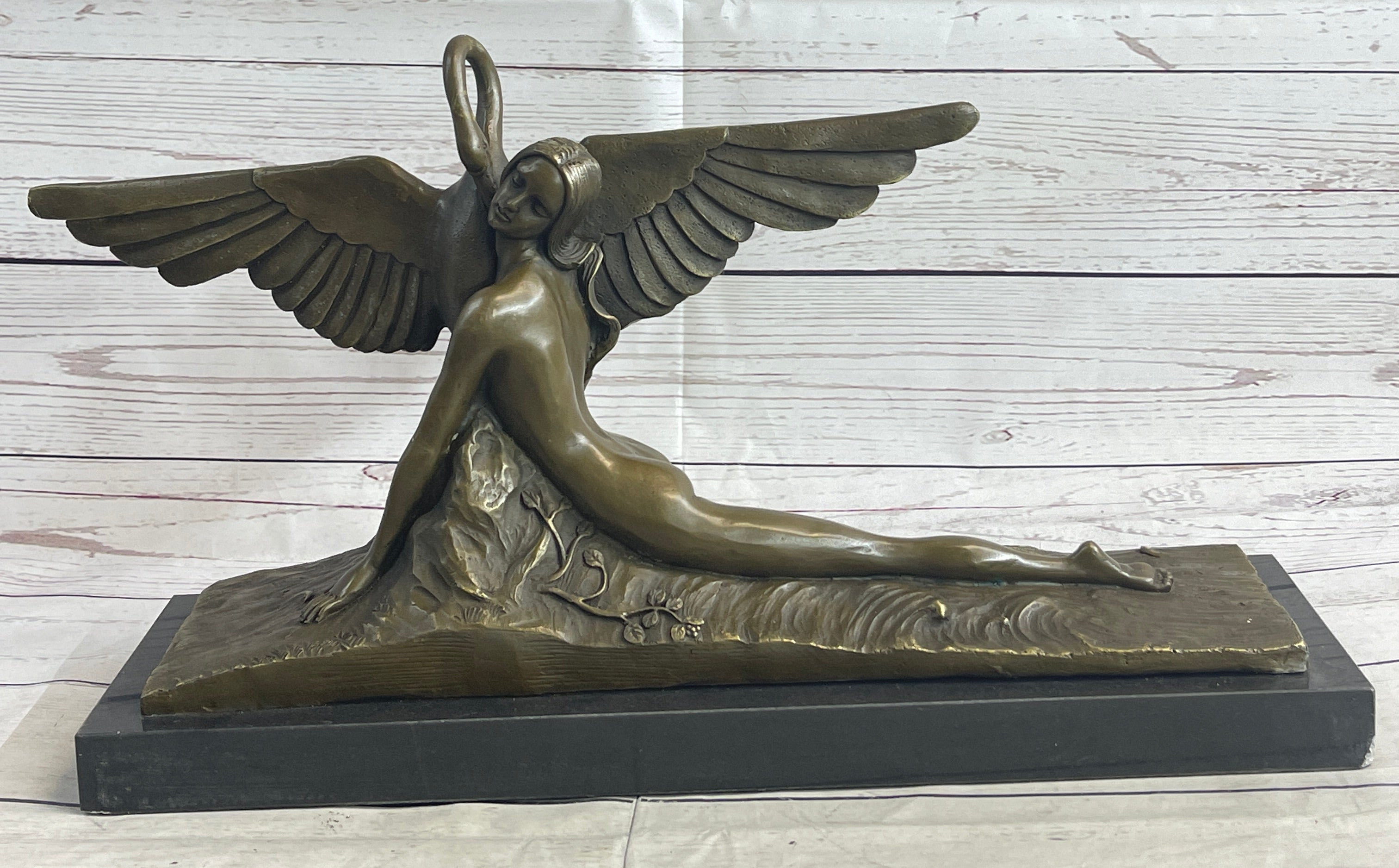 GENNARELLI LEDA AND SWAN MYTHOLOGY NUDE BRONZE SCULPTURE STATUE MYTHICAL GREEK