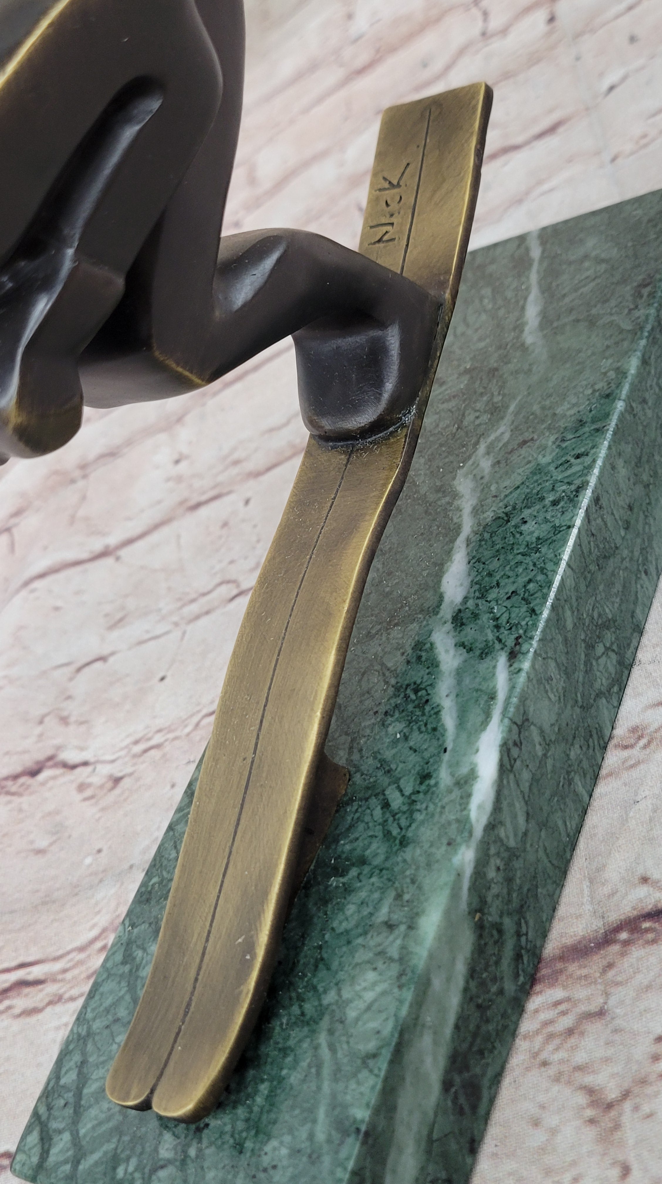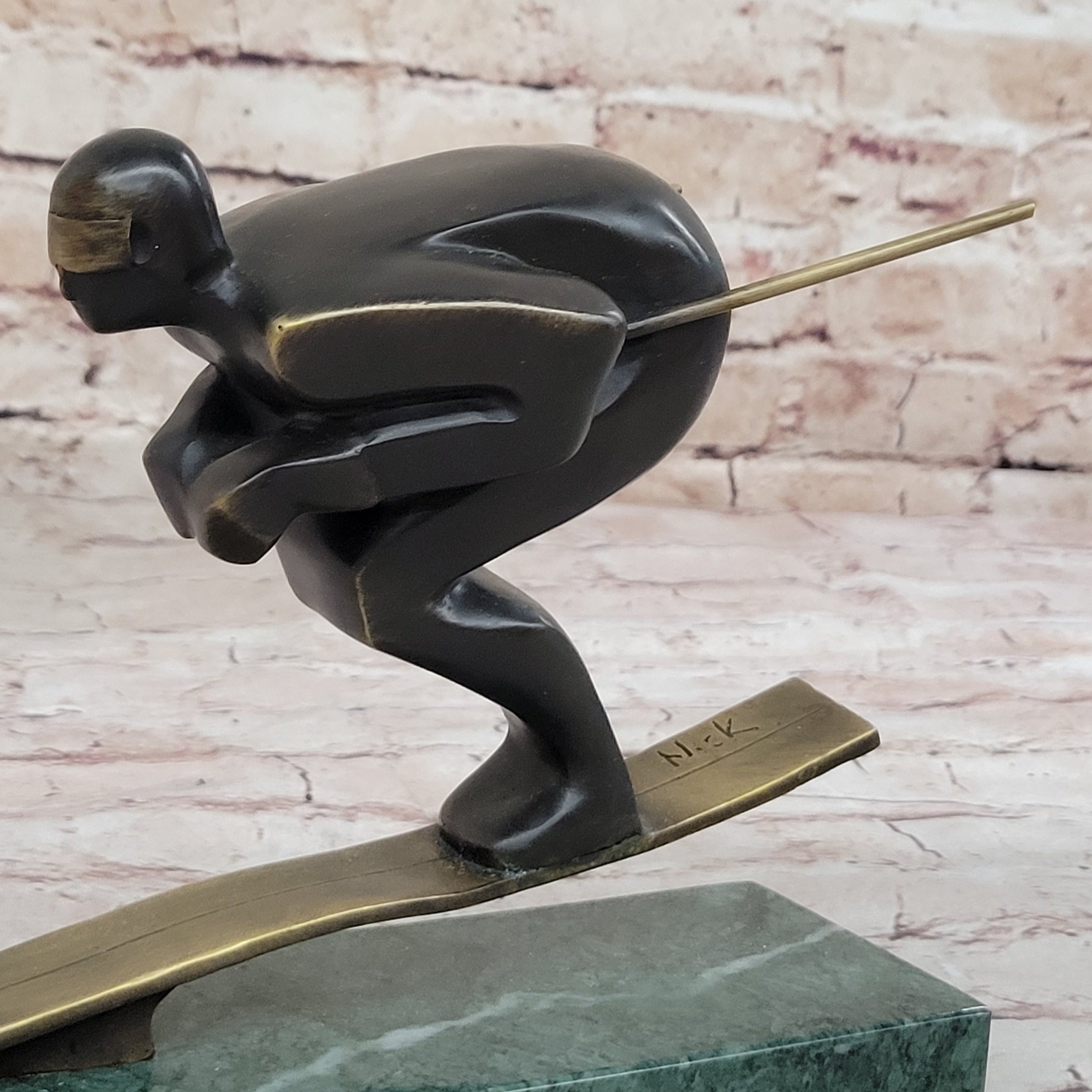Genuine Bronze Sport Trophy Mid Century Ski Skiing by Mario Nick Signed Original