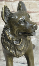 German Shepherd Puppy Dog Bronze Figurine Figure Sculpture Collectible 6" x 9"