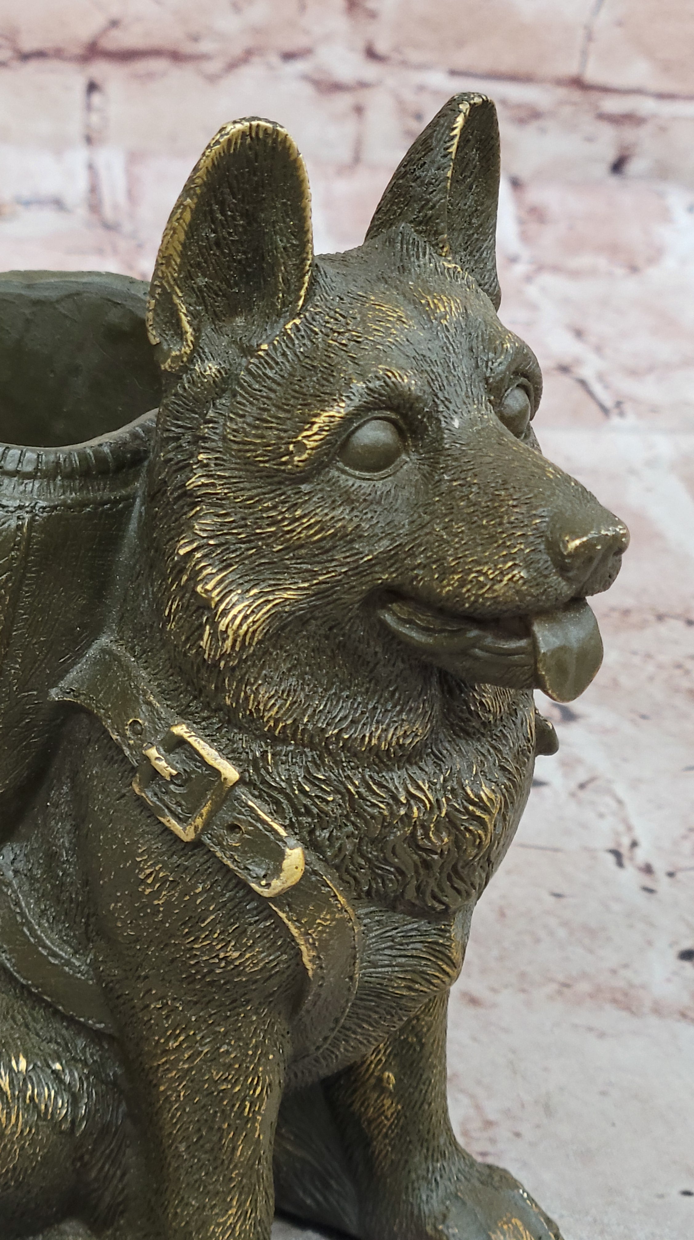 This unique bronze sculpture by M. Lopez, also known as Milo, captures the noble presence of a German Shepherd in a functional and artistic form. Skillfully posed to incorporate a pen or brush holder, the figure serves both as a decorative piece and a practical desk accessory. The loyal and alert expression of the dog embodies the breed’s well-known qualities of intelligence and vigilance.