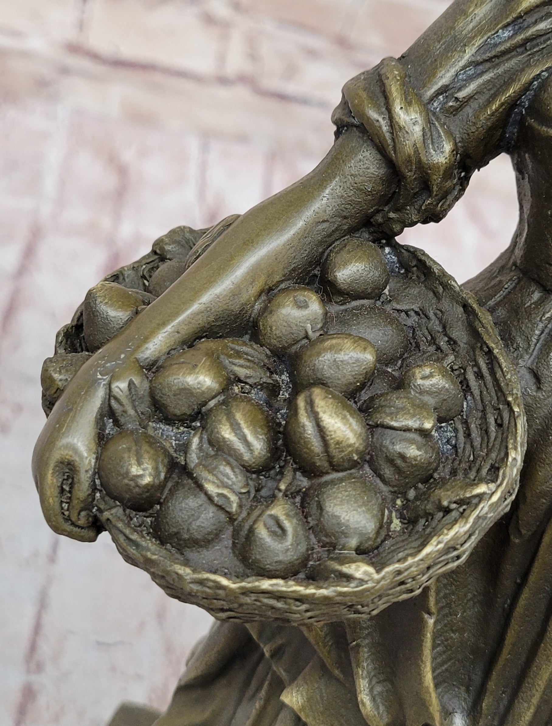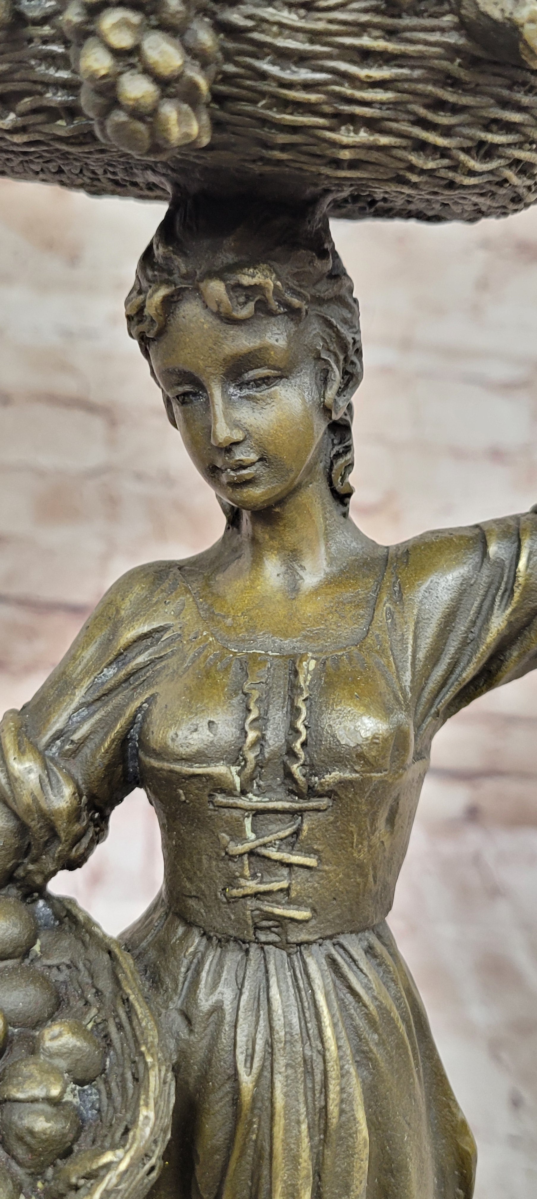 Girl carrying Basket of Fruit - Hot Cast Bronze Original Sculpture on Marble Base