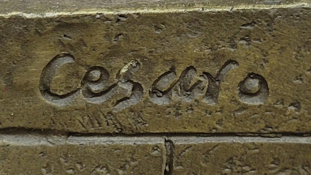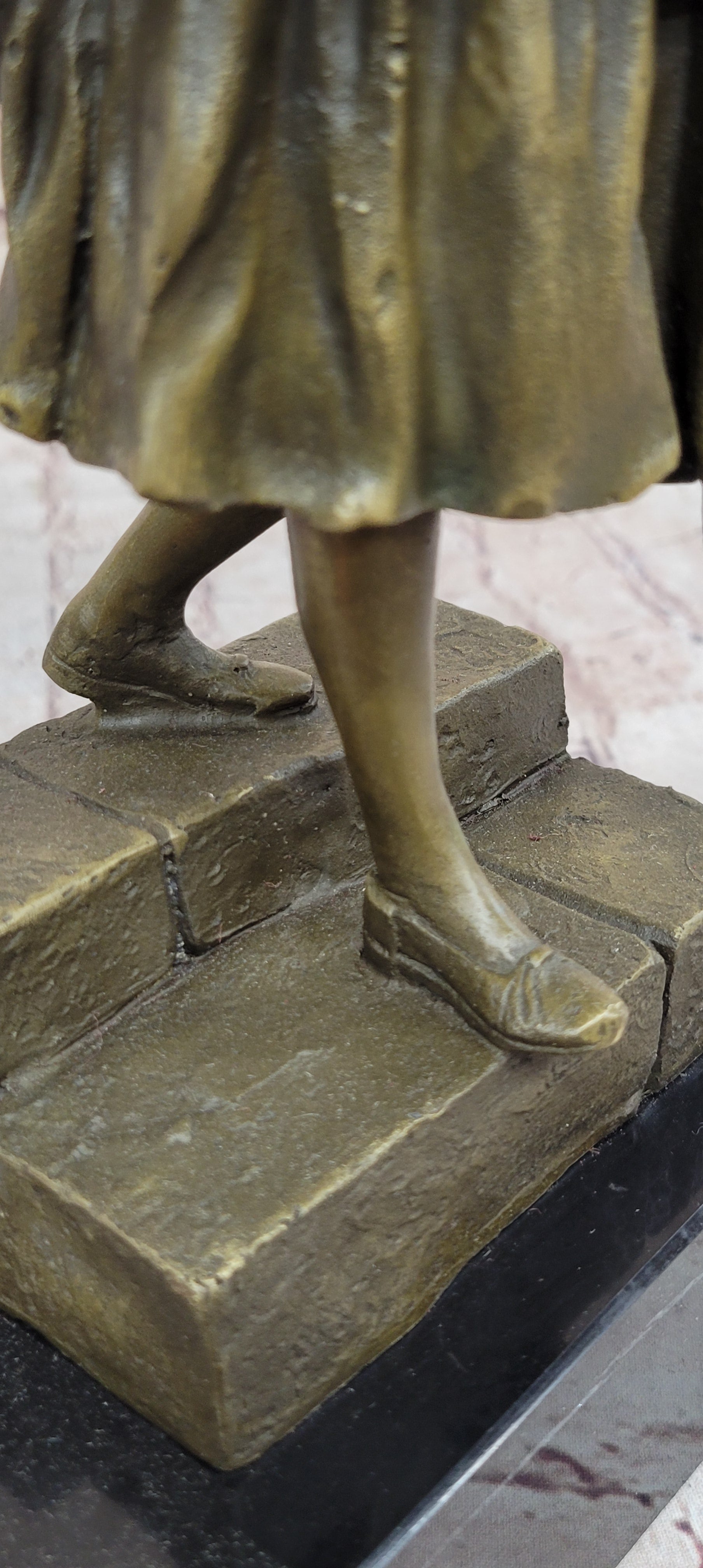 With its genuine bronze composition and unique design, the Maiden With Fruit Basket sculpture is a timeless addition to any art collection or home decor. Signed by the artist, Cesaro, this original artwork is a testament to the enduring appeal and craftsmanship of bronze sculptures, making it a cherished and valuable piece for art enthusiasts and collectors alike.Bronze Dimensions with Marble Base: Height 15.5" X Width 6"