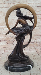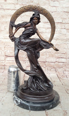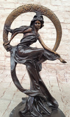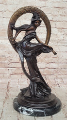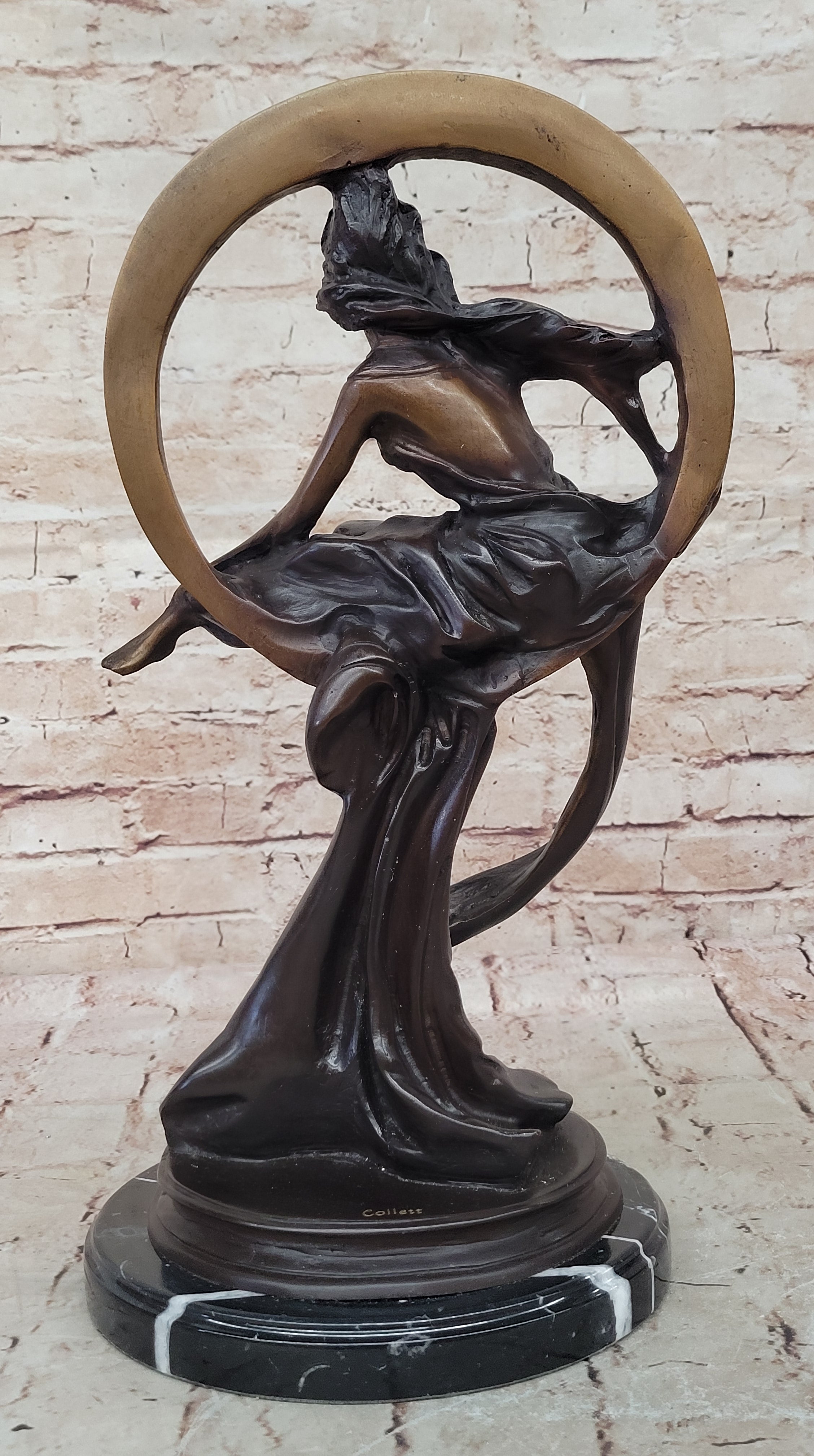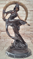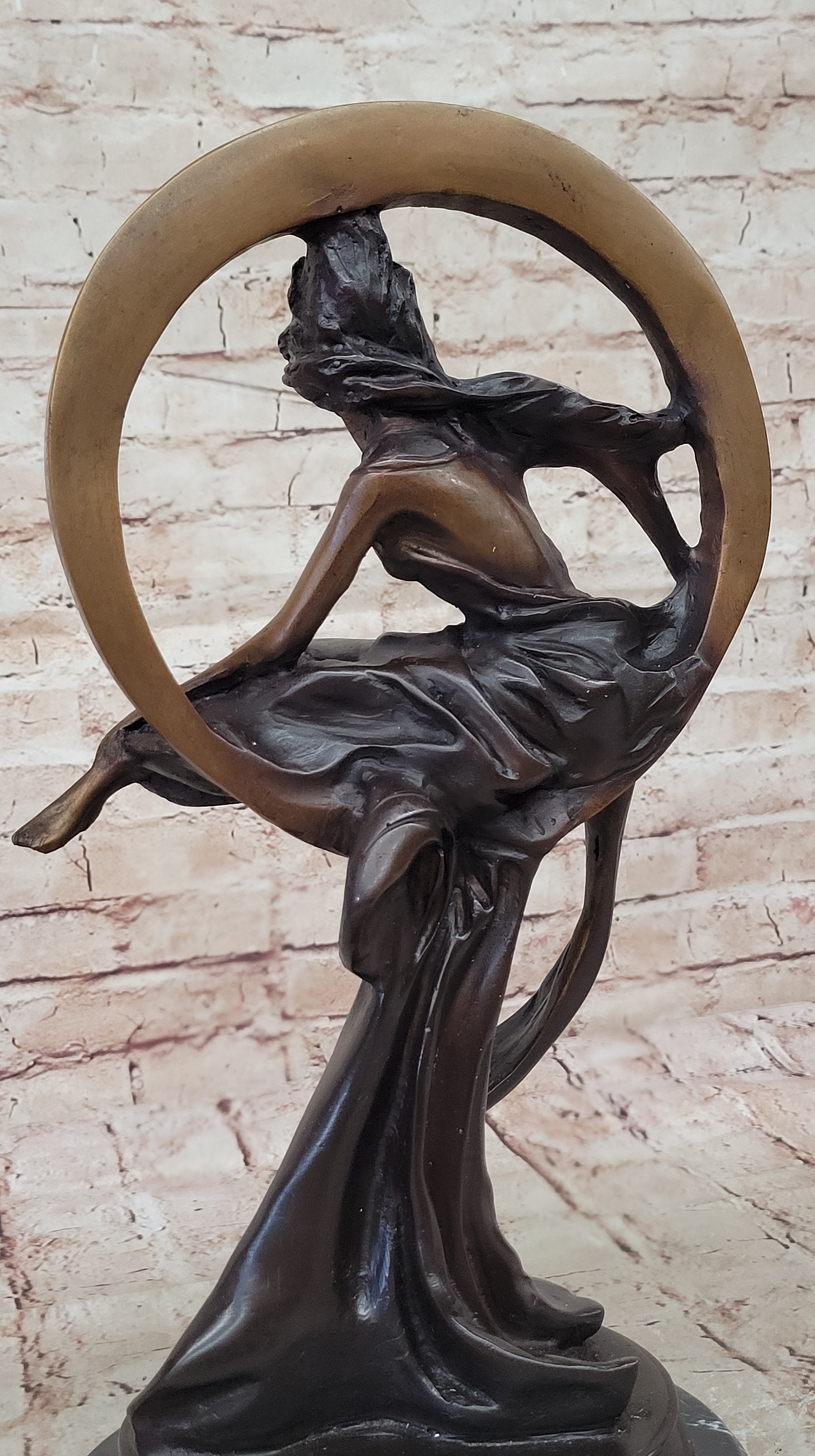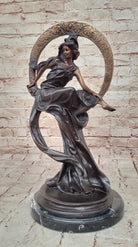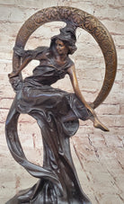 Girl Sitting on the Moon Bronze Statue Sculpture Art Deco Nouveau 17" x 10"
