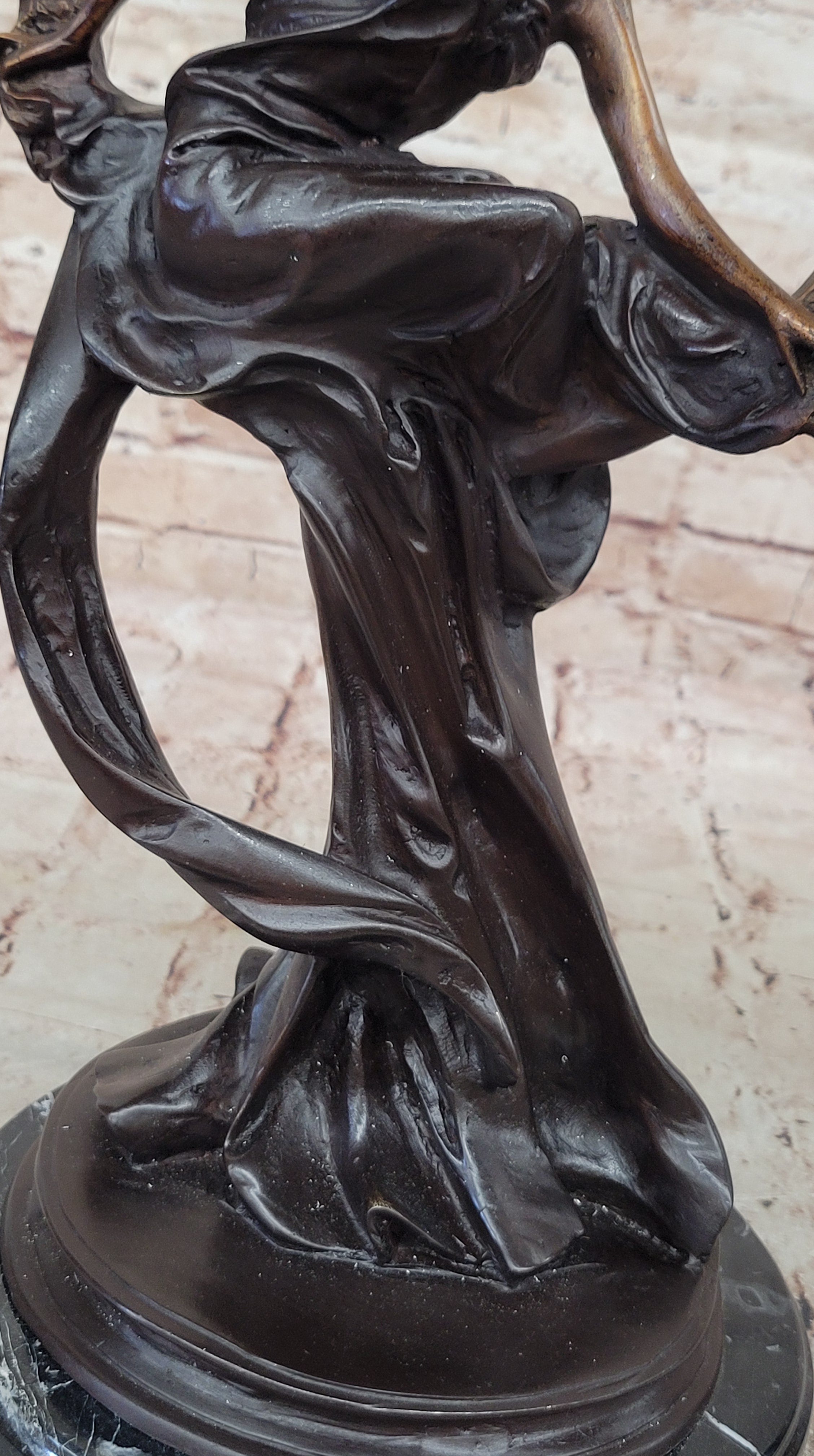 This captivating bronze sculpture of the "Dream Goddess" serves as a powerful symbol of peace, love, and transcendence, inviting viewers to immerse themselves in the beauty and wonder of the divine. With her mesmerizing presence and the intricate details of her surroundings, the sculpture stands as a testament to the timeless allure and enchantment of the spiritual realm, making it a cherished addition to any art collection or space dedicated to fostering a sense of harmony and tranquility.Bronze Dimensions with Marble Base: Height 17" X Width 10"