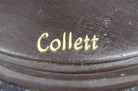 The "Dream Goddess" is a masterpiece of artistry and craftsmanship, crafted using the esteemed "Lost Wax Method" to ensure the preservation of every delicate detail. The stunning two-toned brown patina finish adds depth and dimension to the sculpture, enhancing its visual appeal and adding a timeless quality to its overall design. The intricate detailing of the sculpture, particularly the elaborate ring in which the goddess sits, reflects the artist's meticulous attention to creating a truly captivating and evocative piece. The signature of the esteemed artist Collett serves as a testament to the authenticity and quality of the sculpture, further enhancing its value and allure for collectors and art enthusiasts.