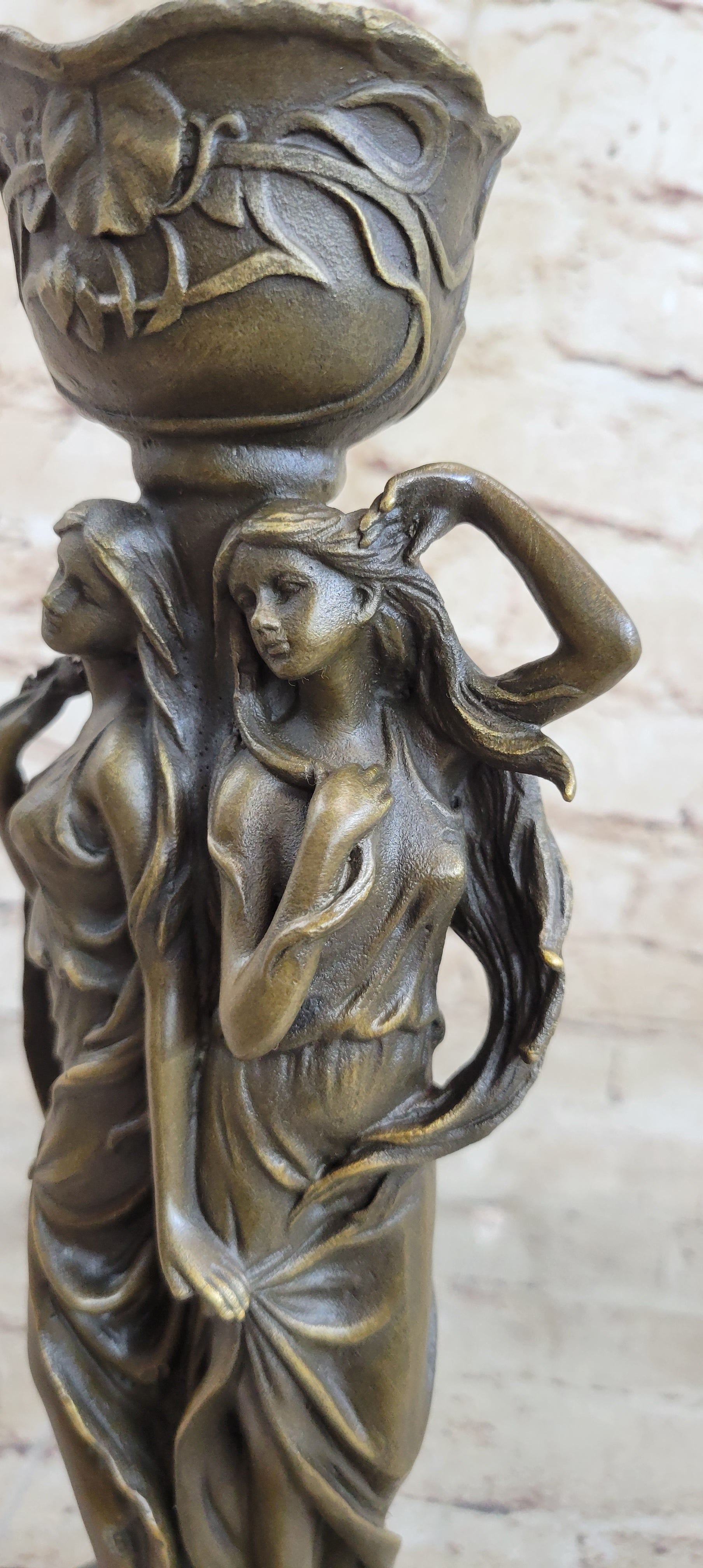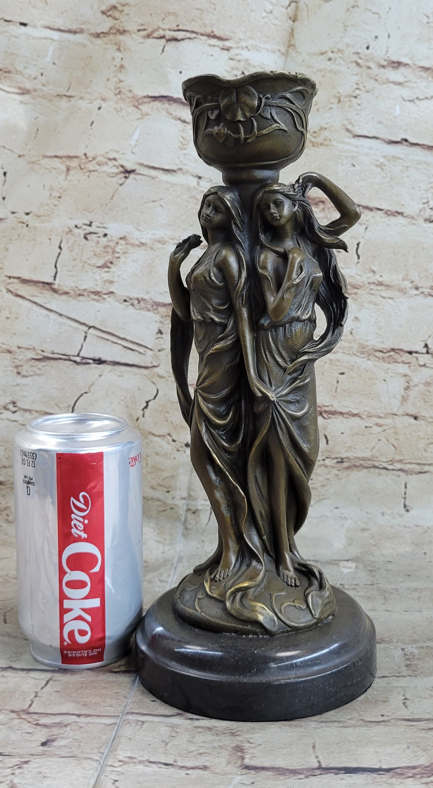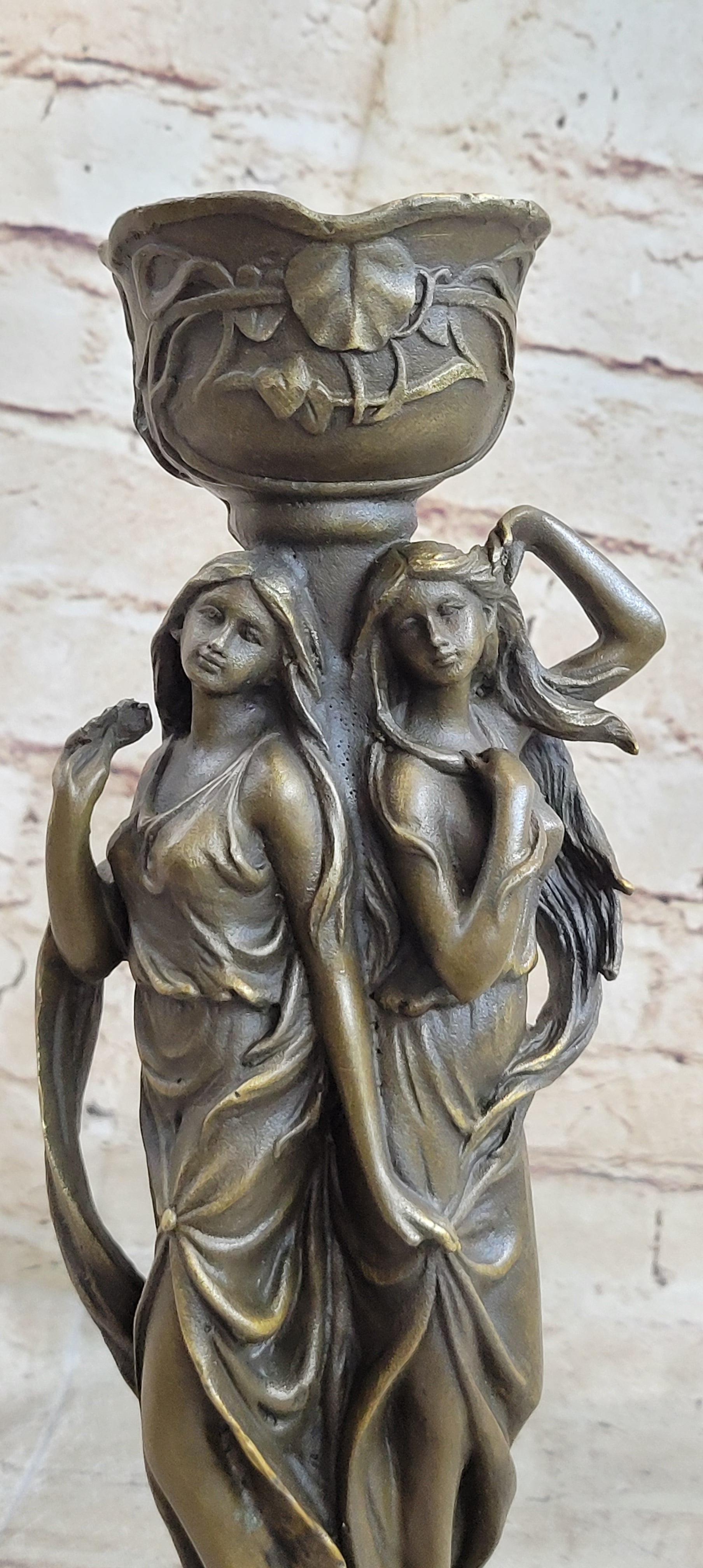 Gorgeous Art Deco Style Twin Sister Candle Holder Bronze Sculpture by Kassin