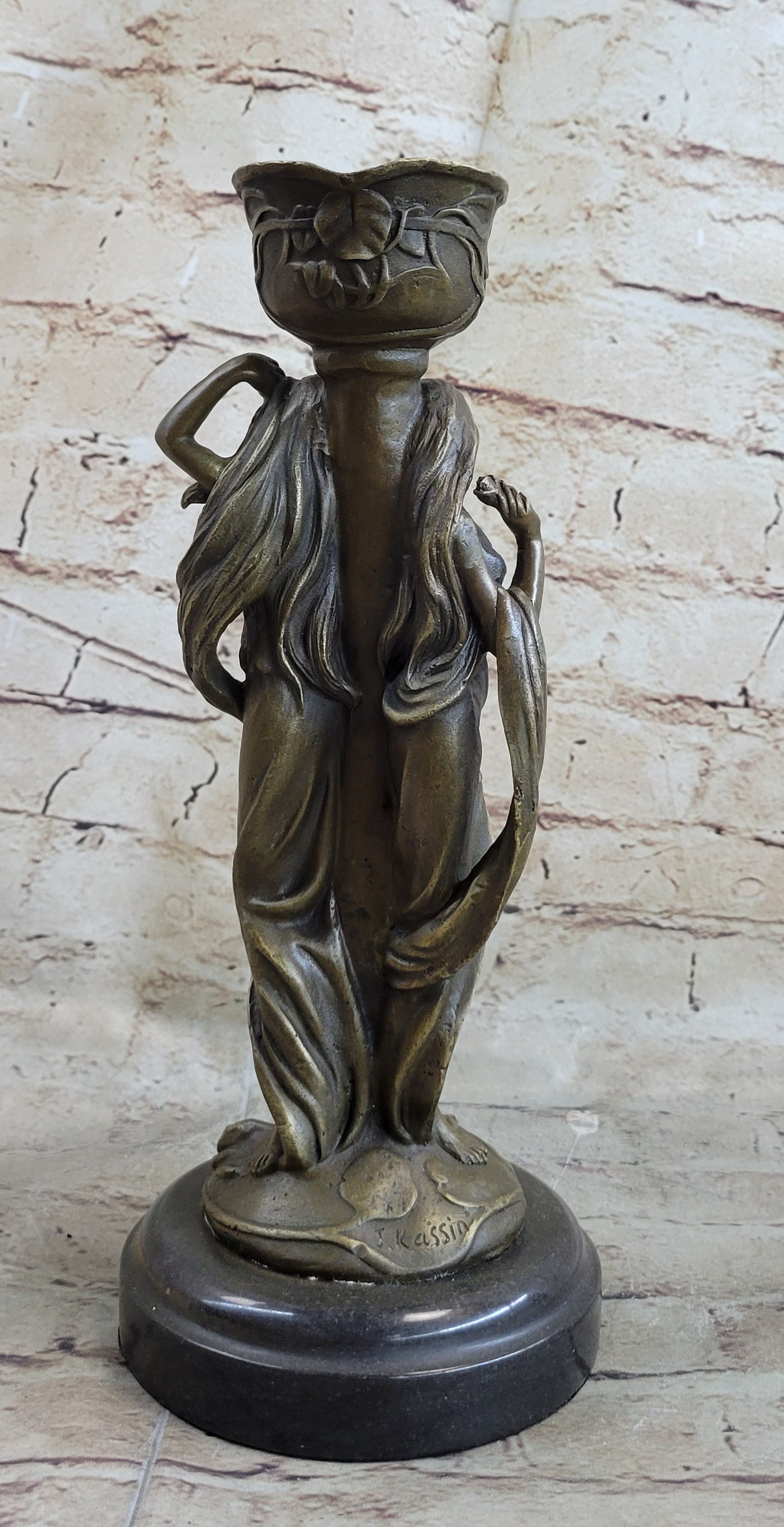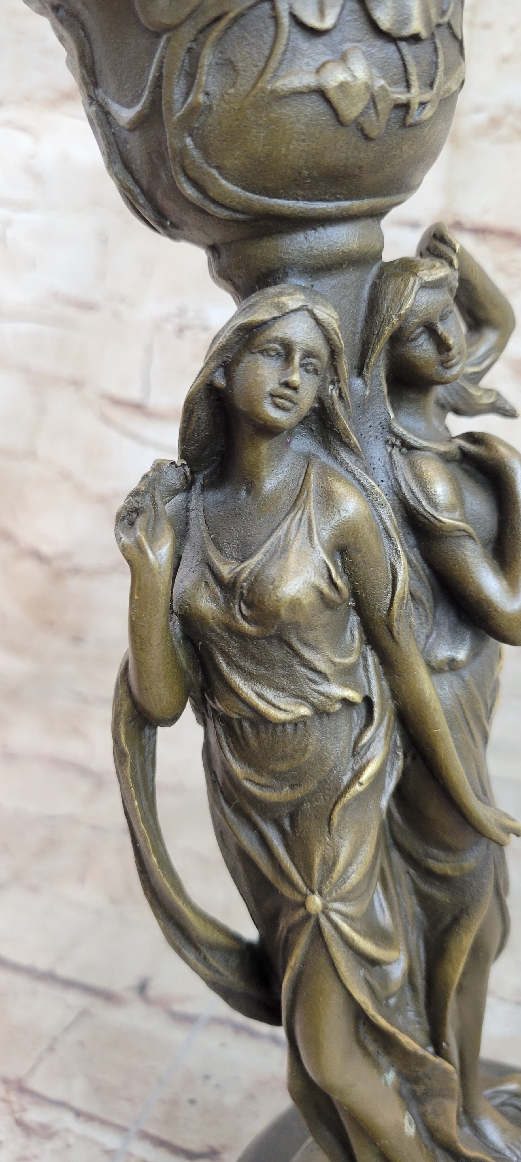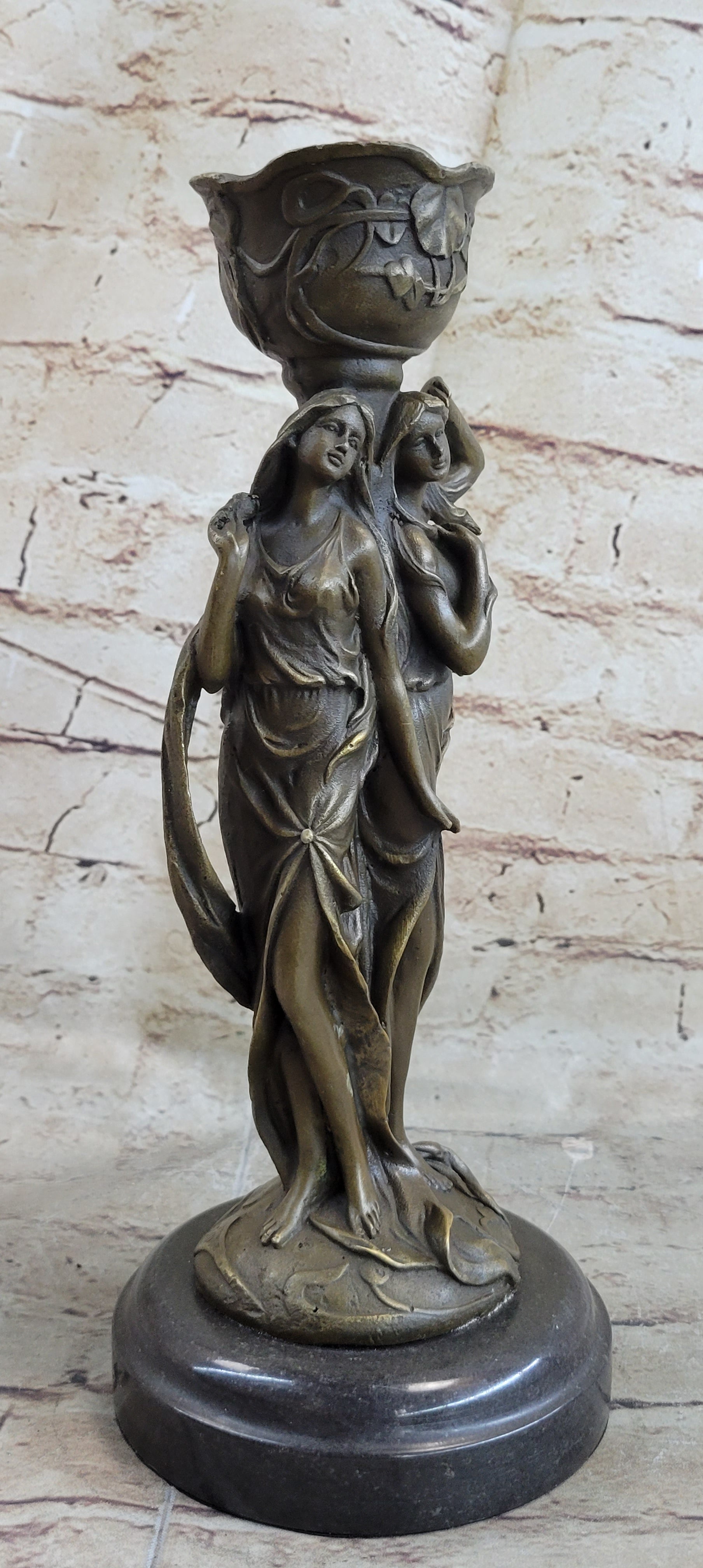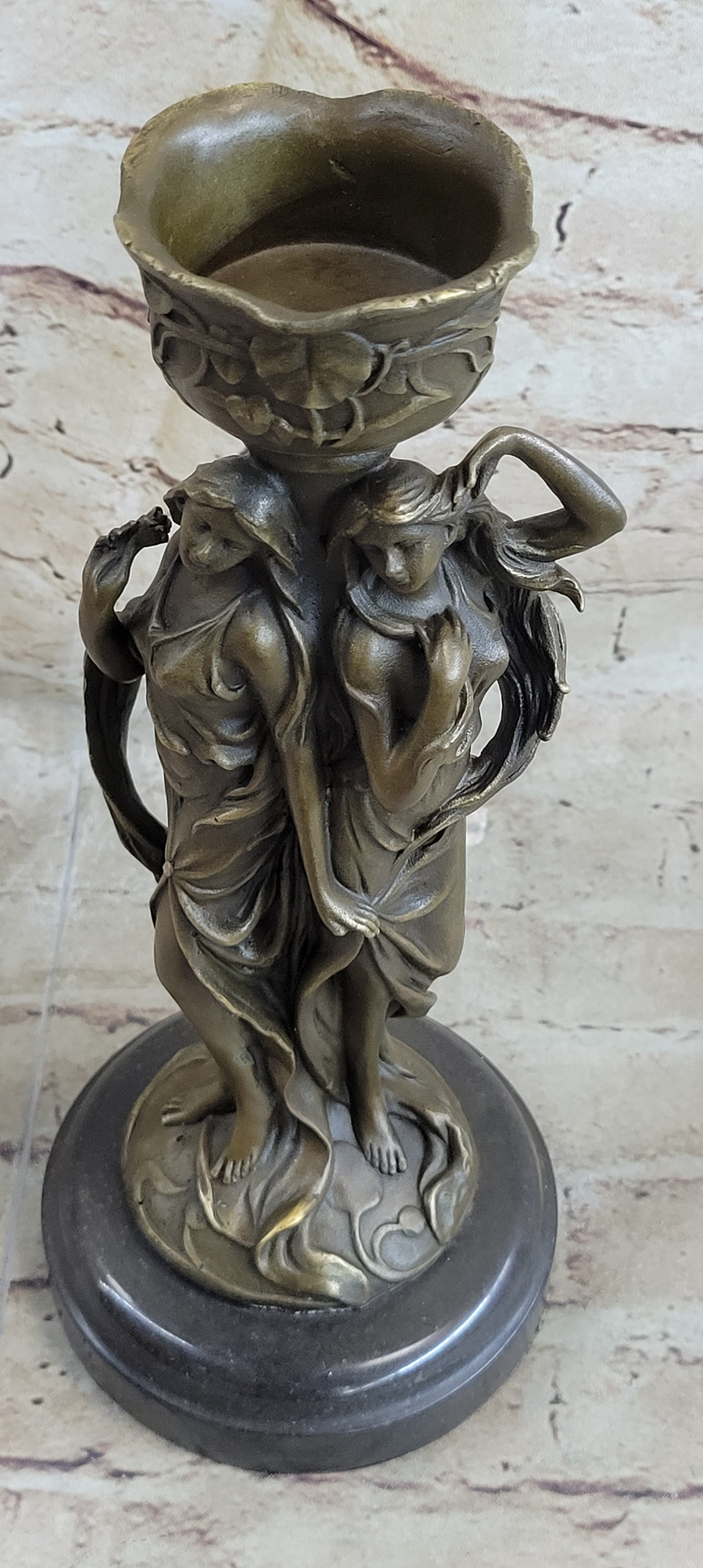 Gorgeous Art Deco Style Twin Sister Candle Holder Bronze Sculpture by Kassin