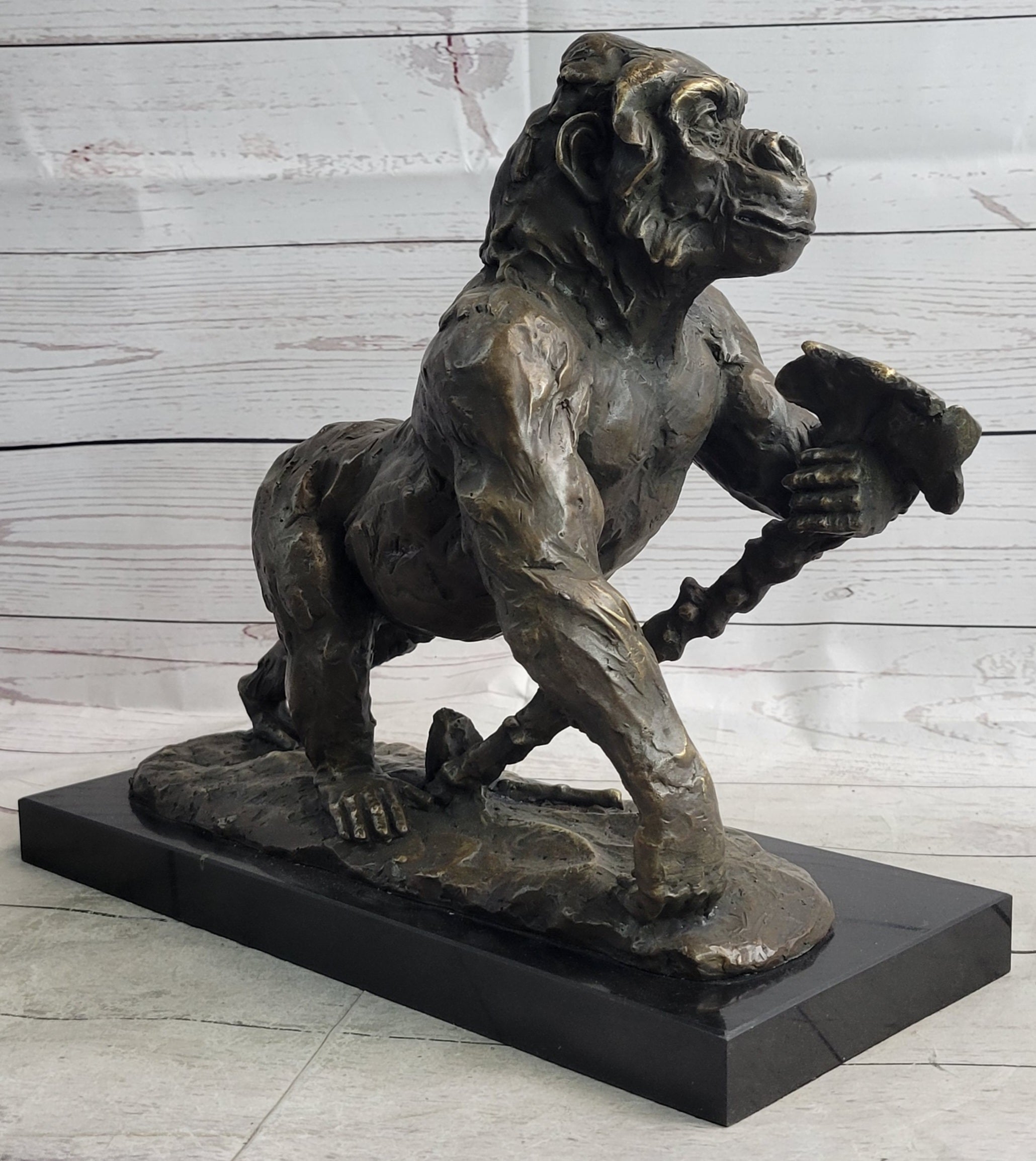 Gorilla Great Ape Bronze Metal Statue Sculpture Figure Decor Signed on Marble Base