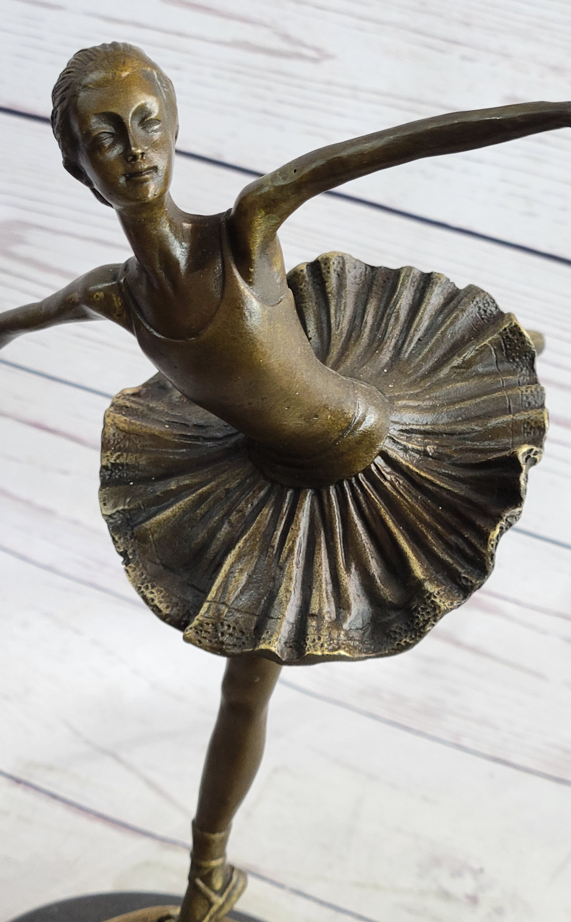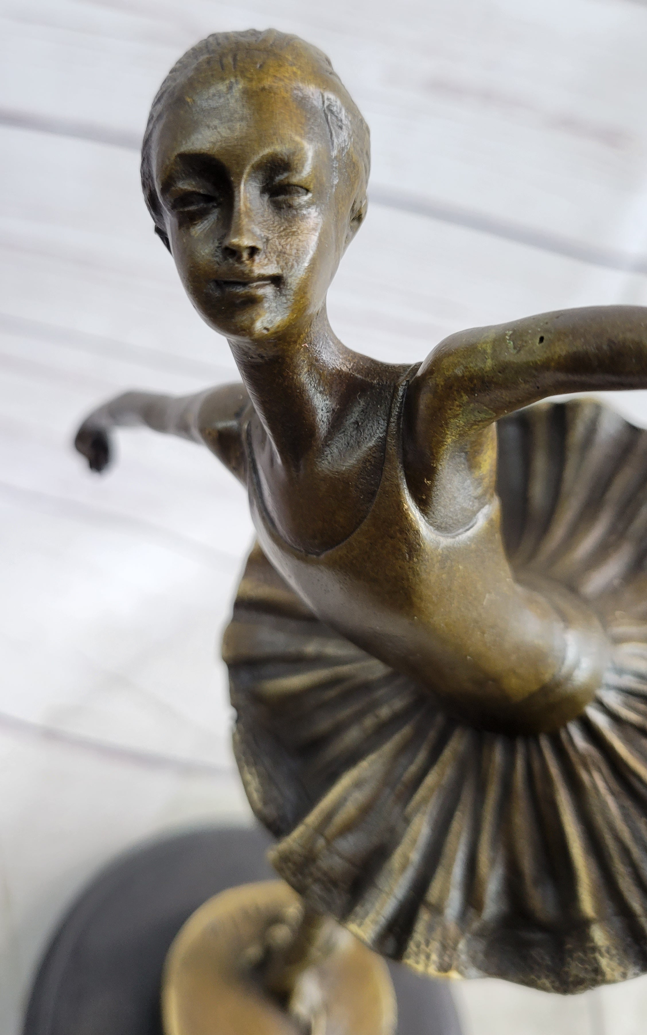 Graceful Ballerina Ballet Dancer Bronze Sculpture Statue Figure on Marble Base