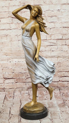 Graceful Bronze Woman in Flowing Dress – Wind Blown Figurine