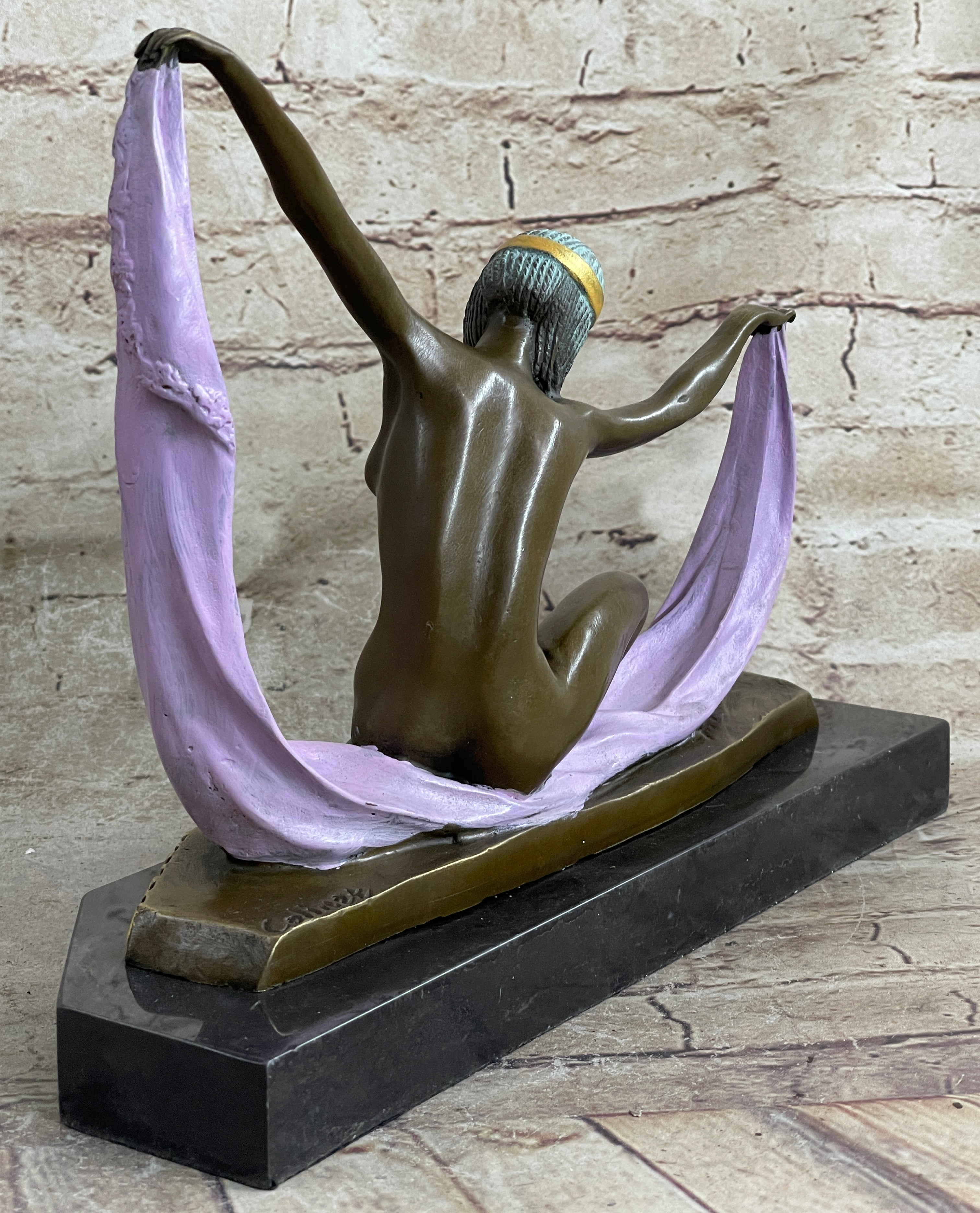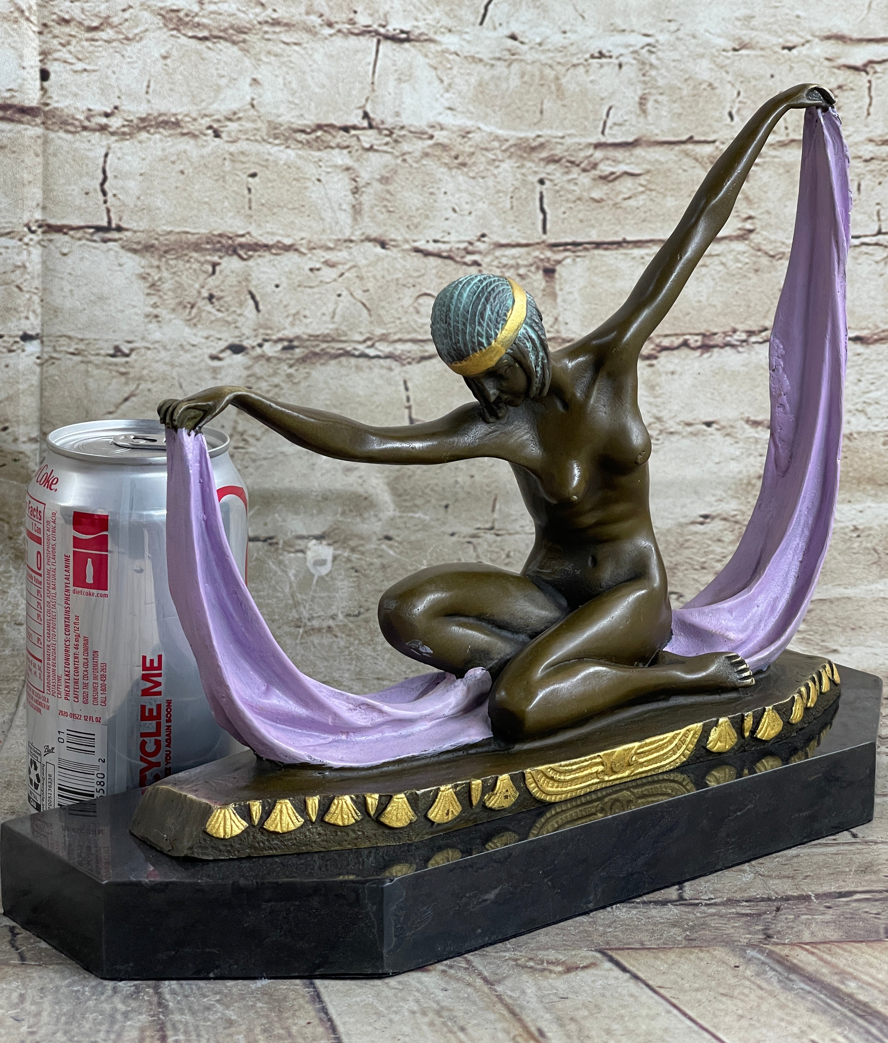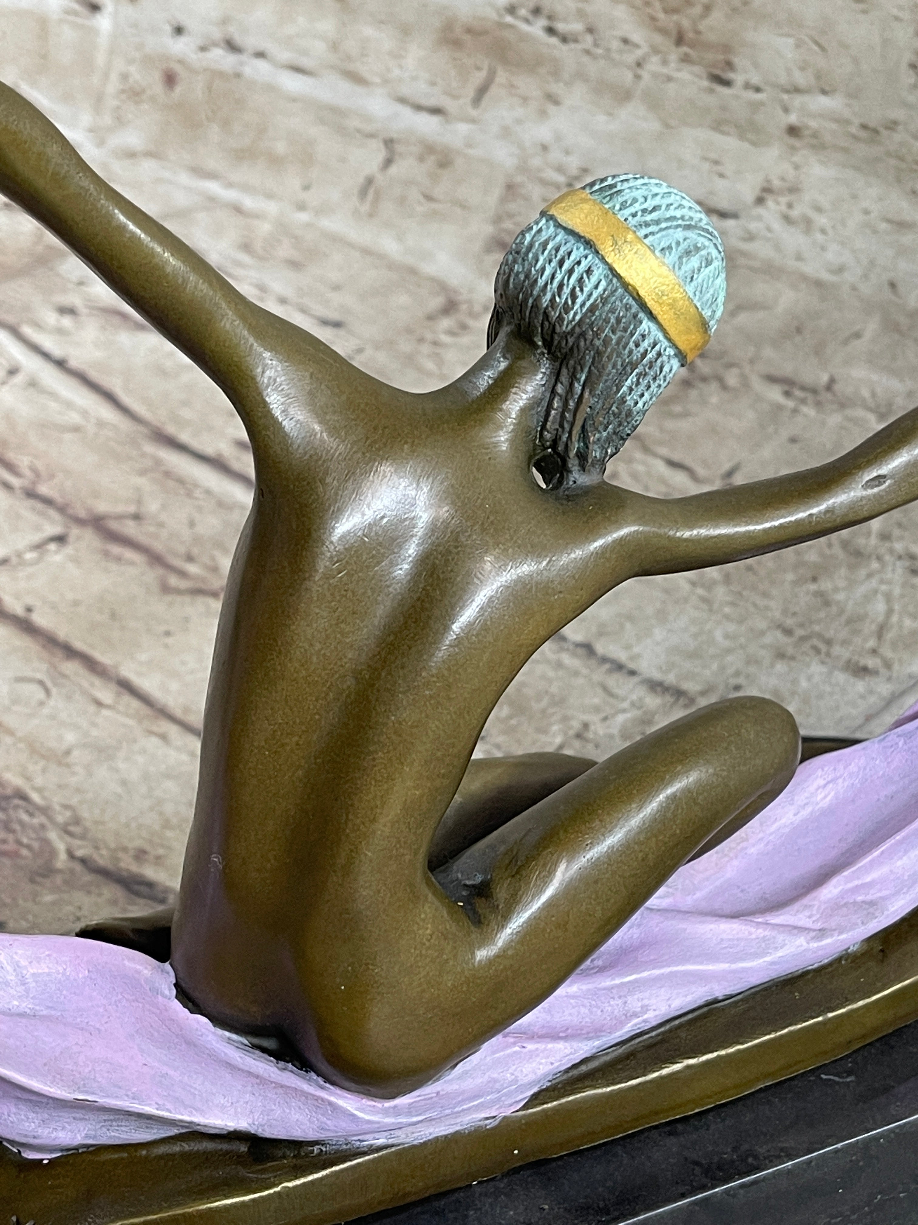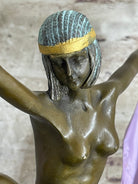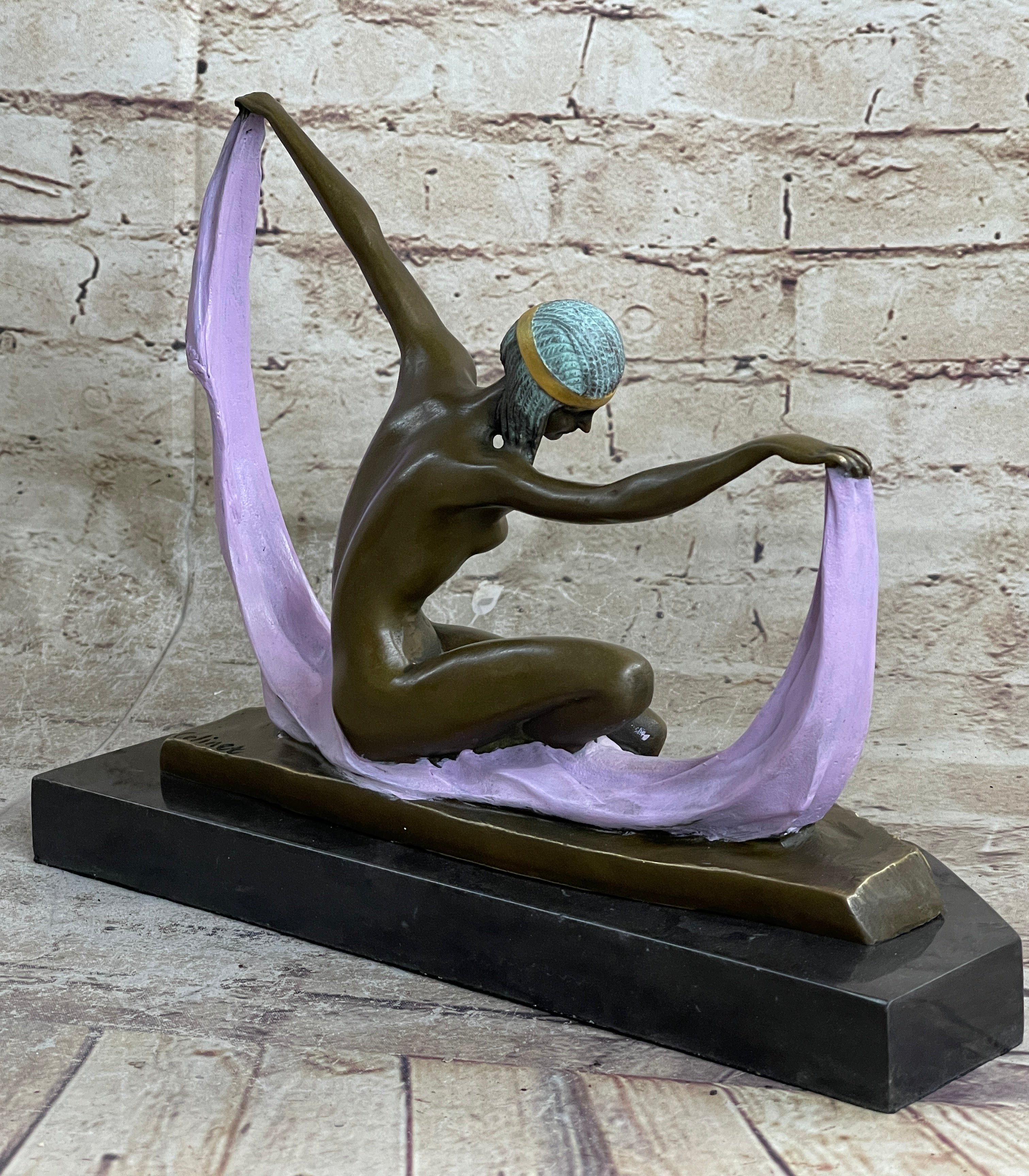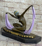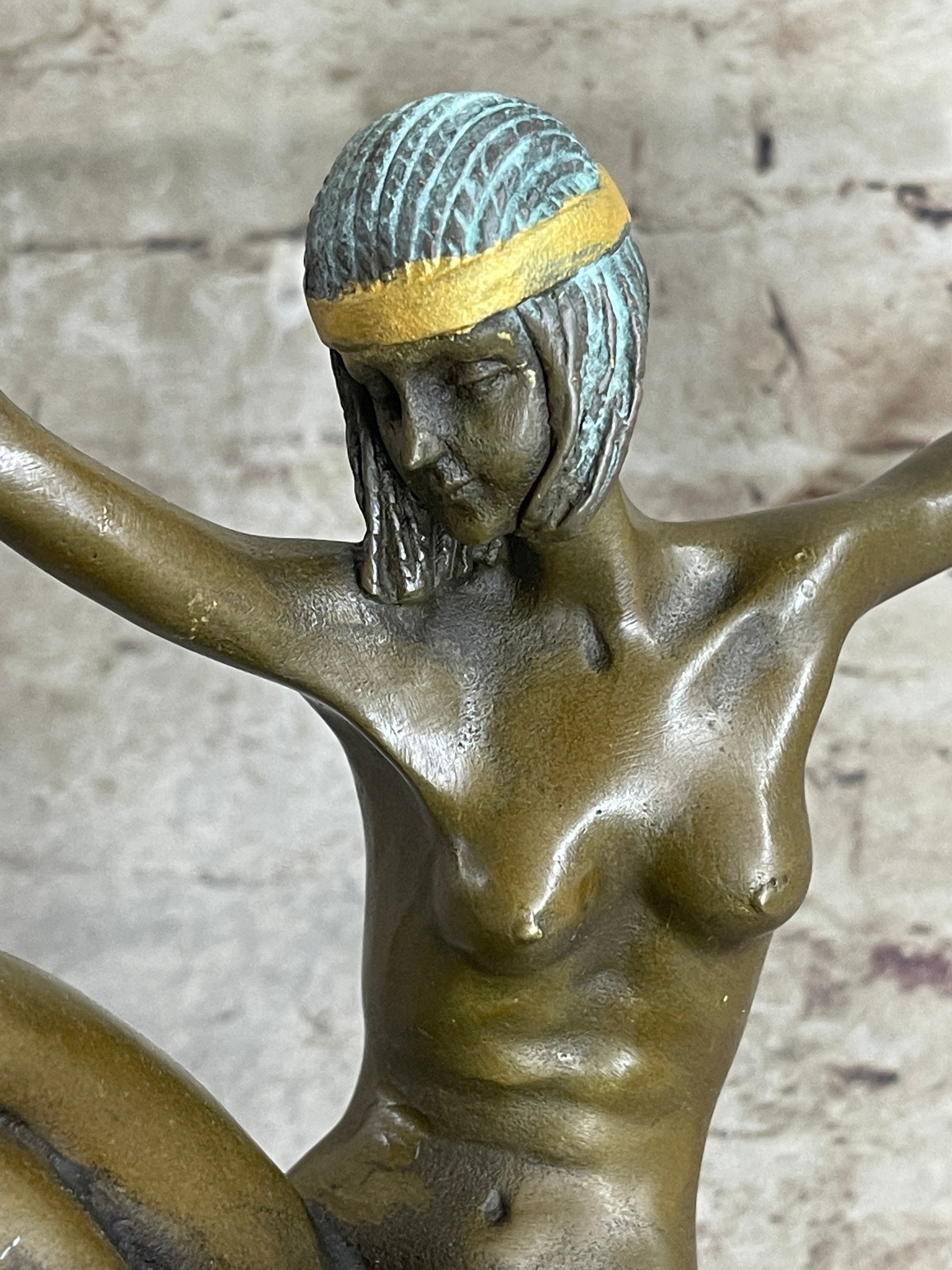 Graceful Nude Dancer By Mirval Bronze Marble Figurine Art Deco Hand Made Figure