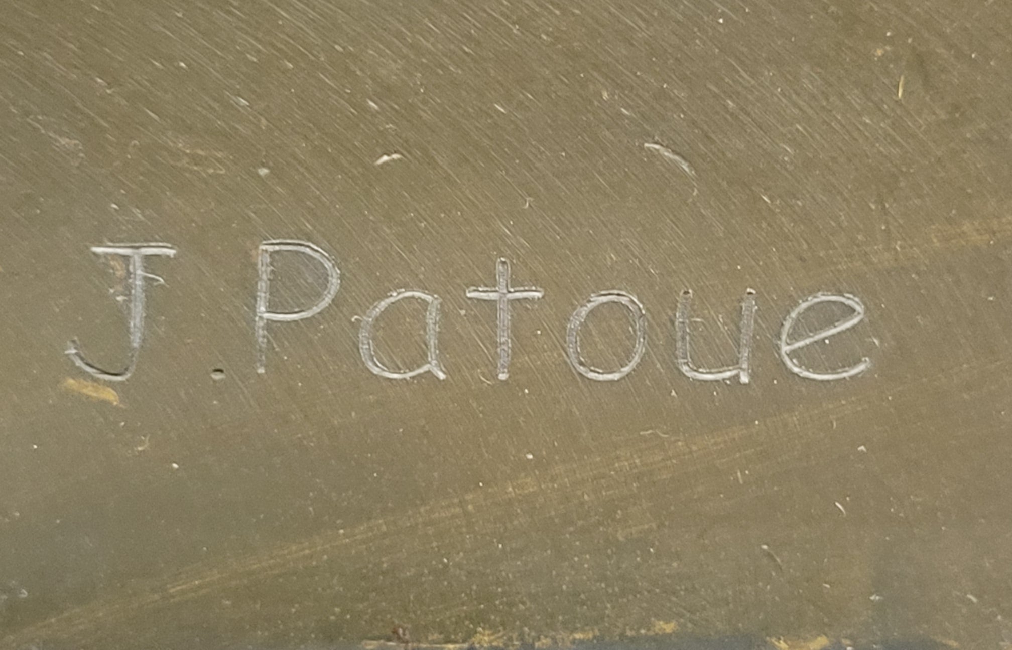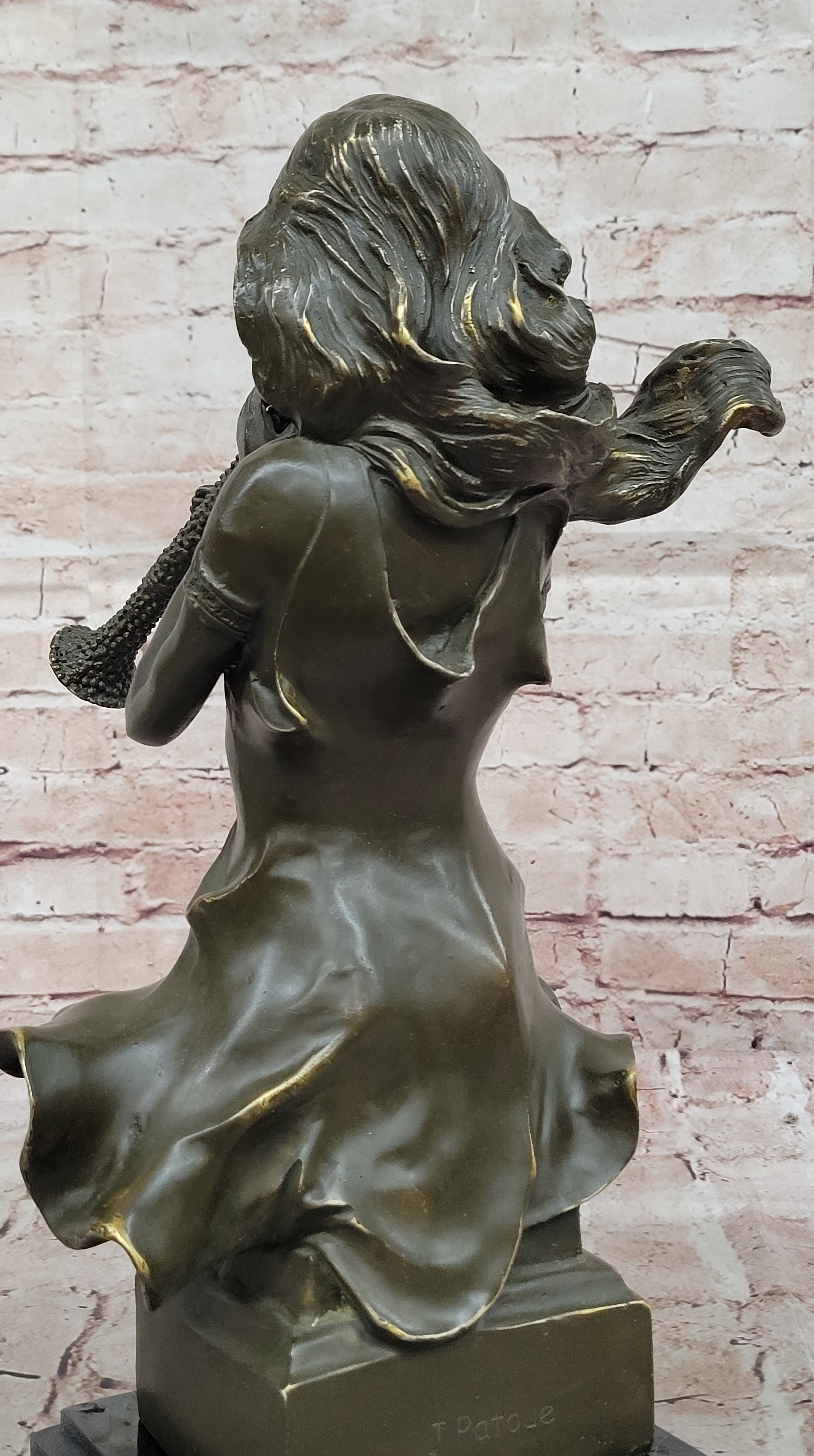 Mounted on a polished black marble base, this figurine offers both visual stability and elegance. As a signed work by Jean Patoue, it carries artistic and collectible value. Ideal for music lovers, art collectors, or anyone who appreciates refined figurative sculpture, this piece brings a touch of timeless beauty and cultured charm to any home, studio, or gallery setting.Bronze Dimensions with Marble Base: Height 15.5" X Width 9"