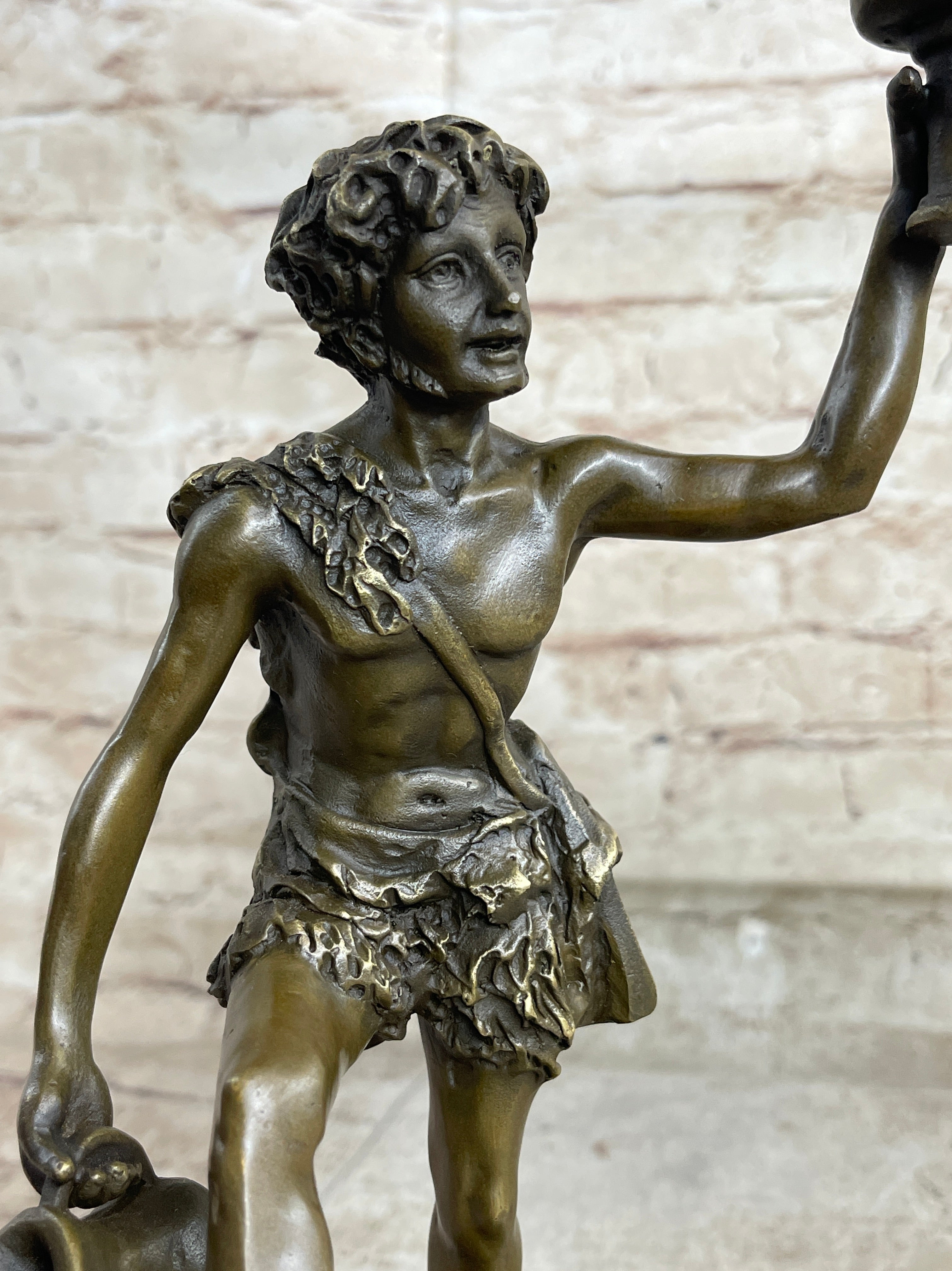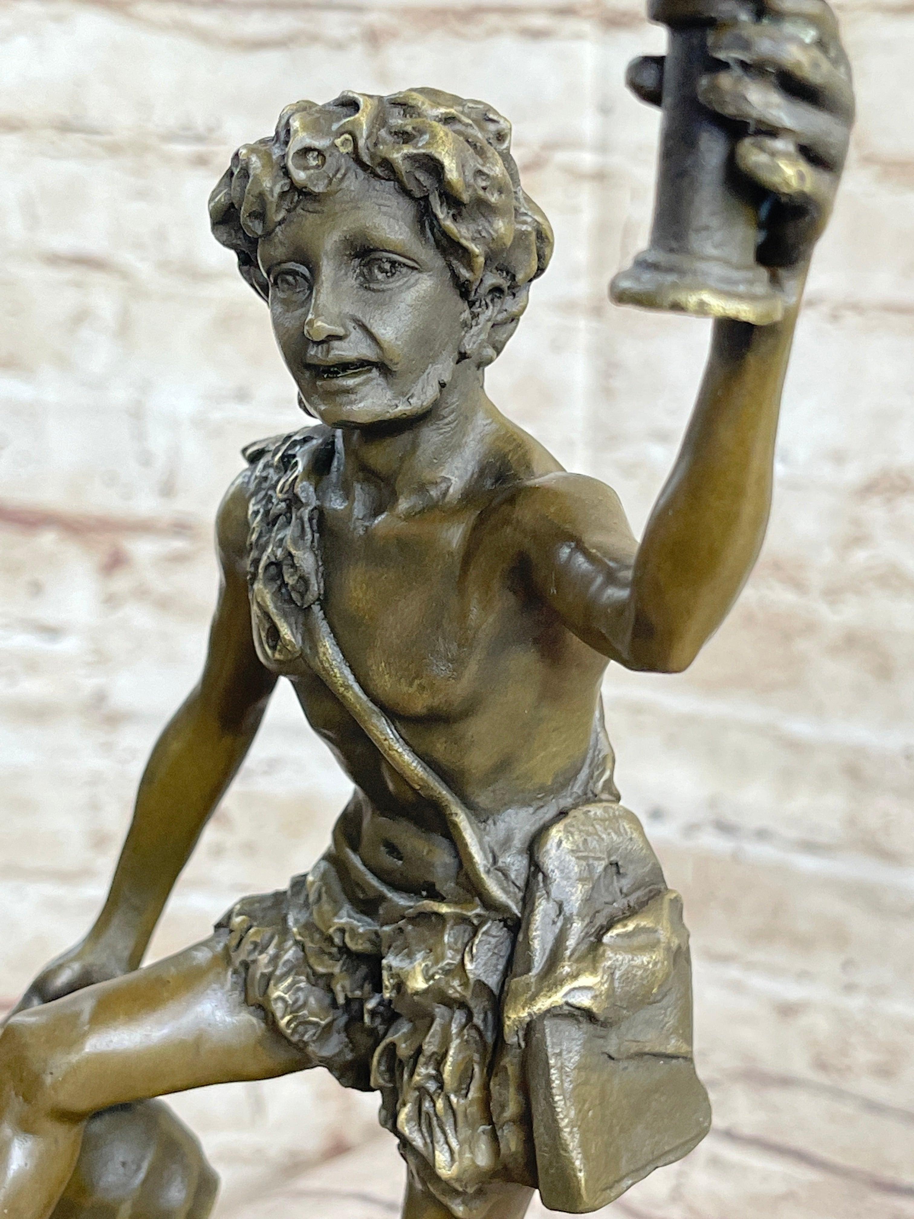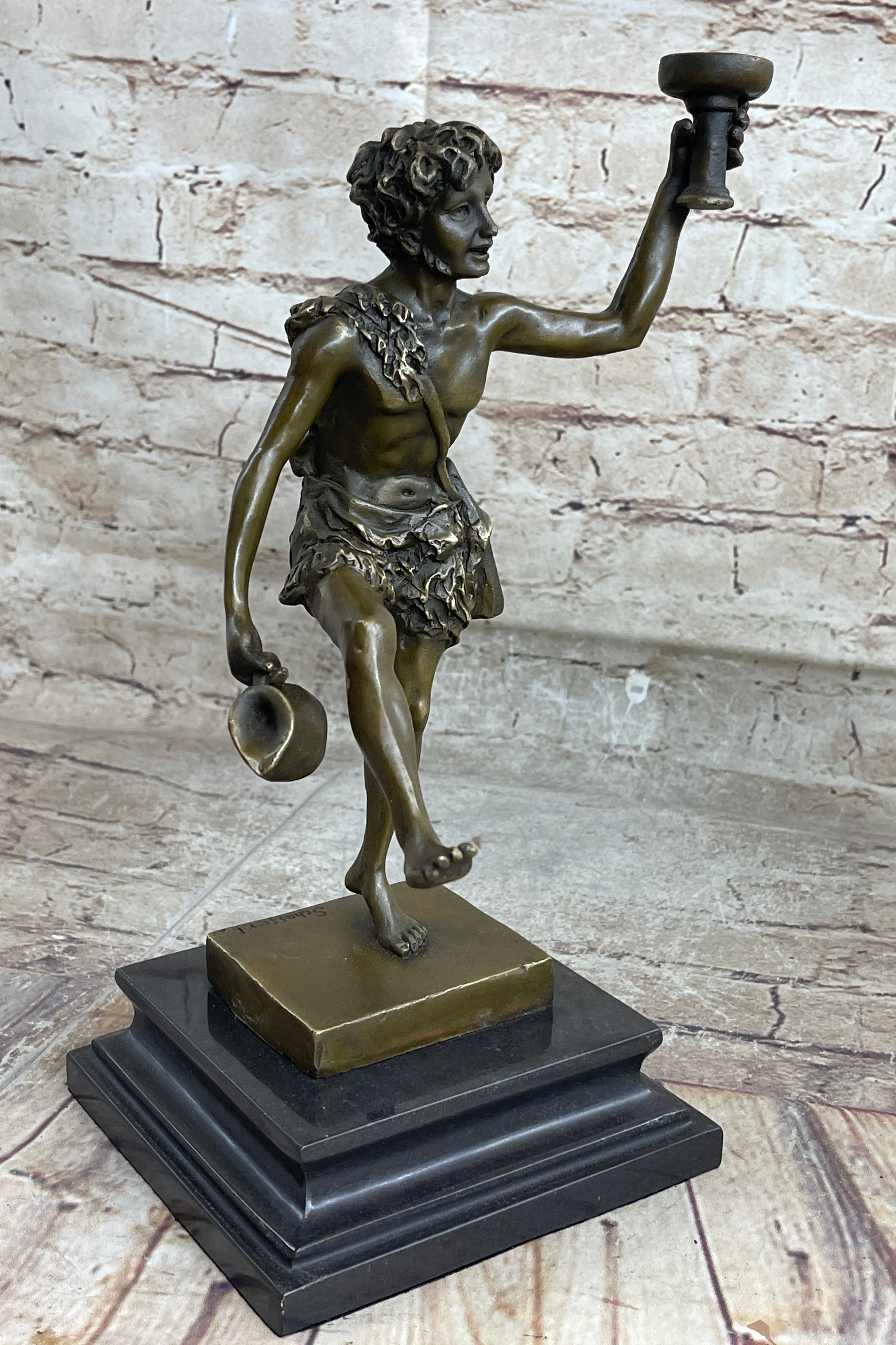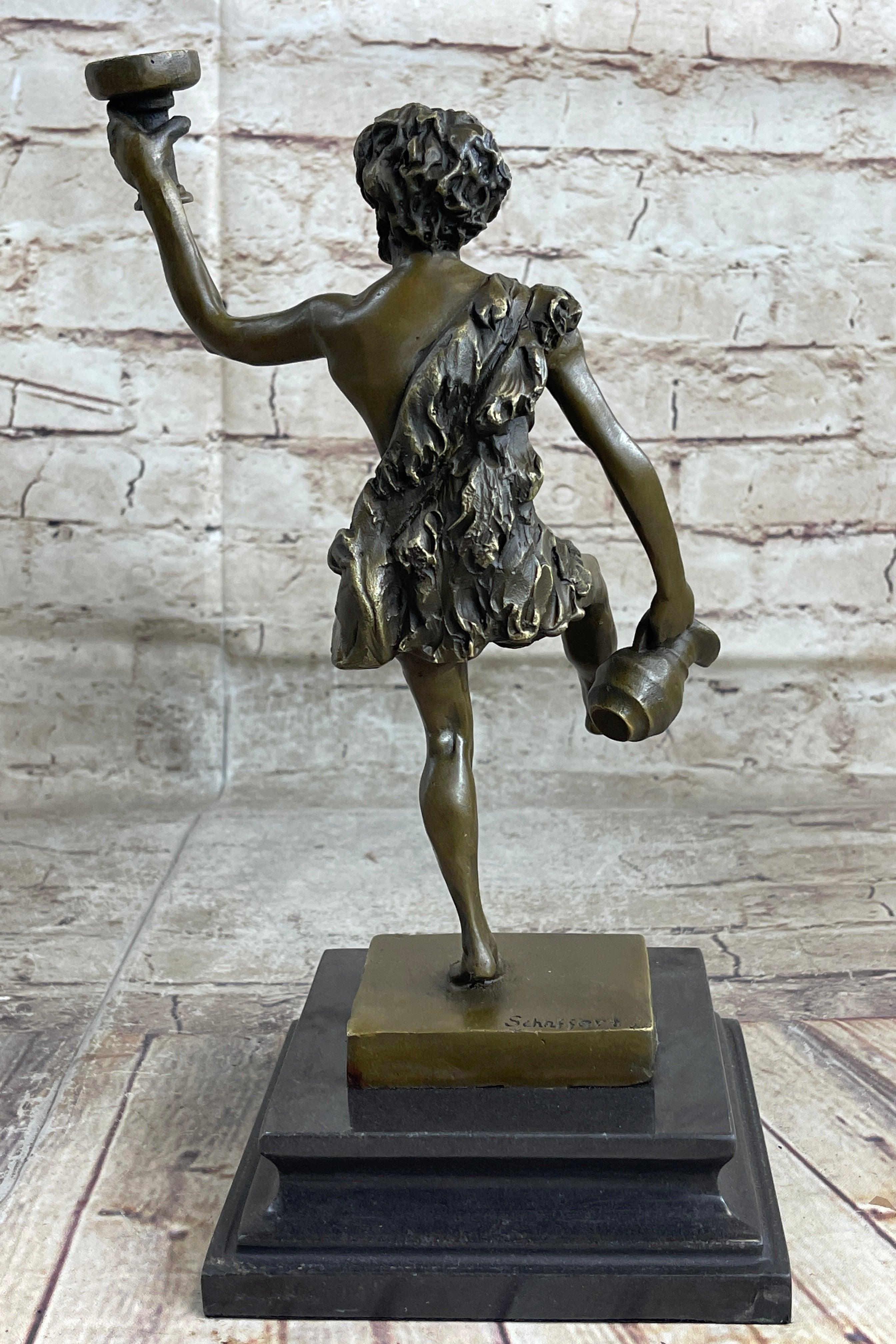 Greek Roman God of Wine Dionysus Bacchus Bronze Sculpture Statue on Marble Base