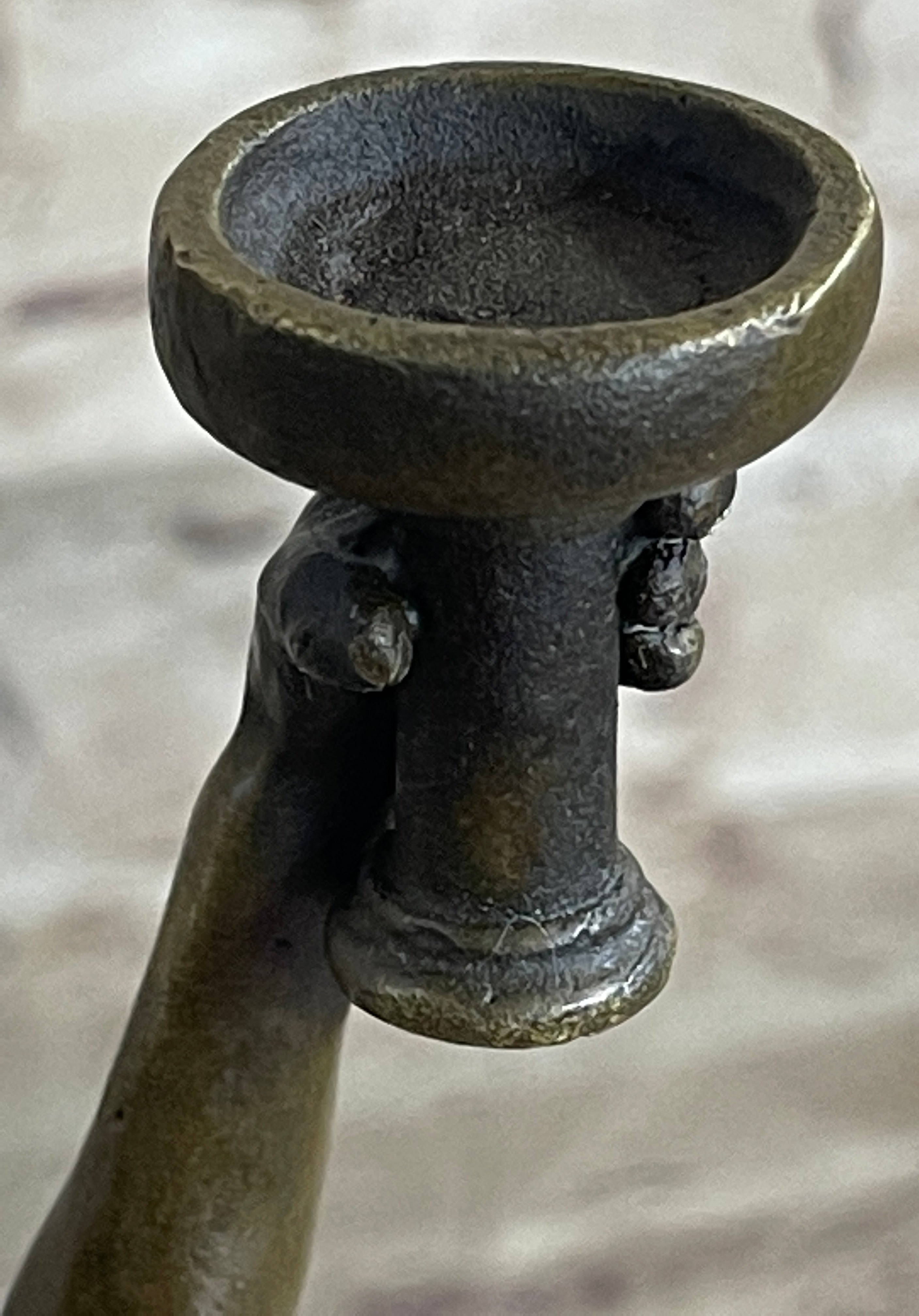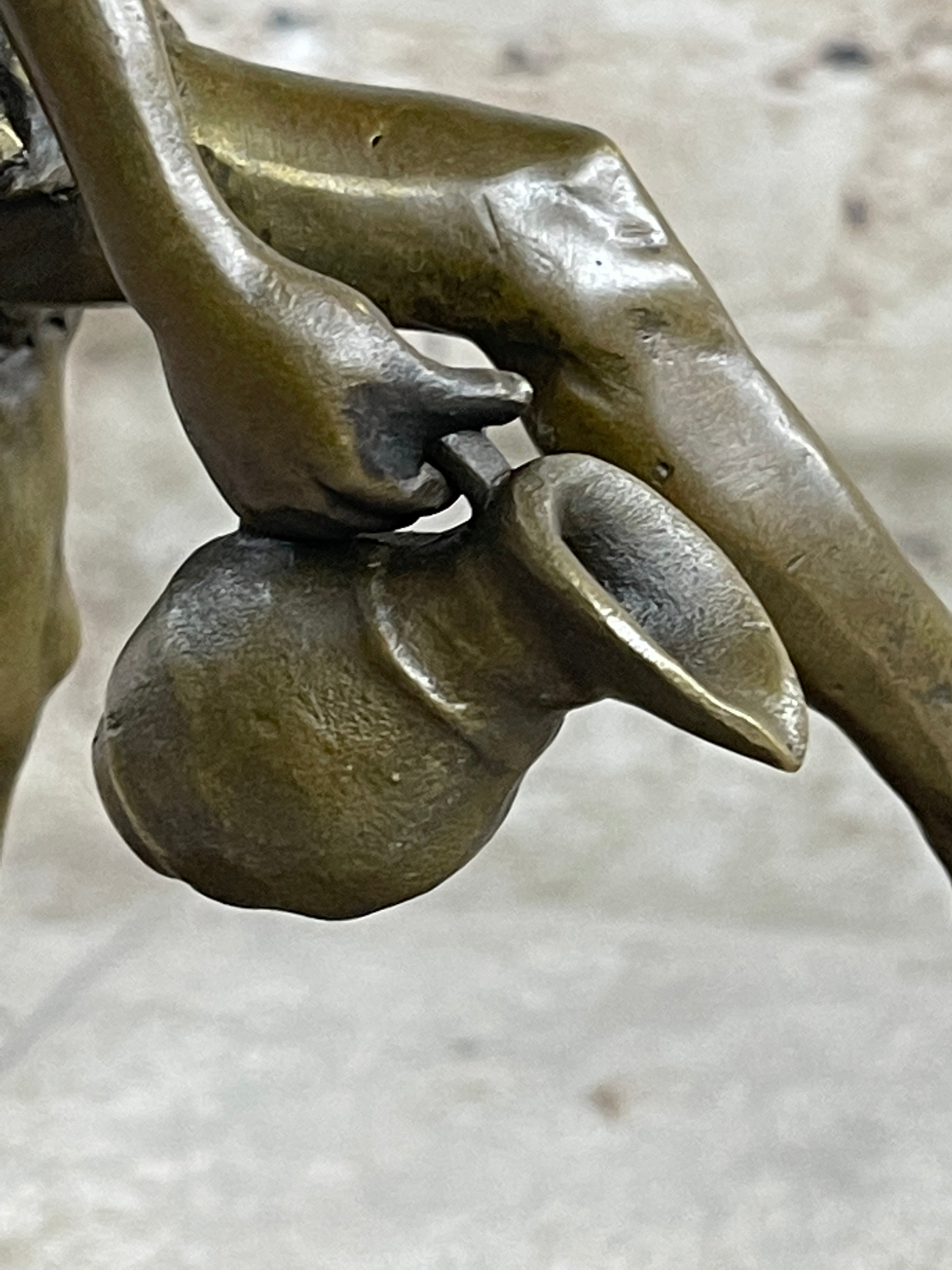 Crafted using the hot cast real bronze technique, the sculpture achieves a remarkable level of authenticity, giving the appearance and tactile feel of genuine 100% bronze. The choice of the artist Schaffert as the signatory adds a final touch of authority to the piece, establishing a connection between the viewer and the skilled craftsmanship behind this representation of Dionysus. Whether displayed as a focal point on an altar or as an art piece in a curated collection, this sculpture encapsulates the spirit of celebration and indulgence associated with the god of wine.Bronze Dimensions with Marble Base: Height 11" X Width 5.5"