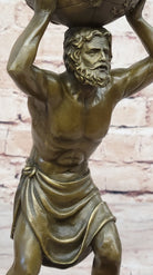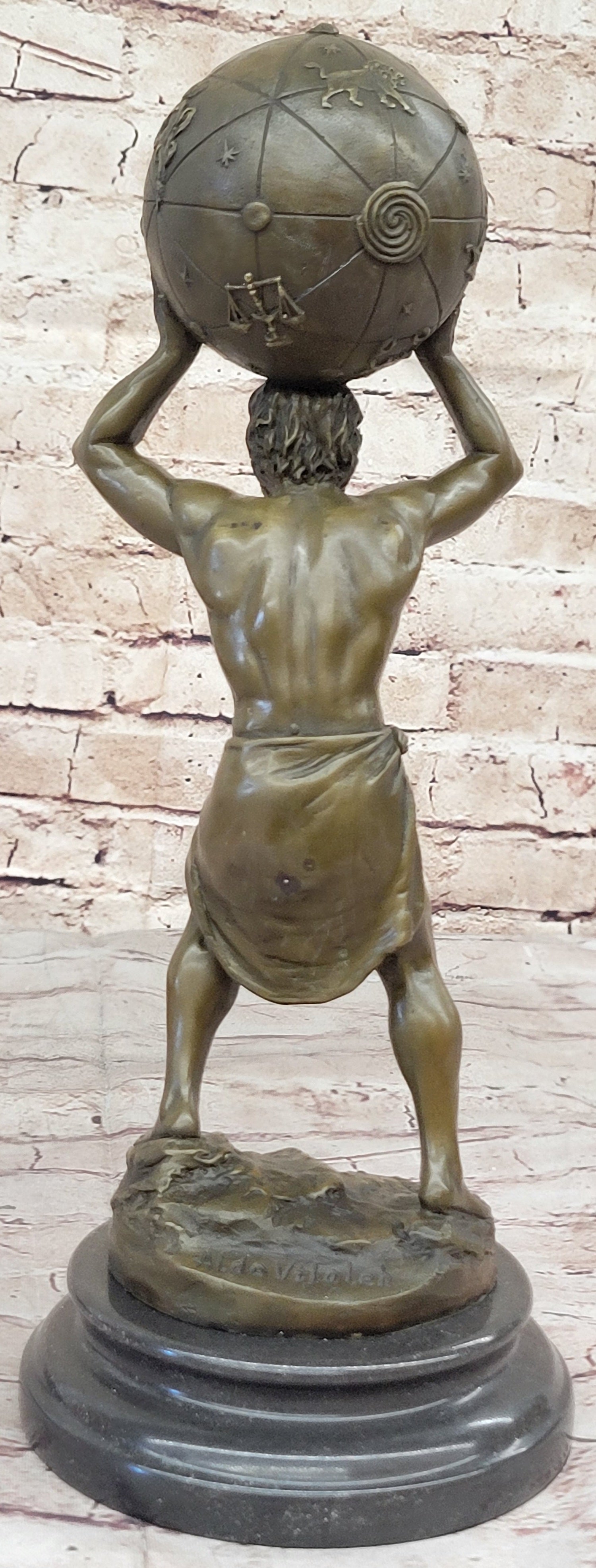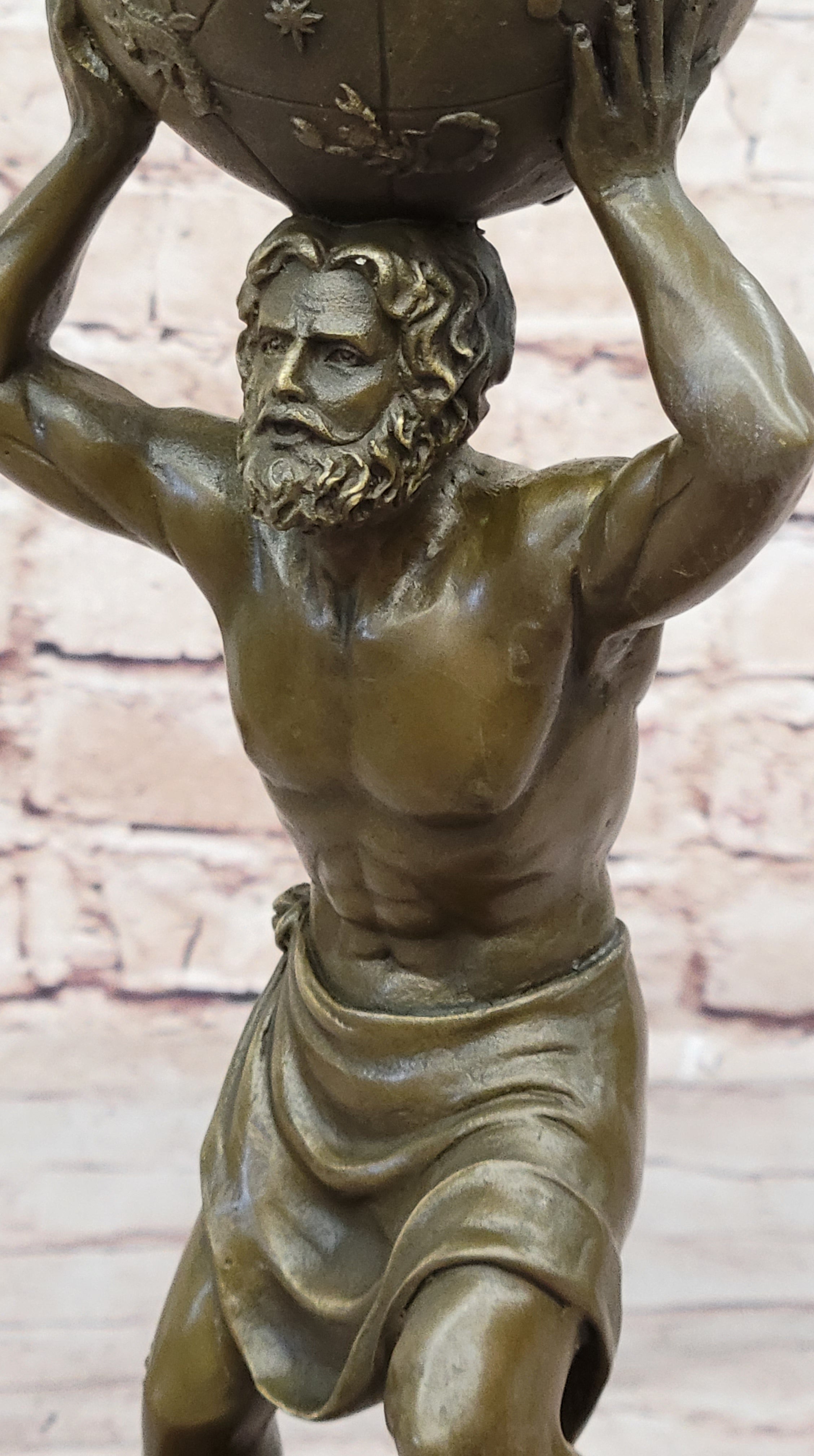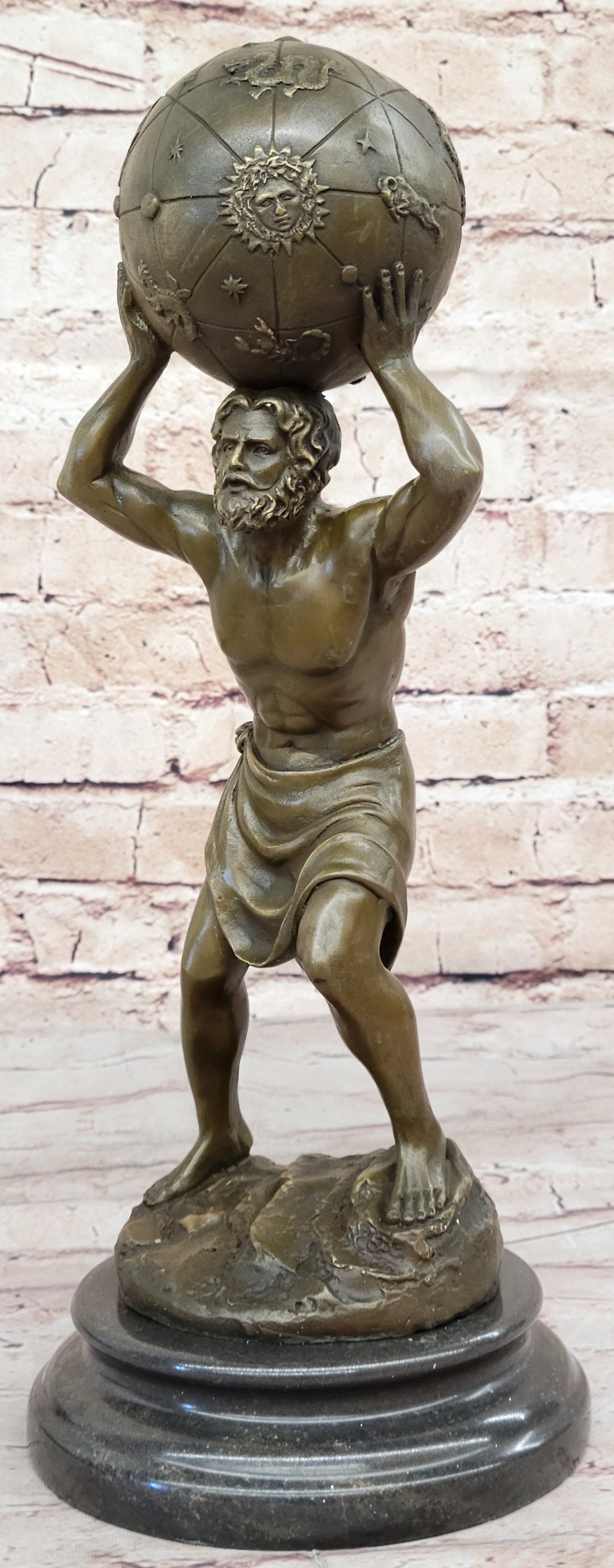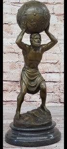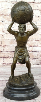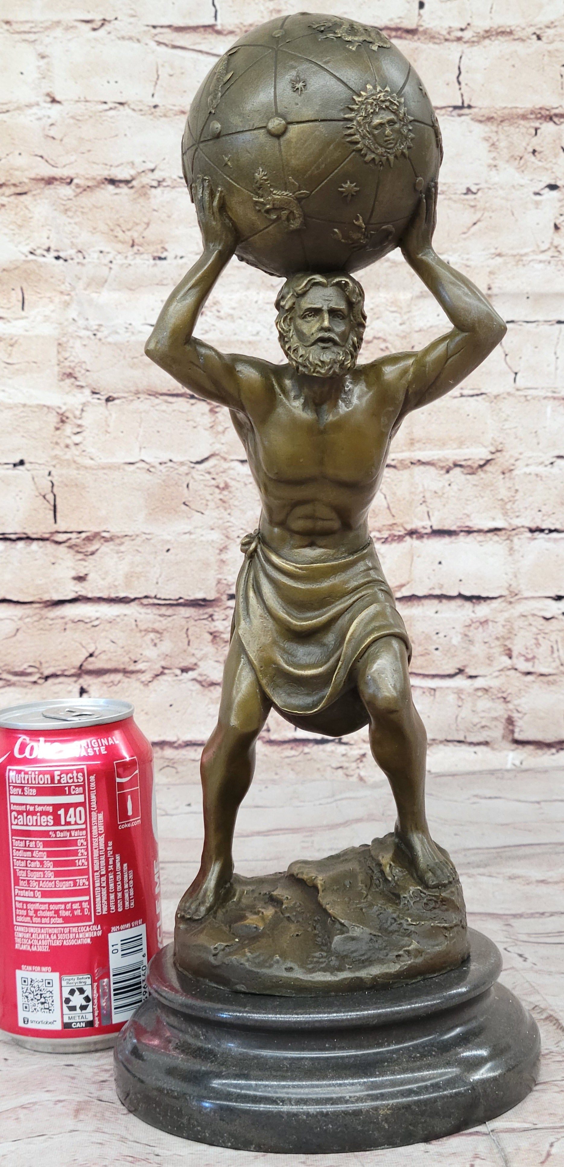 Greek Titan Atlas Holding World Globe Celestial Sphere Bronze Statue Sculpture Figure 14" x 6"