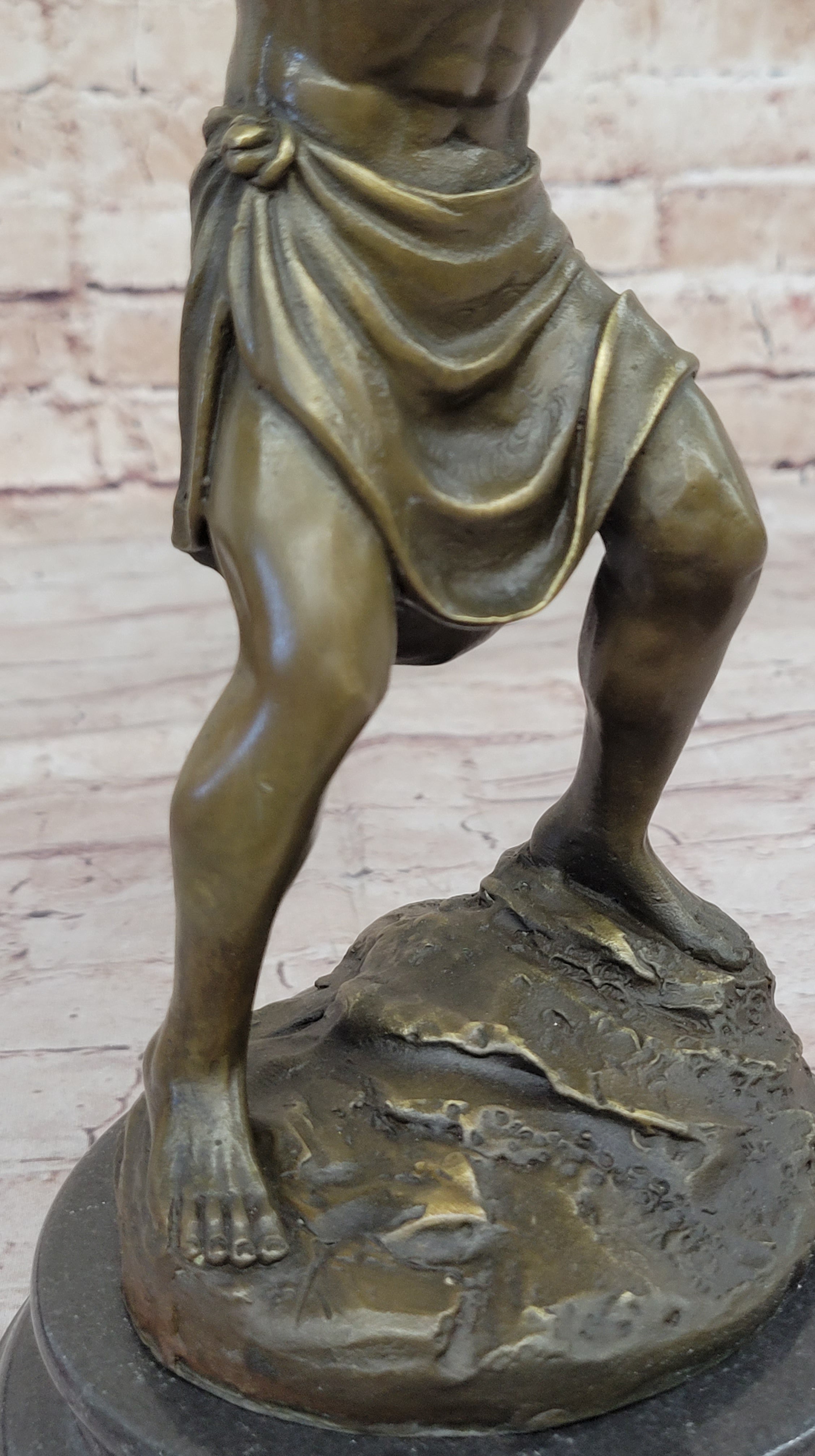 As you gaze upon Atlas carrying the weight of the heavens, you can't help but be drawn into the profound narrative of this sculpture. It encapsulates the eternal struggle of forces beyond our control and serves as a reminder of the enduring themes that have shaped human storytelling for centuries. Whether you're an art enthusiast or simply appreciate the depth of Greek mythology, this piece is a striking representation of an age-old tale.Bronze Dimensions with Marble Base: Height 14.5" X Width 6"