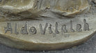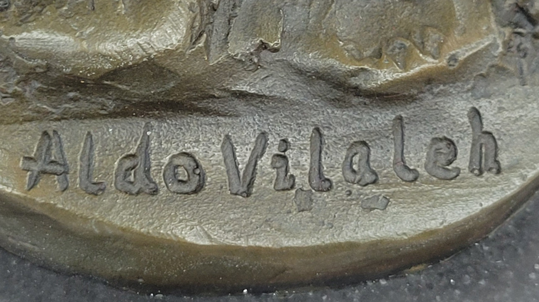 Created using the ancient lost-wax casting method, this sculpture exhibits a rich brown patina finish that adds depth and character to its design. Mounted on a sleek black marble base, it not only symbolizes the enduring power of Greek mythology but also serves as a striking statement piece in any setting. With the European Bronze Finery stamp of quality and the artist Aldo Vitaleh's signature, this sculpture is a testament to artistry and mythology, making it a captivating addition to any art collection or a meaningful decoration in your home or office.